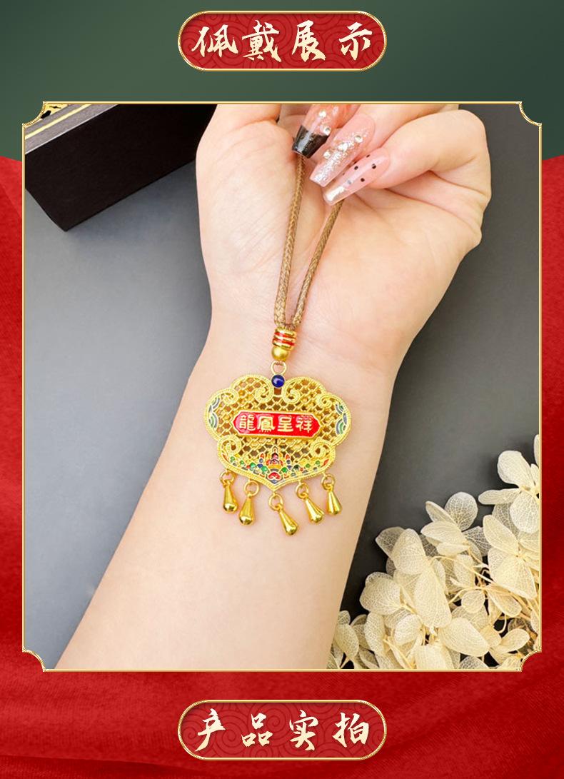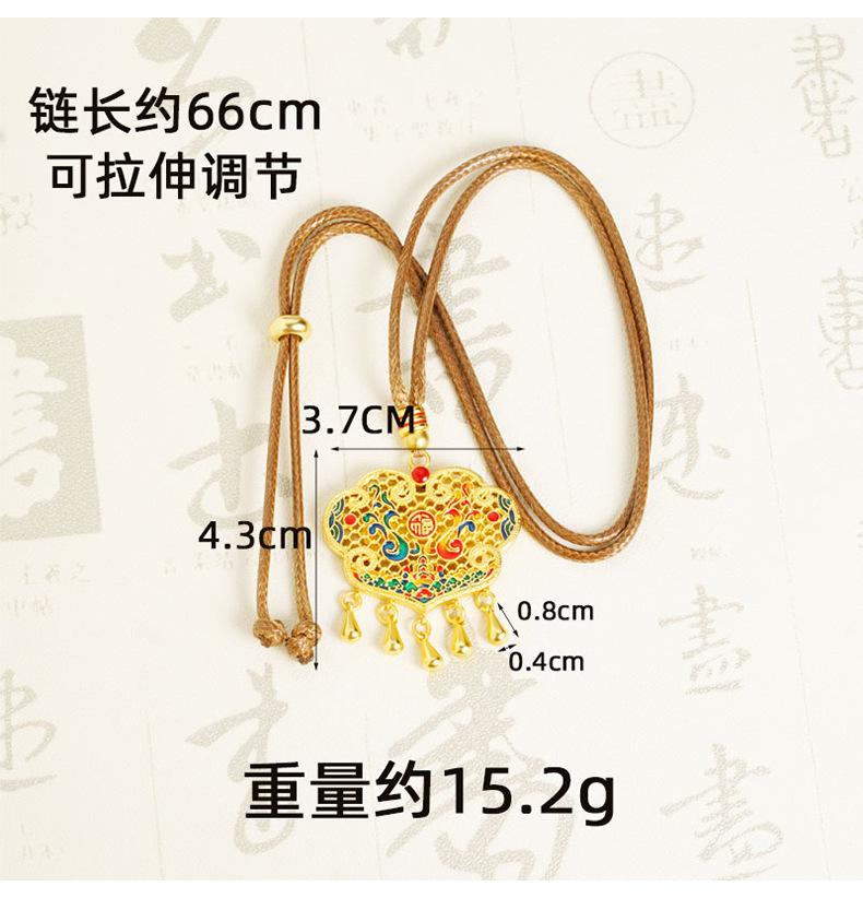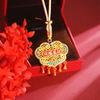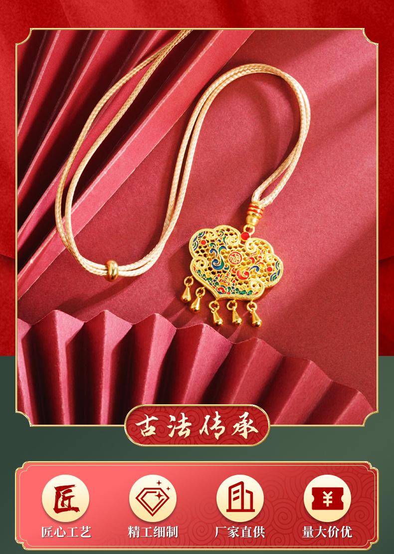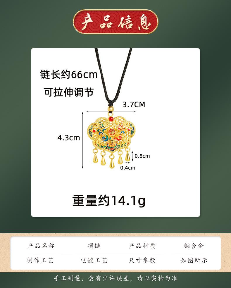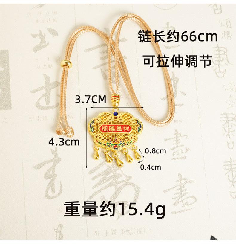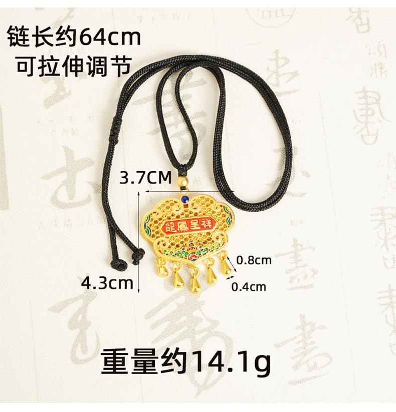 Collar con candado Chengxiang Ruyi, con diseño de dragón y fénix de viento chino, dorado y arena de Vietnam, con gotas de aceite huecas, cadena de cuerda tejida, joyería de estilo antiguo.