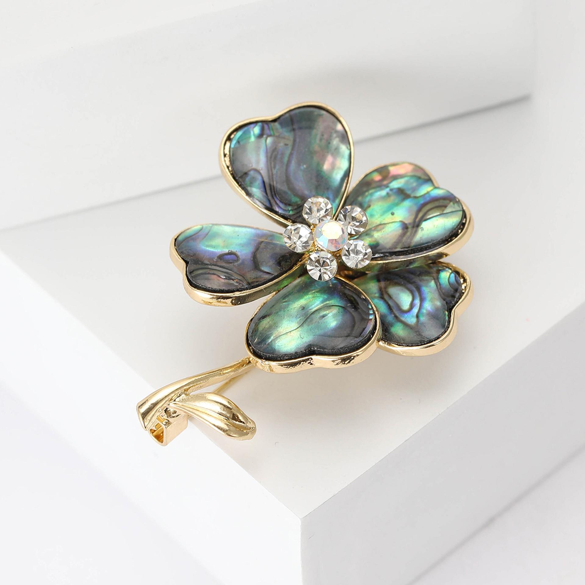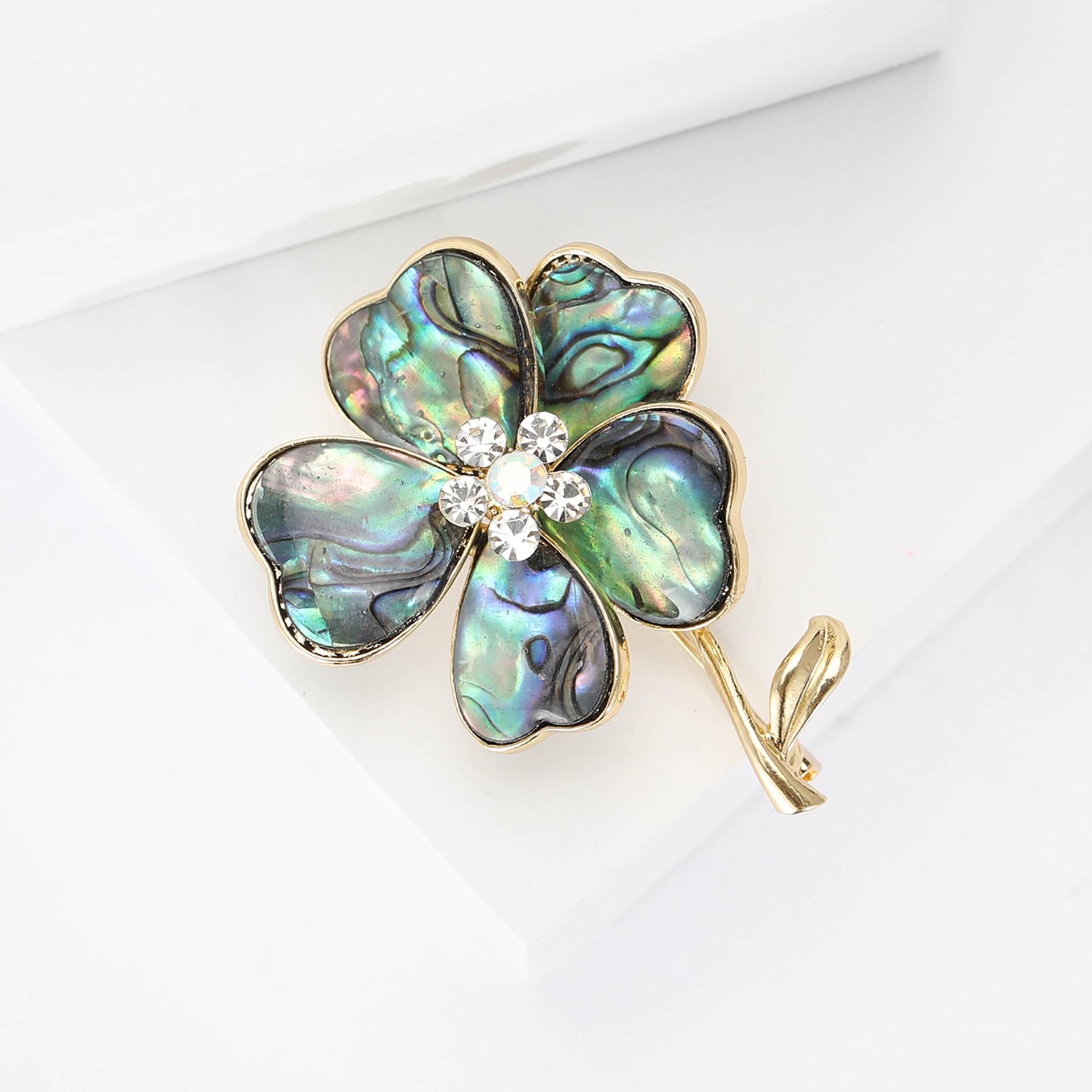 Broche de flor de concha de aleación retro de moda europea y americana, broche de joyería de ramillete para camisa de traje de mujer de alta gama con temperamento