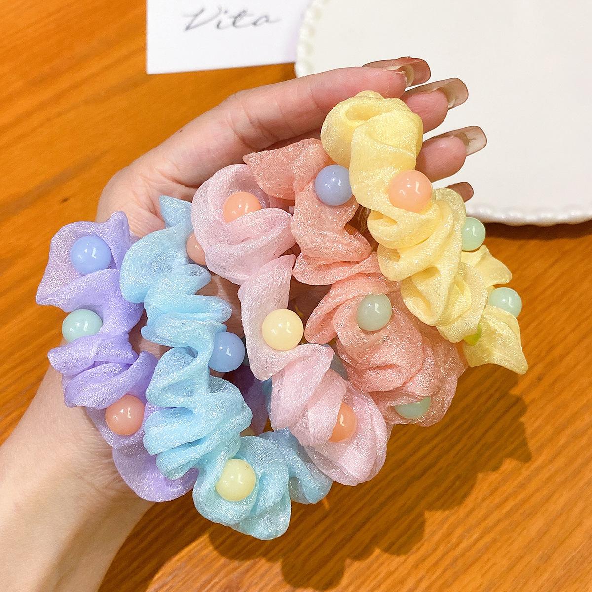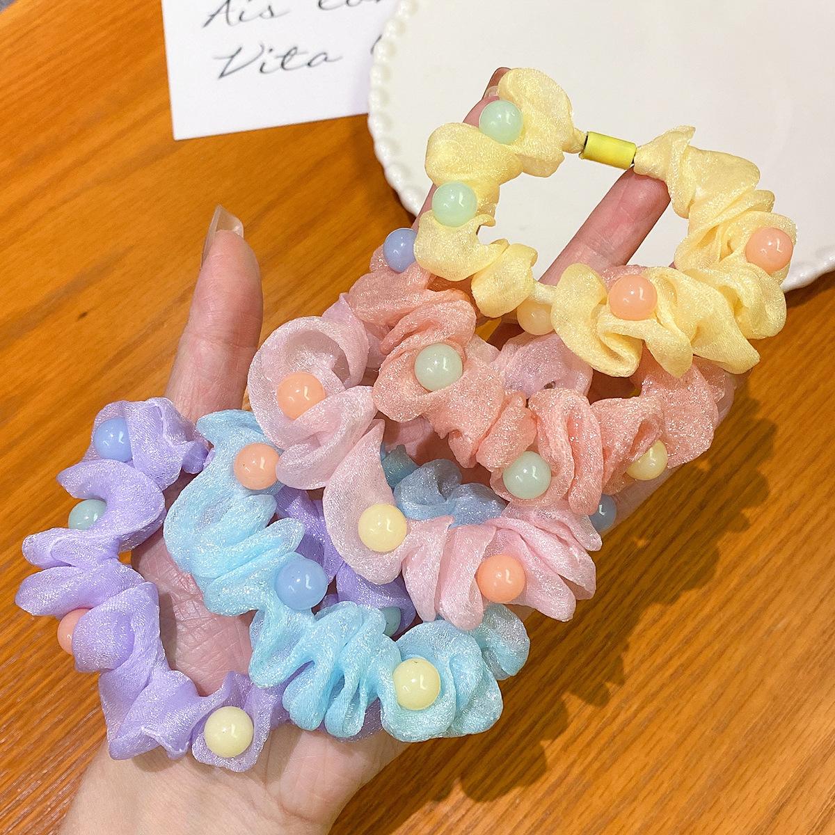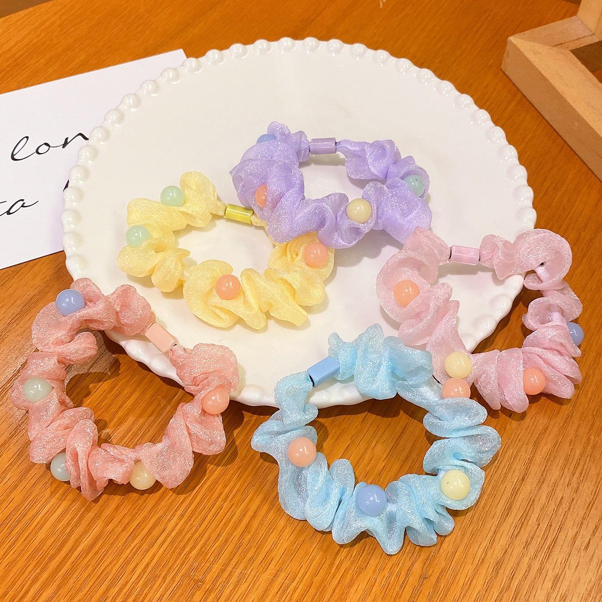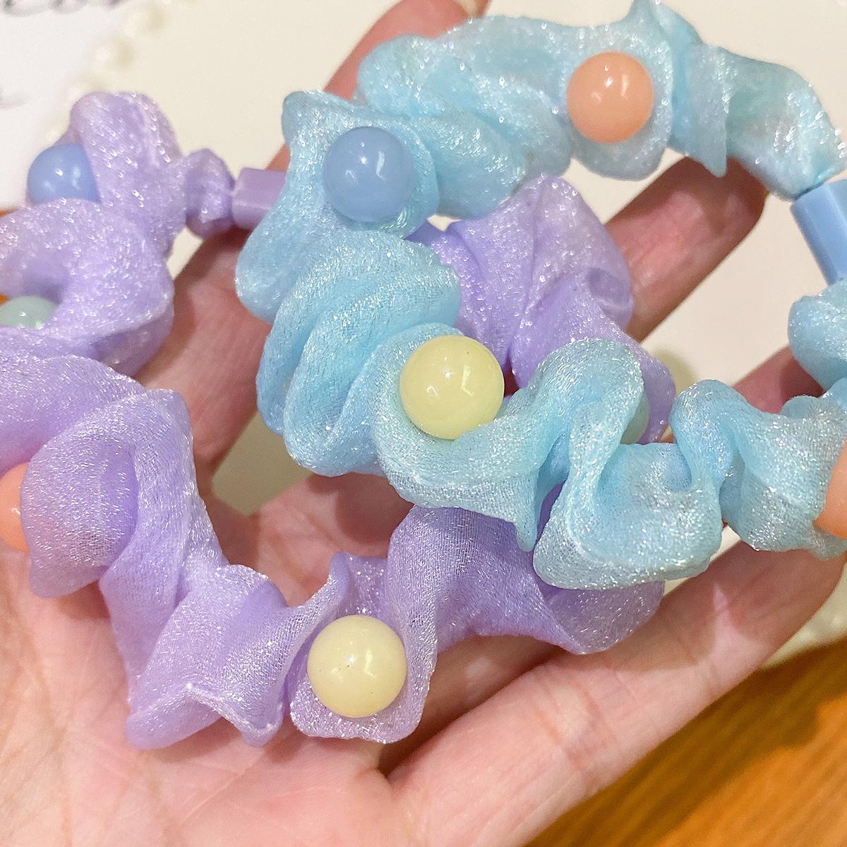 Anillo para el cabello de tela de hilo de cielo estrellado, cuerda para el cabello de cola de caballo de niña pequeña fresca y dulce de macarrón, cuerda para la cabeza súper hada, cinta para el cabello
