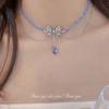 Colgante de perla con incrustaciones de diamantes de lujo ligero, collar de mujer de alta calidad, diseño de nicho de celebridades de Internet, cadena de clavícula de acero de titanio sin color
