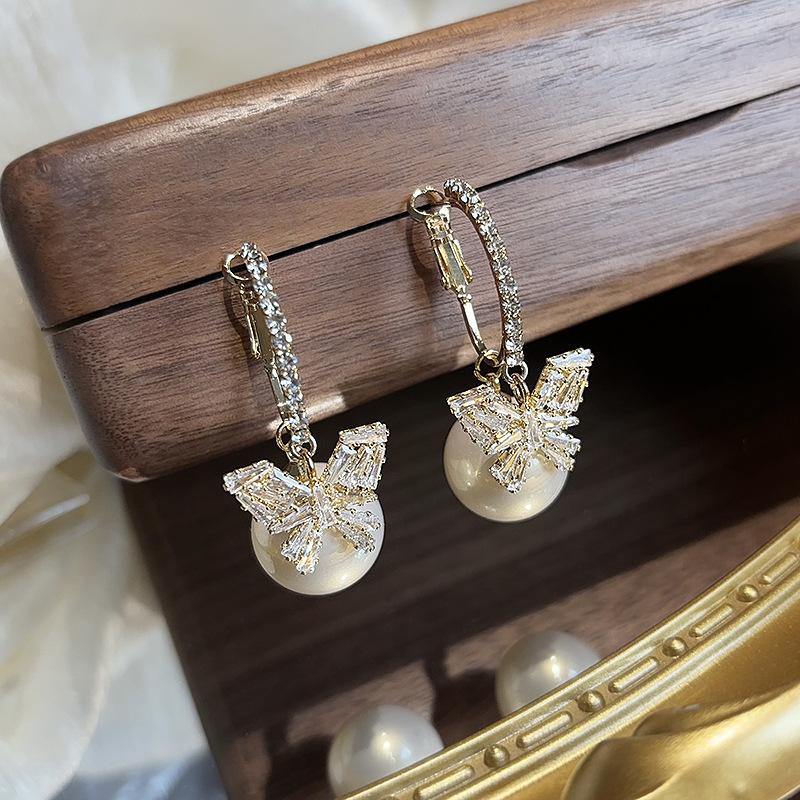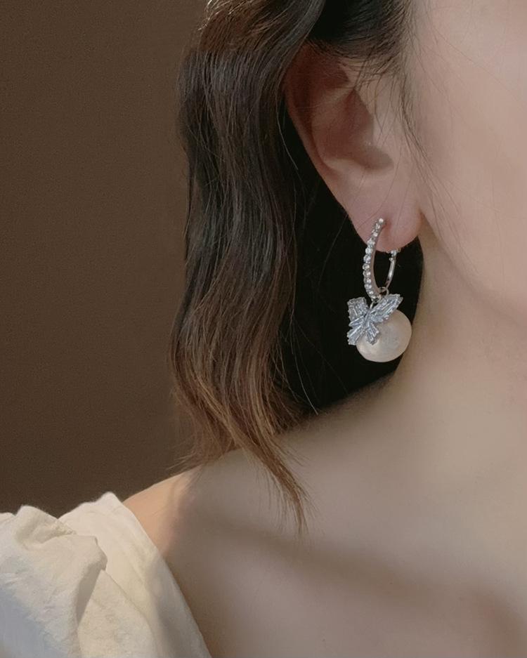 Pendientes de mariposa con perlas para mujer, de plata S925, con microincrustaciones de circonitas, diseño único, estilo moderno, ligeros y lujosos.