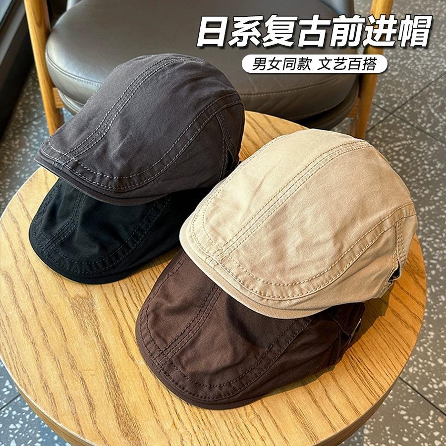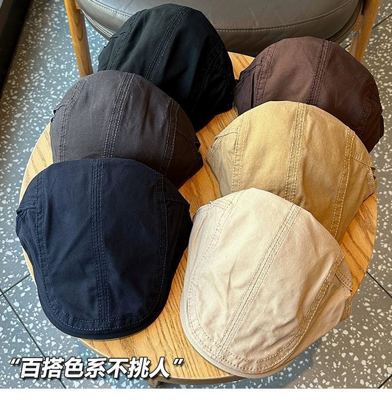 Gorra de Avancarga de Algodón Puro Cuatro Estaciones Color Sólido Estilo Retro Británico Gorra de Repartidor para Mujer Sencilla Combinable Boina Artística para Hombre