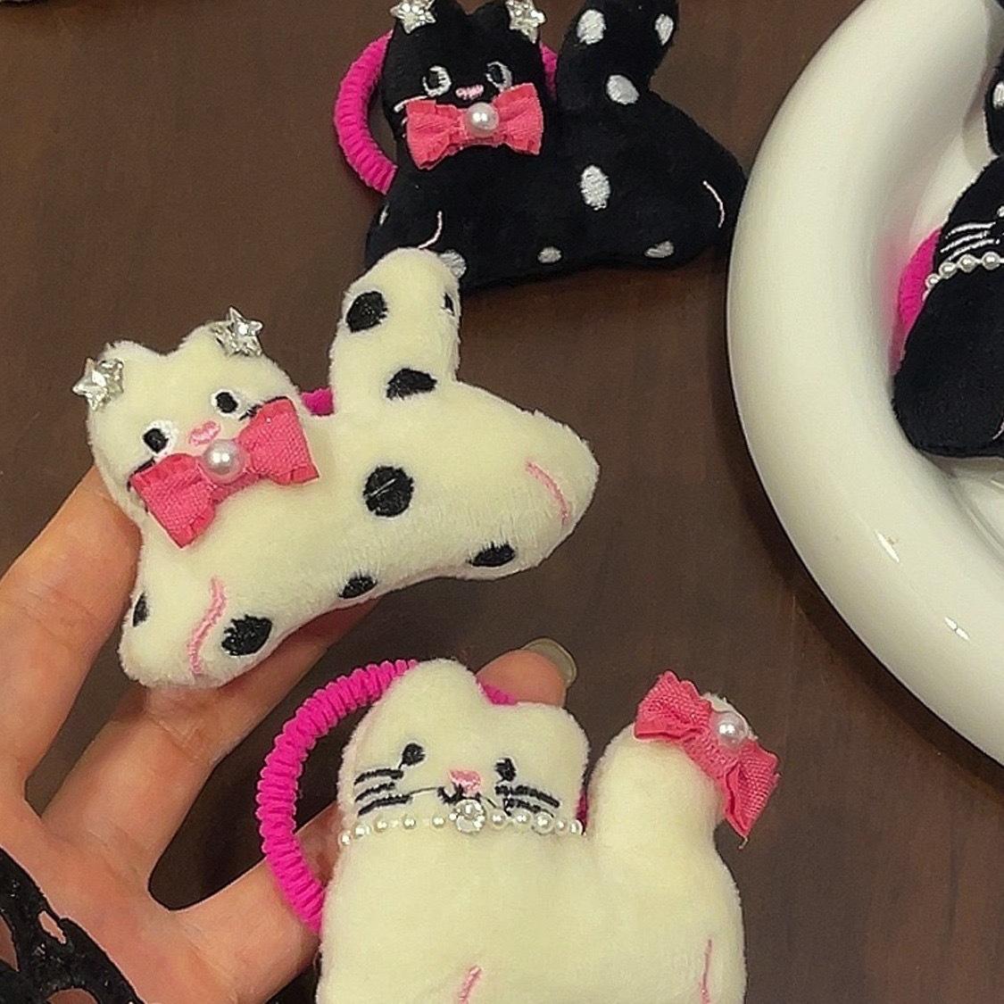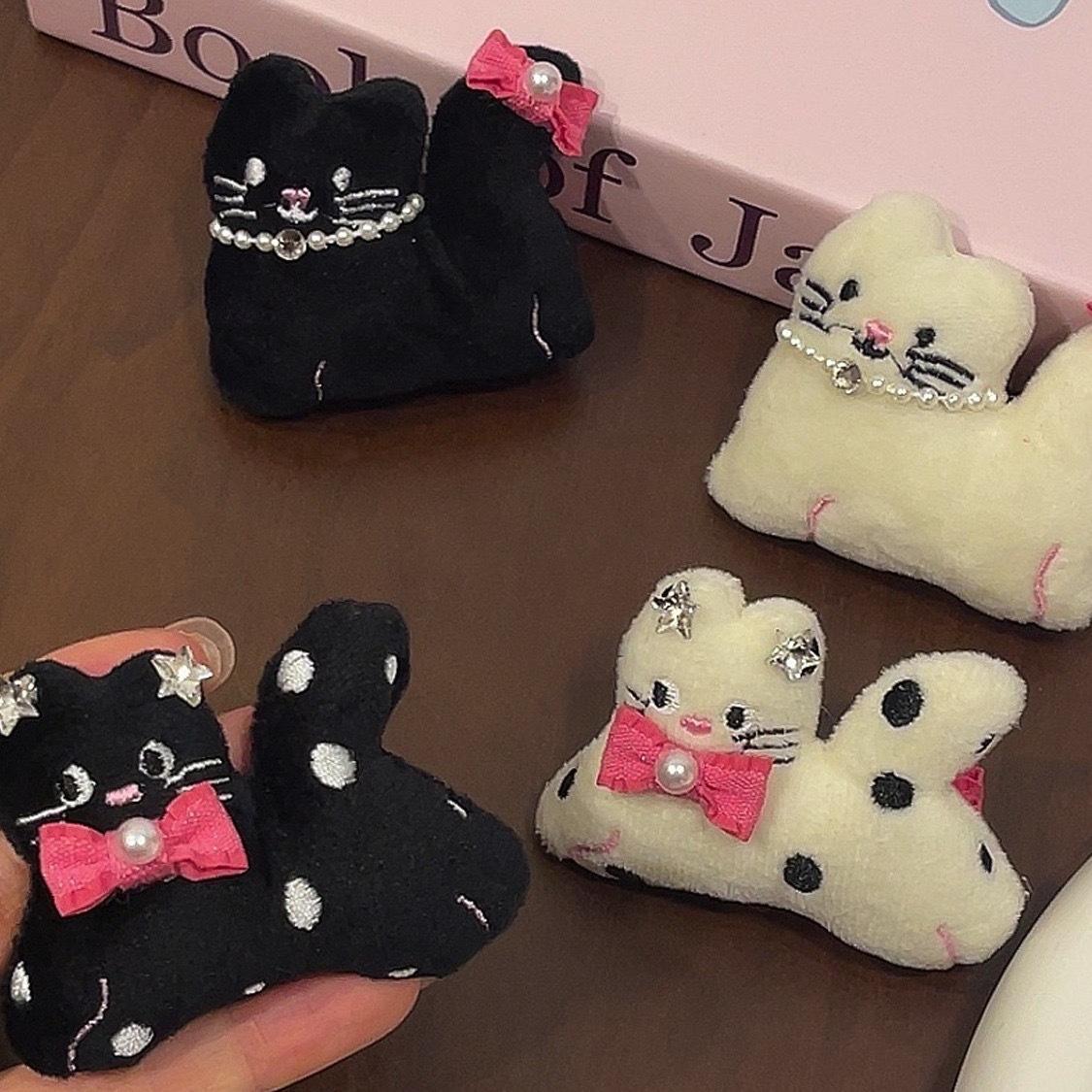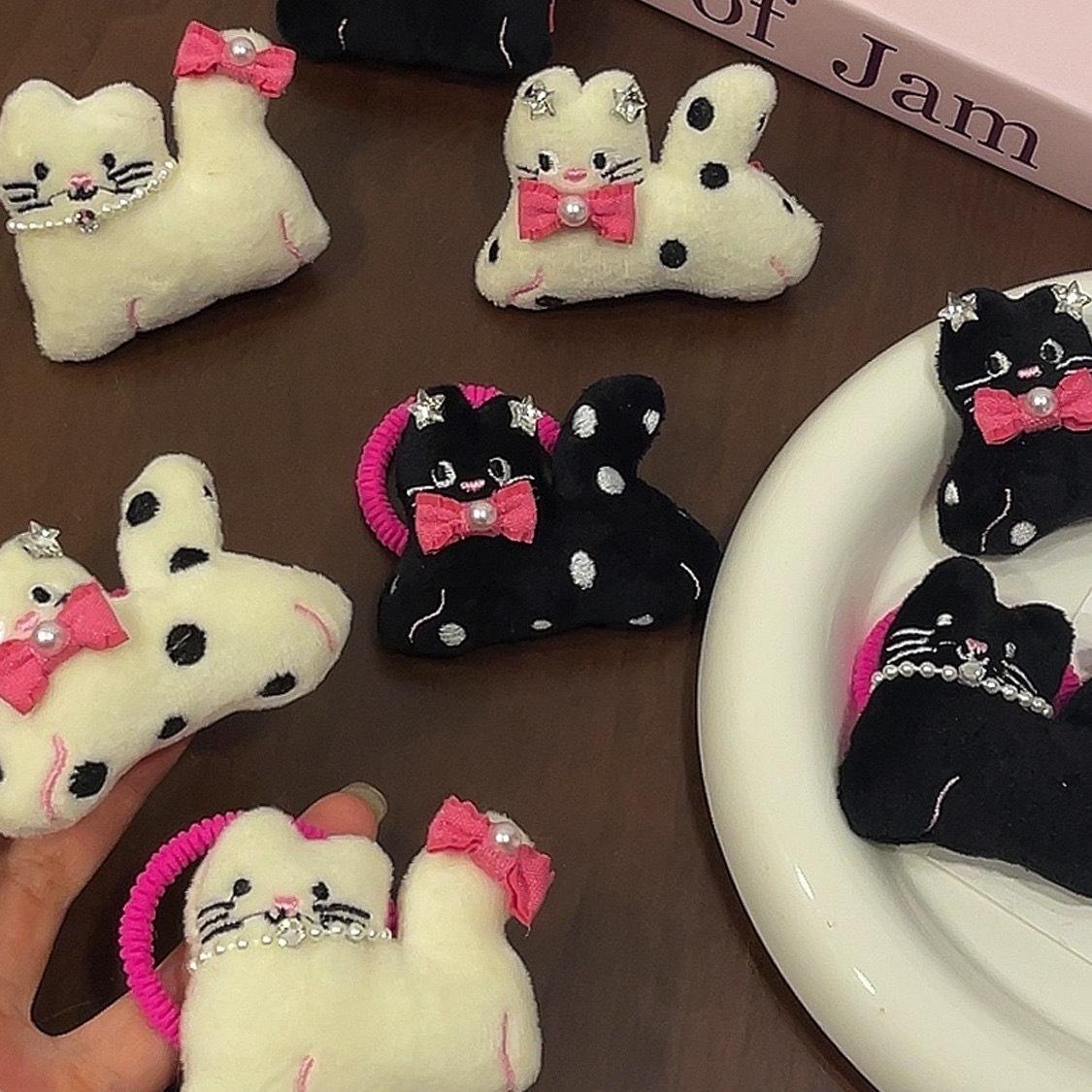 White cat polka dot hairpin, White cat collar hairpin, Black cat polka dot hairpin, Black cat collar hairpin, ...