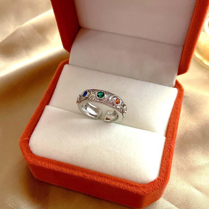 Anillo de circón de color de moda con temperamento europeo y americano, nicho, moda simple, anillo para dedo de comida, mujeres, adornos de mano ajustables, venta al por mayor