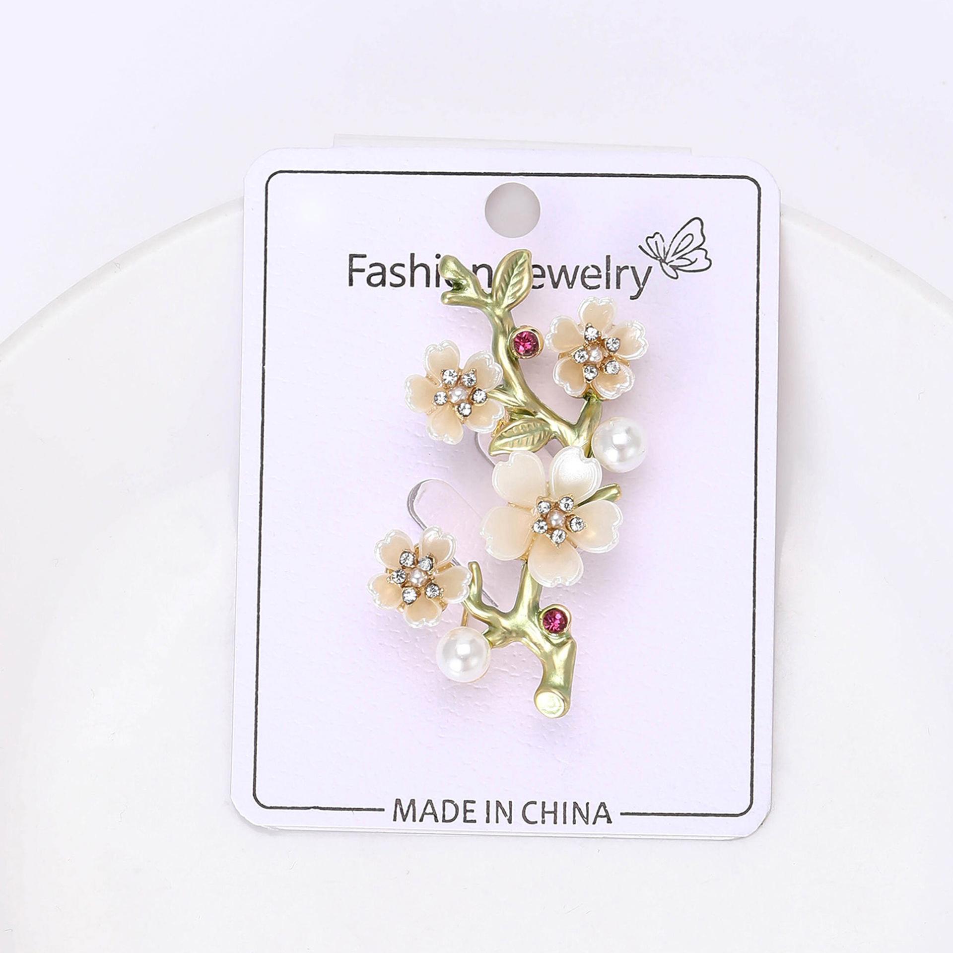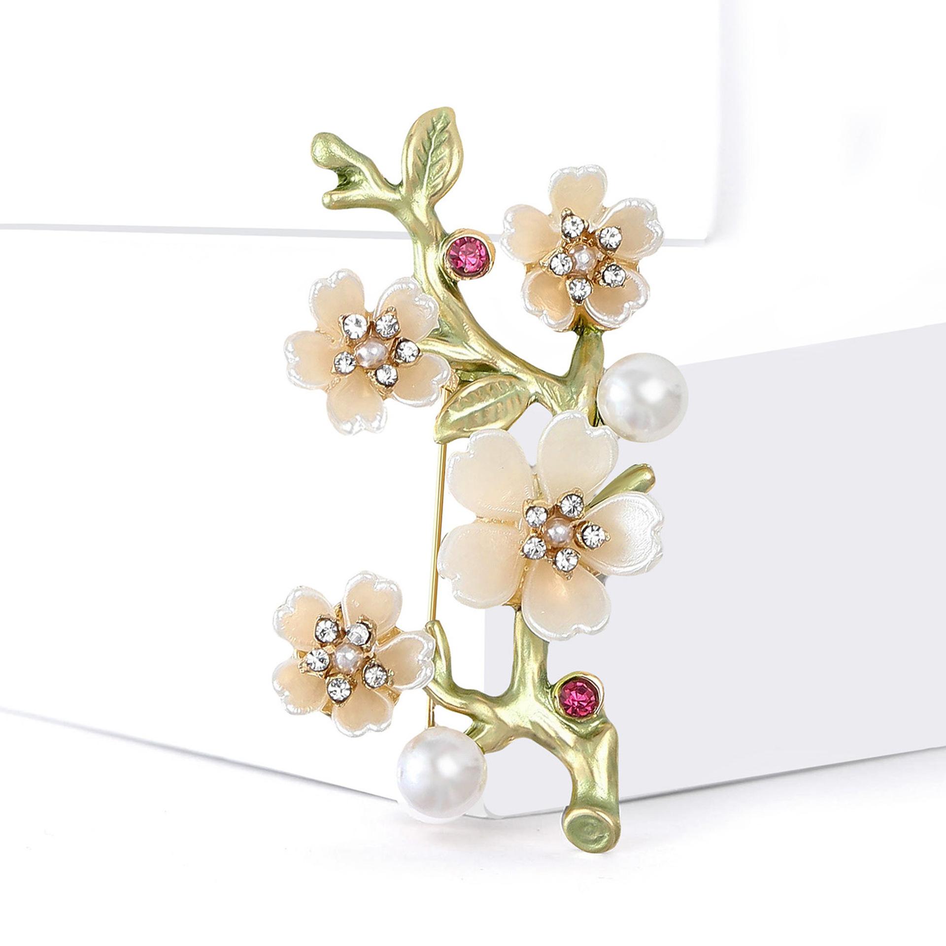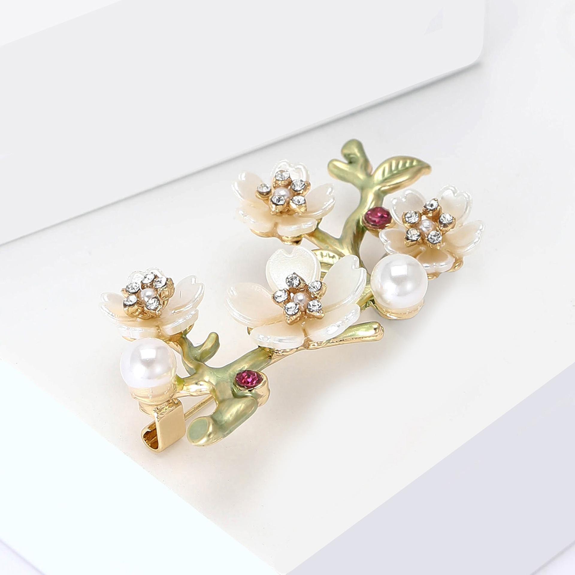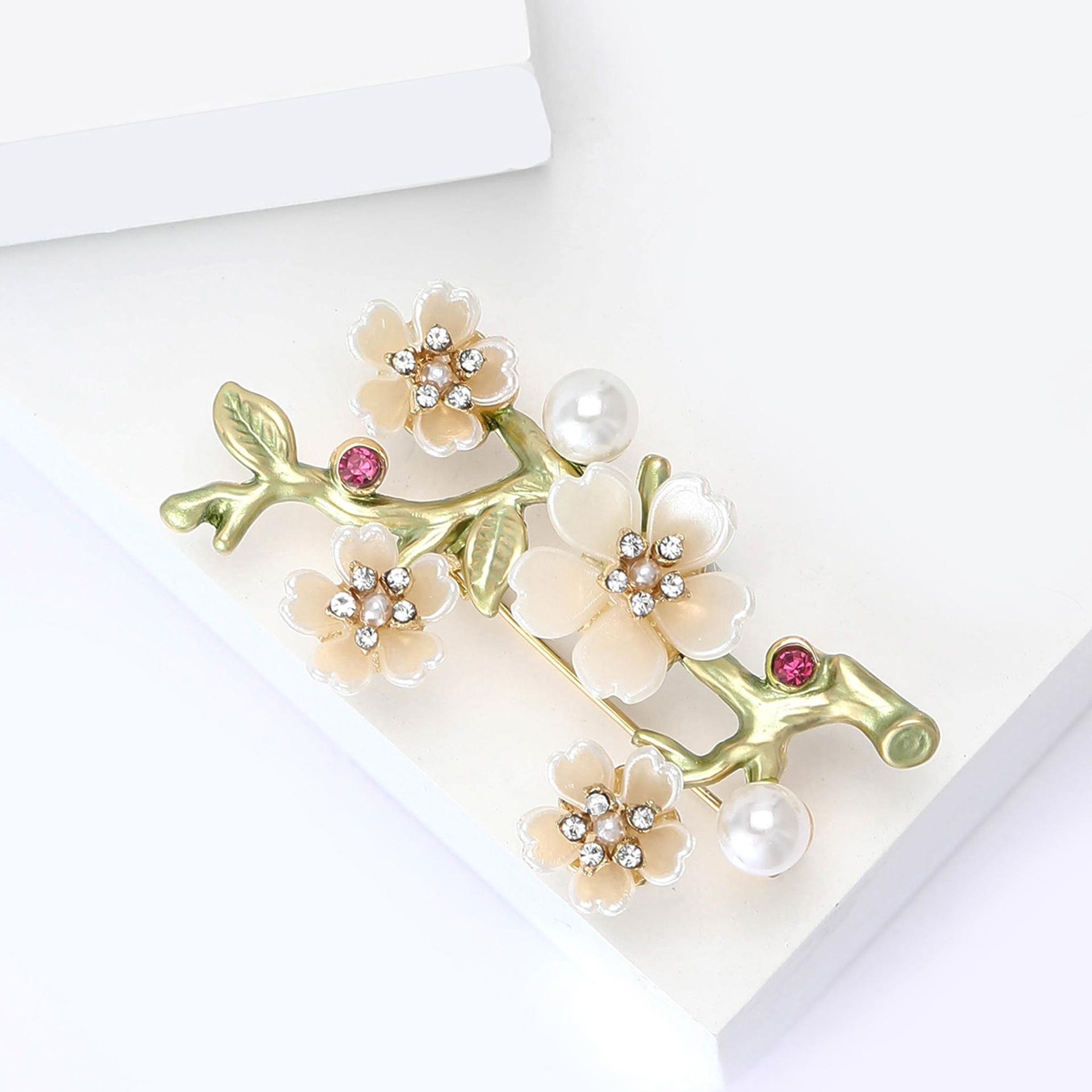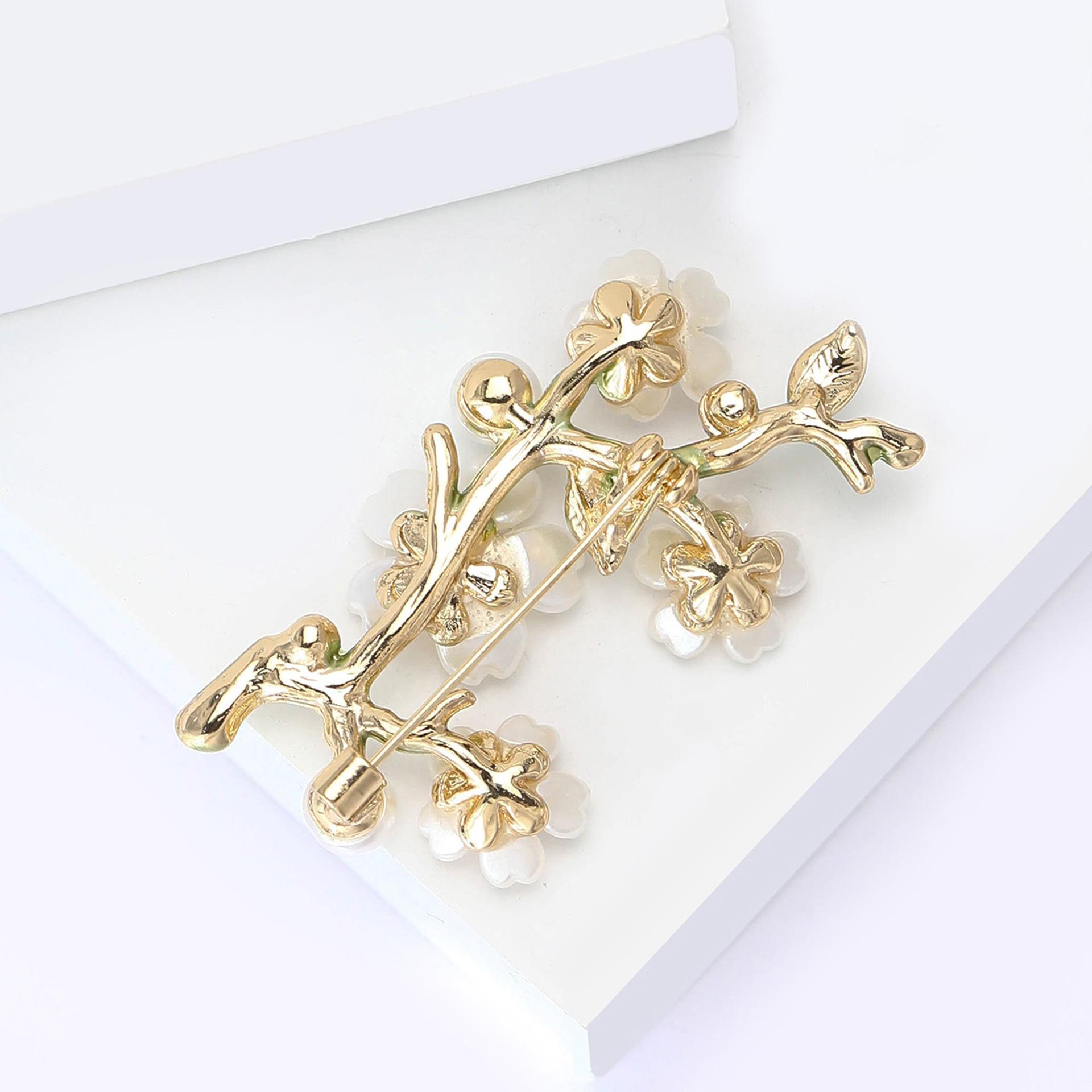 Compra Broche de aleación de alta calidad con forma de rama de flor de ciruelo esmaltada, temperamento simple, para mujer, para traje, abrigo, ramillete, joyería al por mayor en Joom.pro
