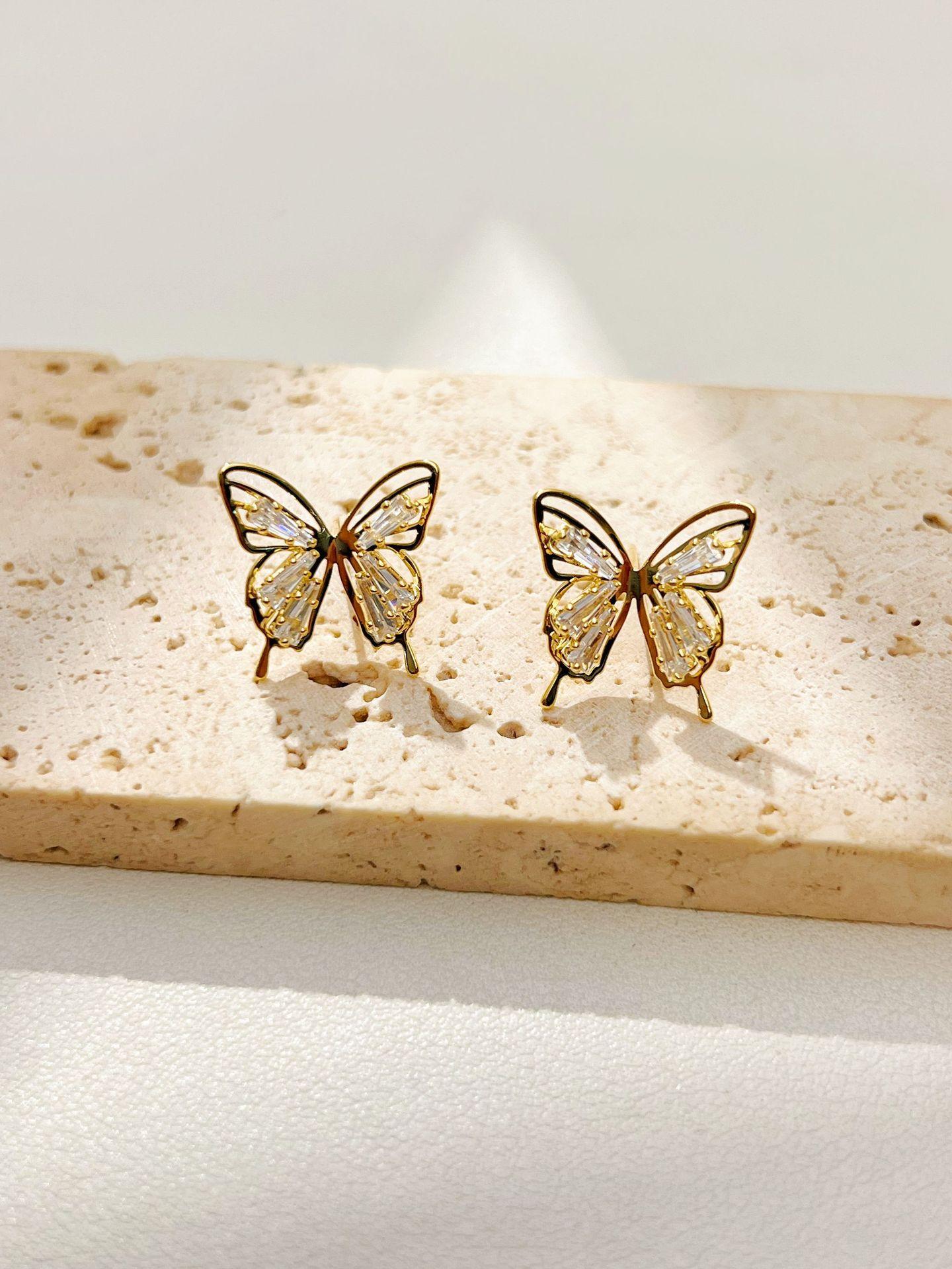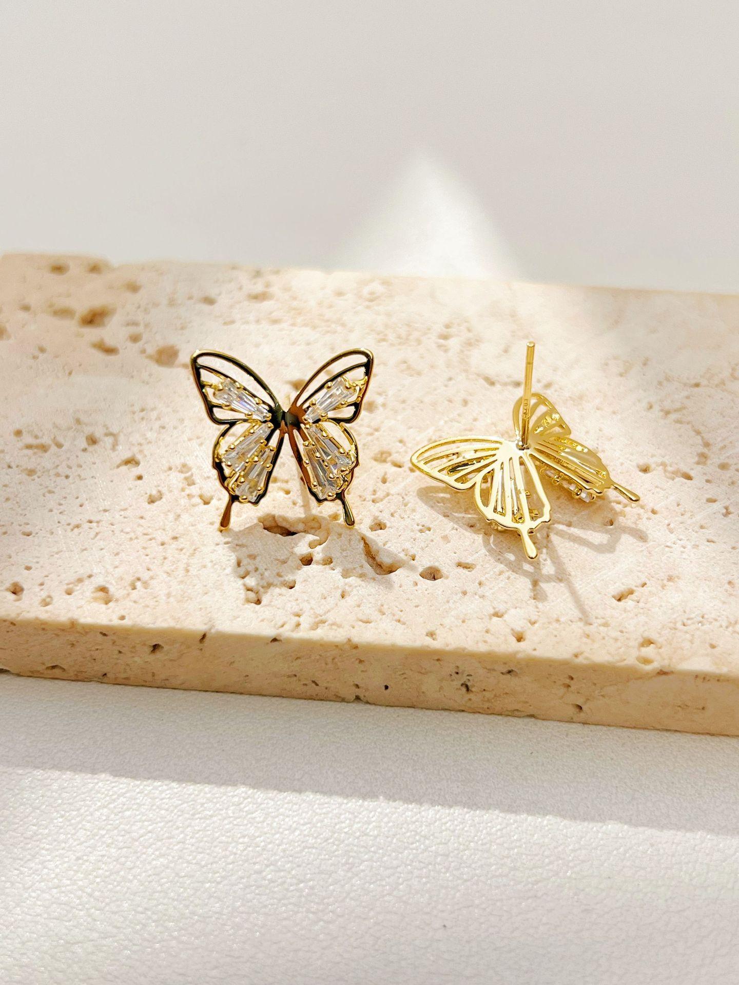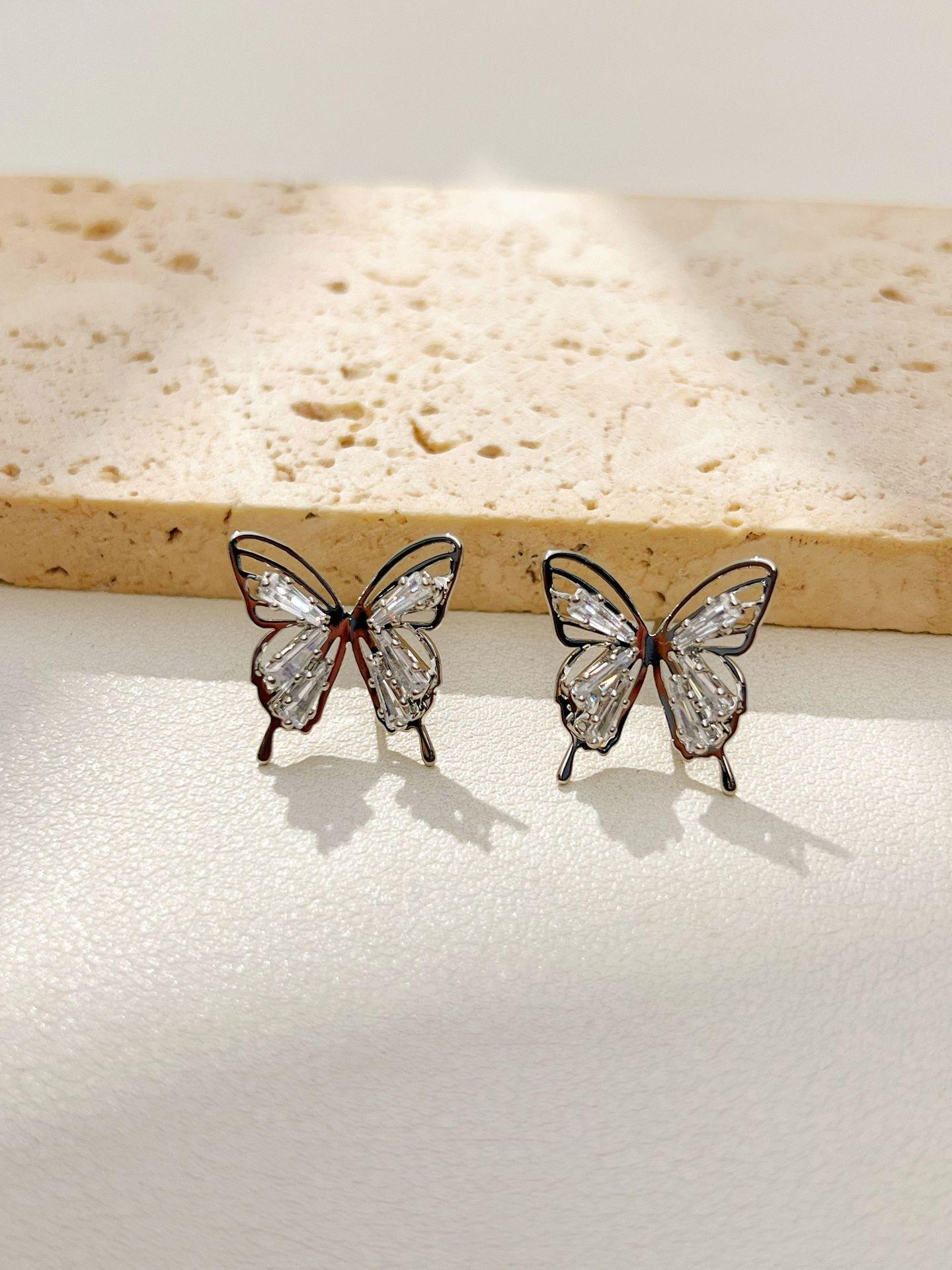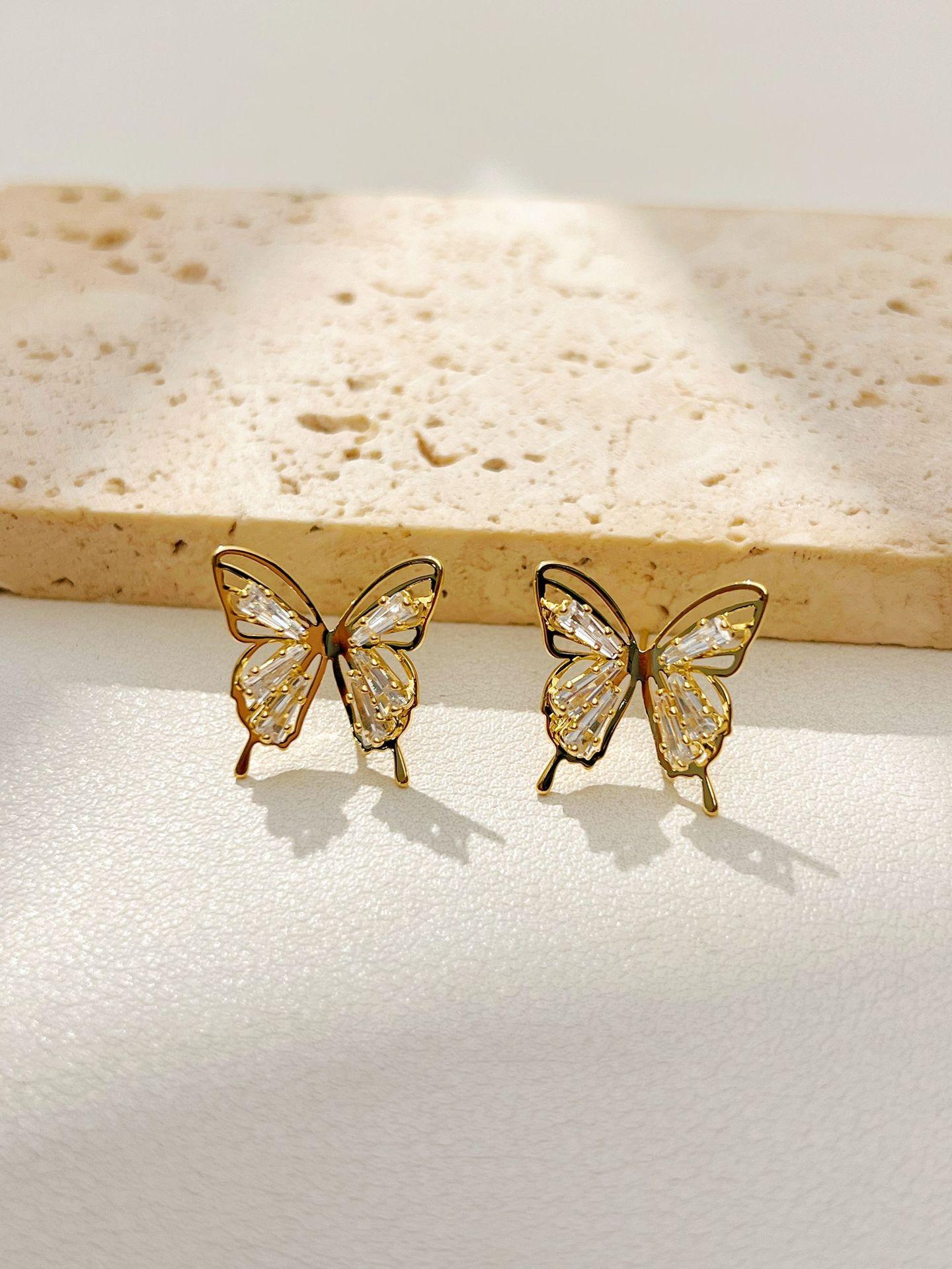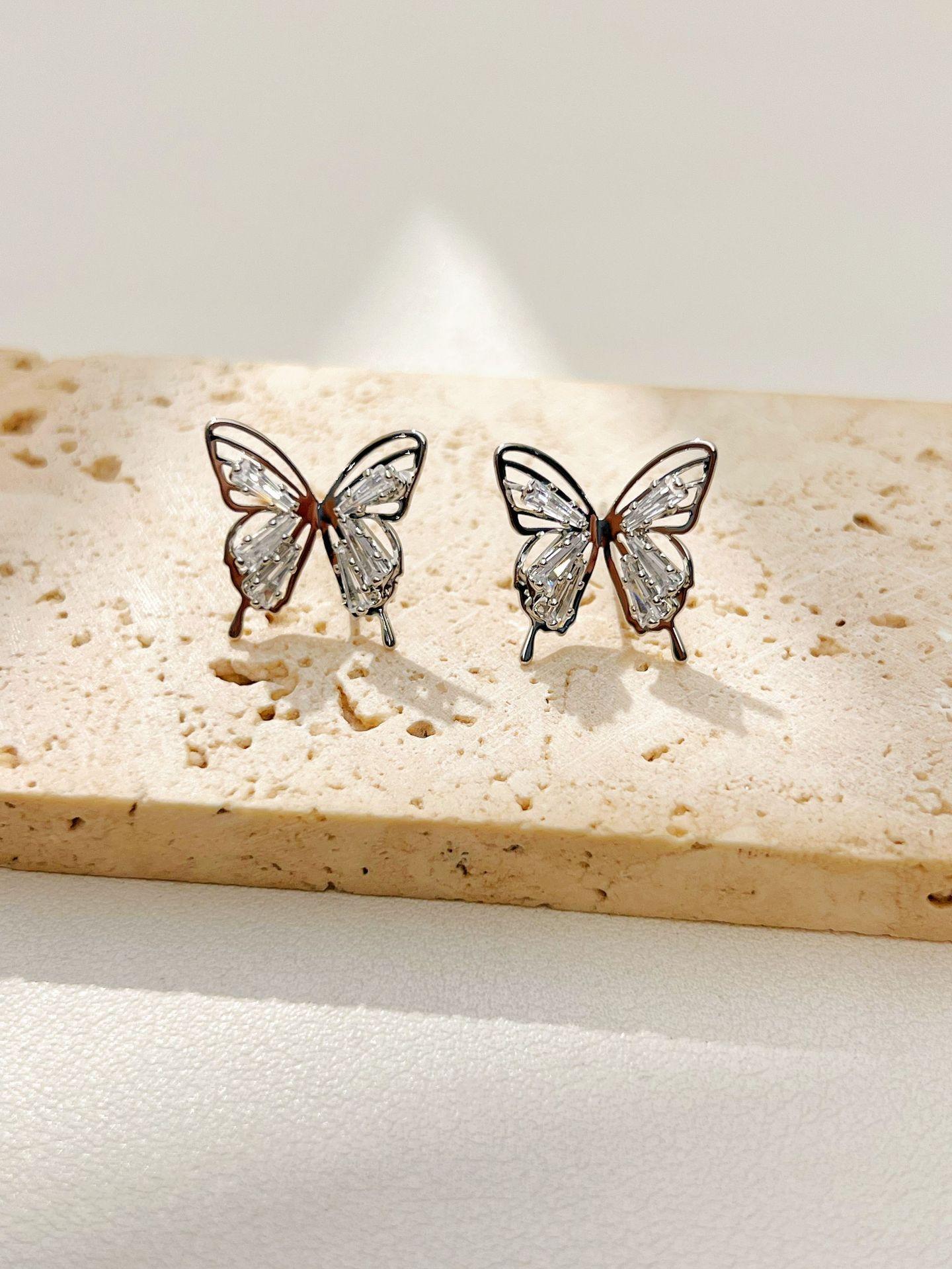 Nuevos Pendientes Simples Huecos de Mariposa con Zircón para Mujer, Modernos y Versátiles, Accesorios de Pendientes de Estilo Commuting de Alta Gama