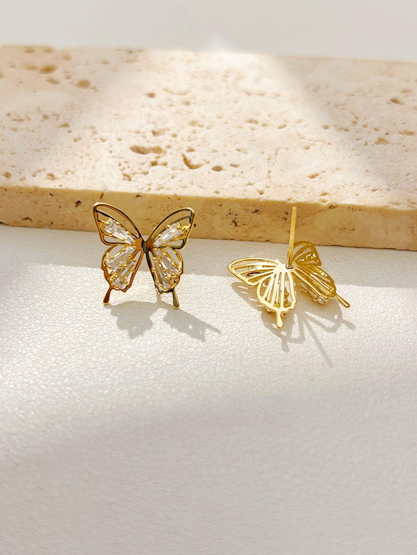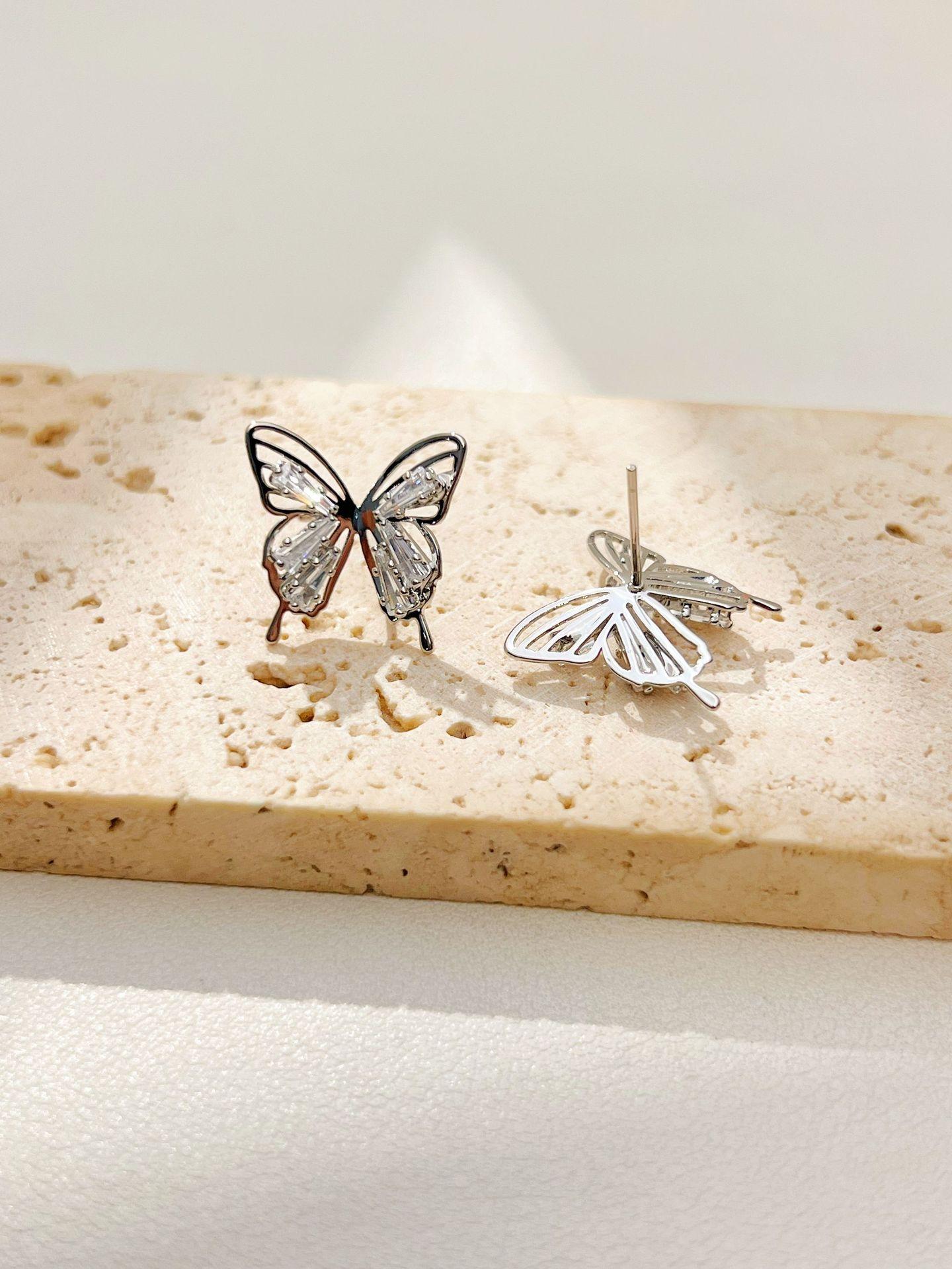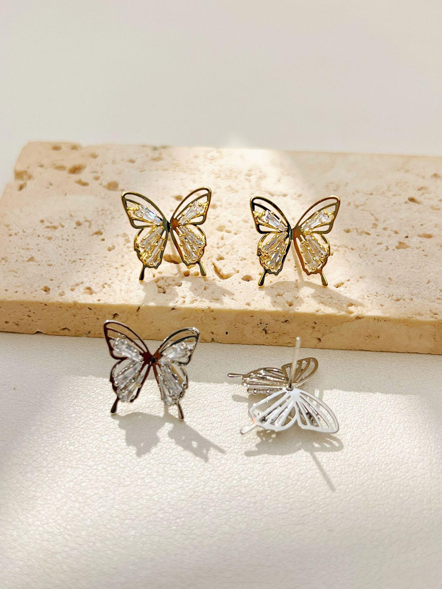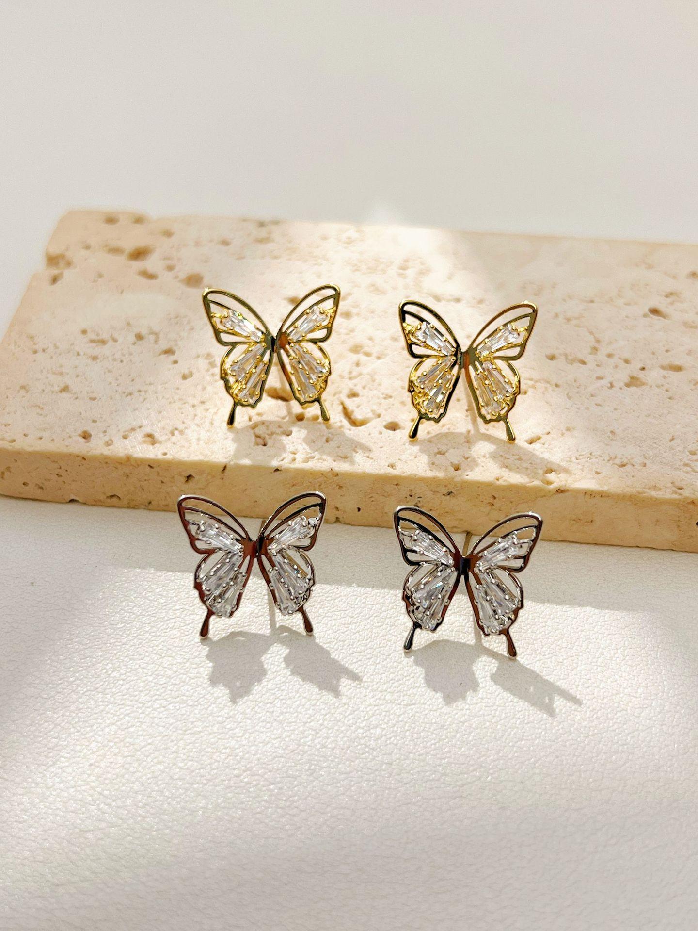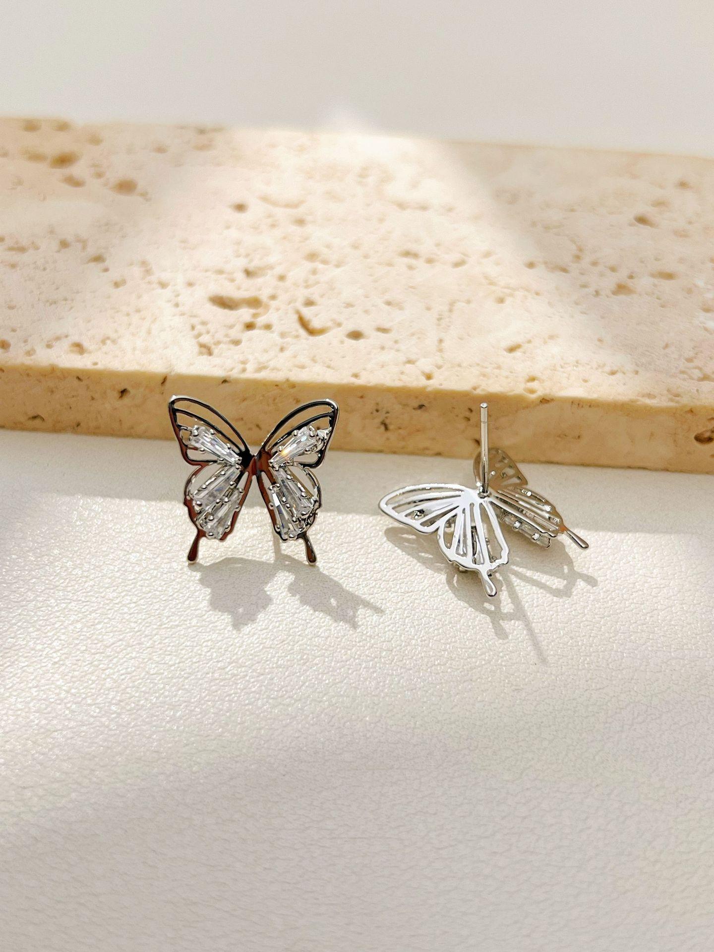 Nuevos Pendientes Simples Huecos de Mariposa con Zircón para Mujer, Modernos y Versátiles, Accesorios de Pendientes de Estilo Commuting de Alta Gama