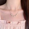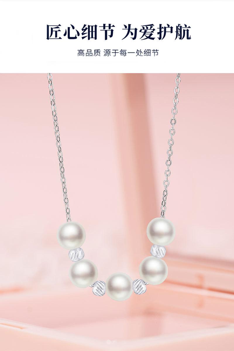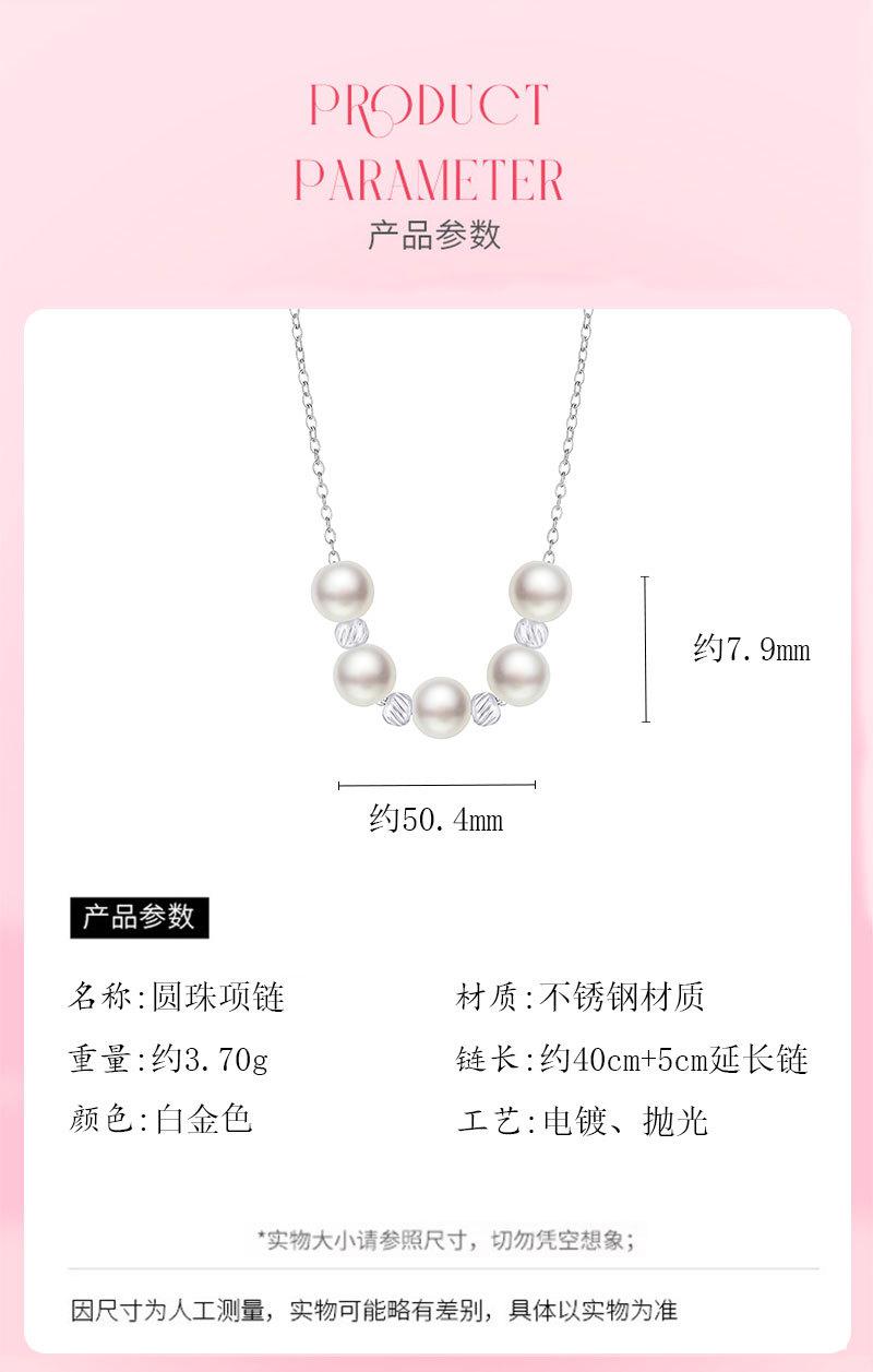 Collar de Cuentas Redondas para Mujer, Lujo Accesible, Diseño Simple de Nicho, Cadena Clavicular de Cinco Cuentas de Perlas de Imitación, Collar de Cuentas Separadas de Acero Inoxidable