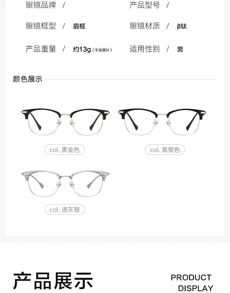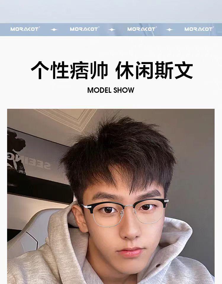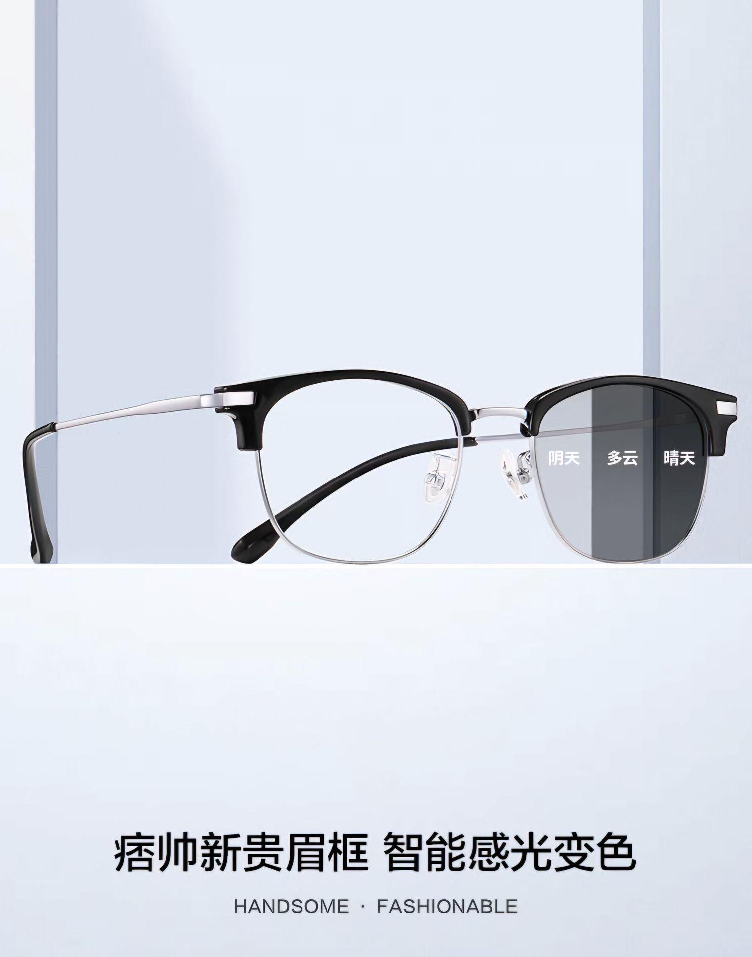 Compra Gafas de miopía Sven de media montura, tecnología para hombre, estilo Ins, gafas planas que cambian de color, montura de titanio ultraligera, montura grande, ceja 9003 al por mayor en Joom.pro