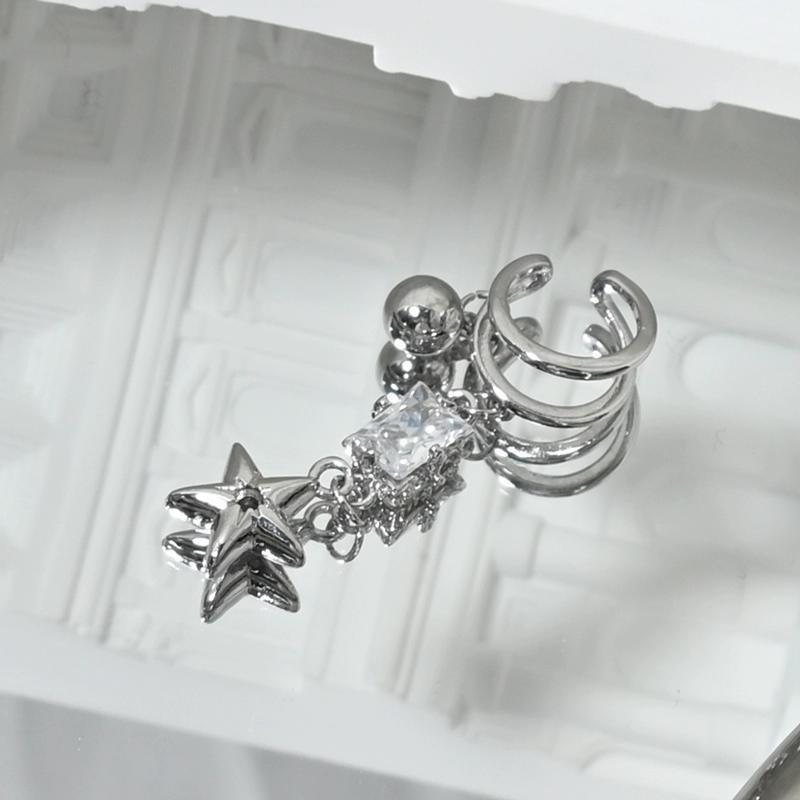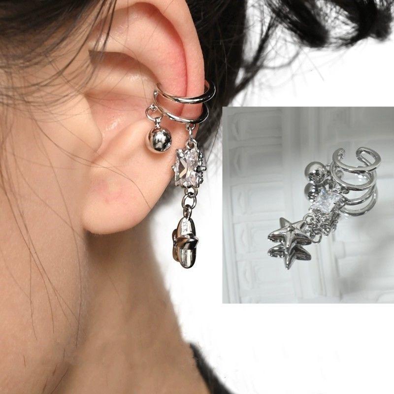Compra Pendientes de clip de oreja de circonita estrella de lujo, elegantes y combinables, sin orificios, accesorios de alta gama para orejas colgantes, moda femenina. al por mayor en Joom.pro