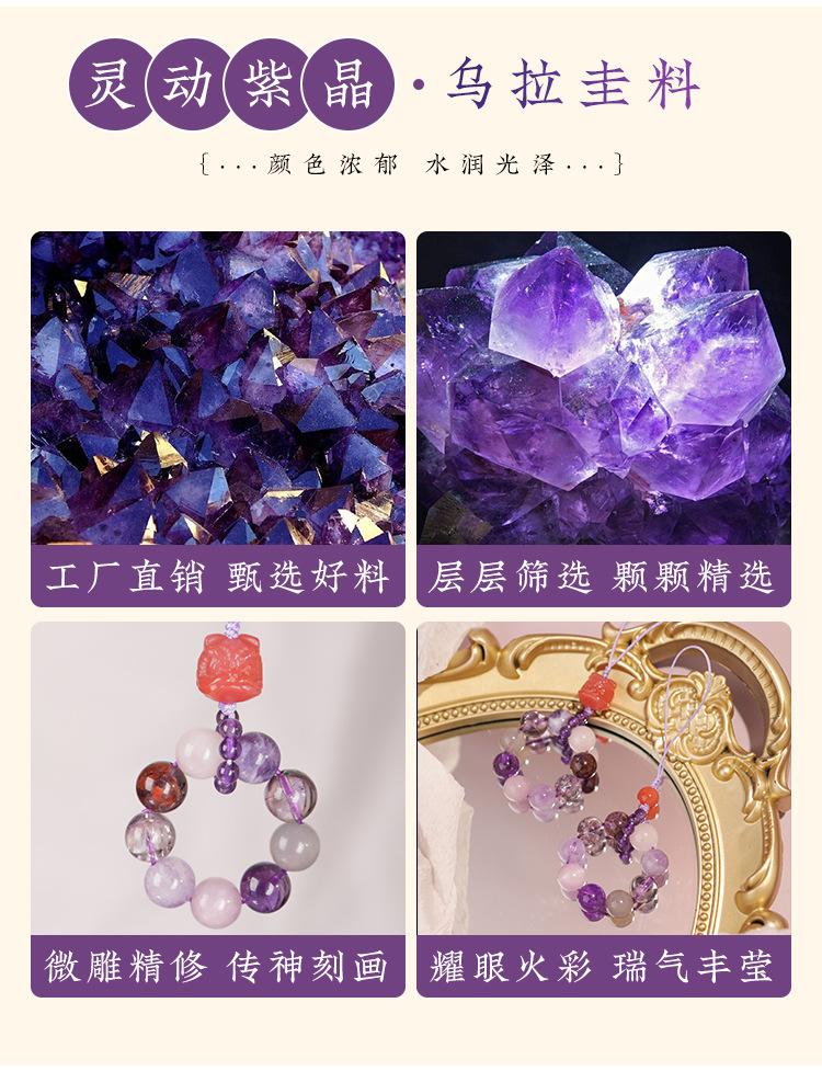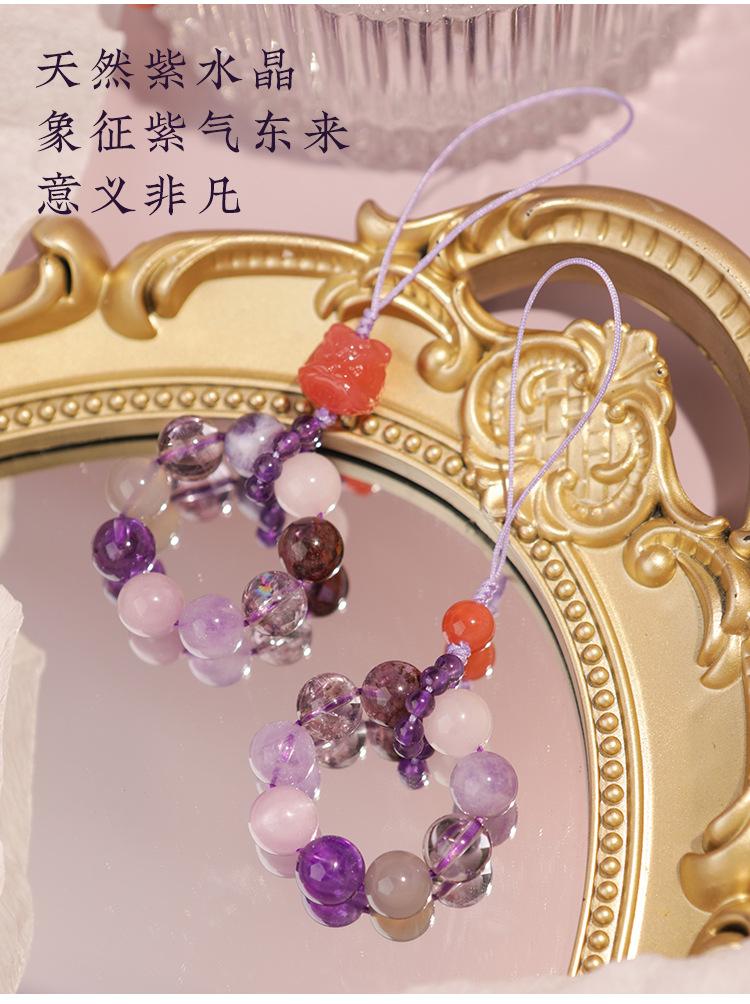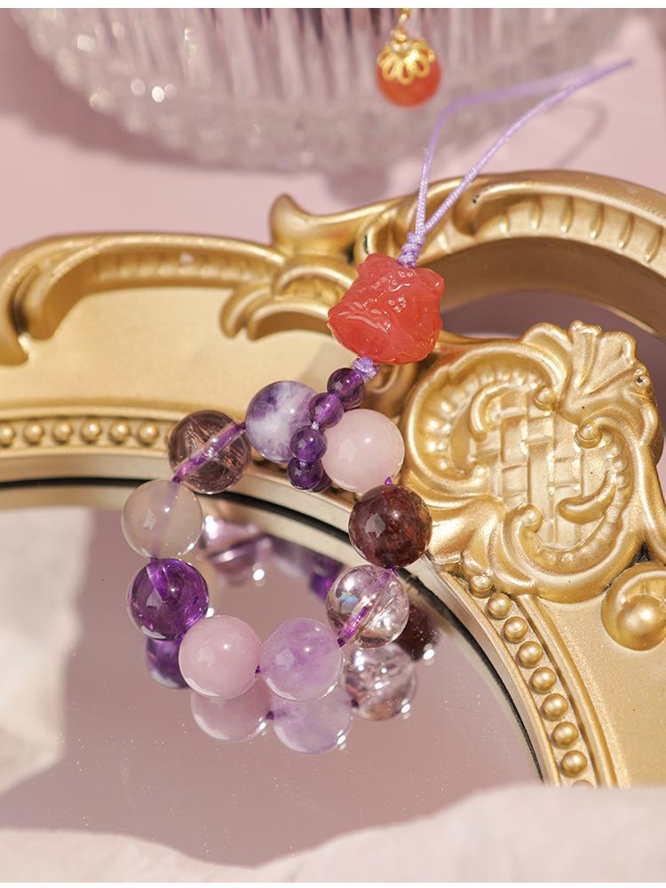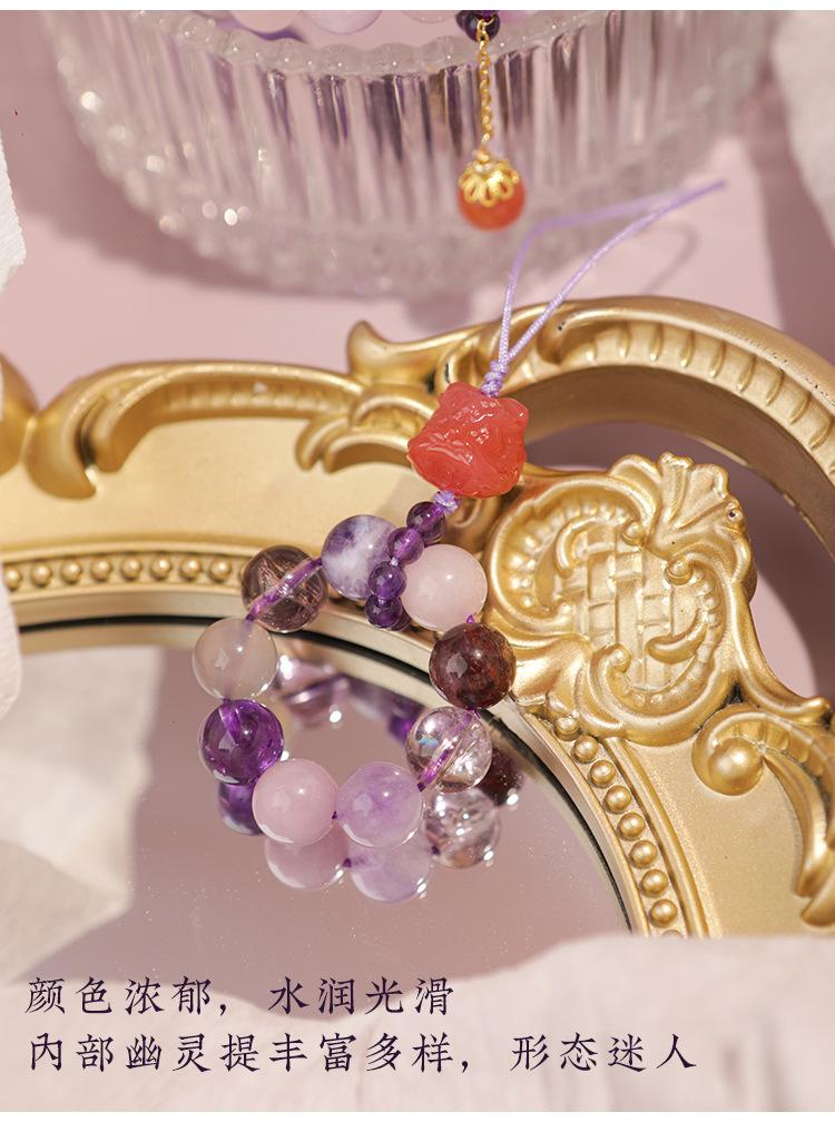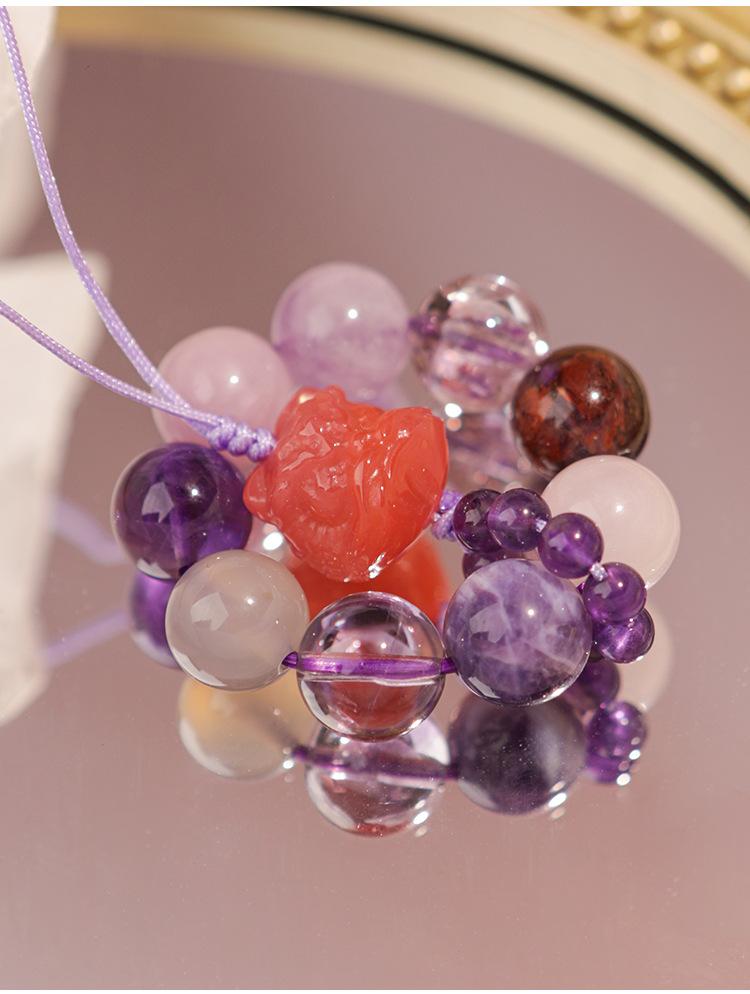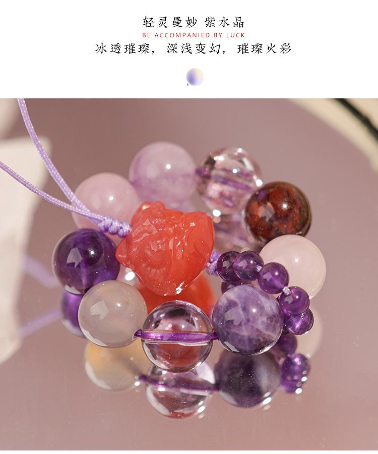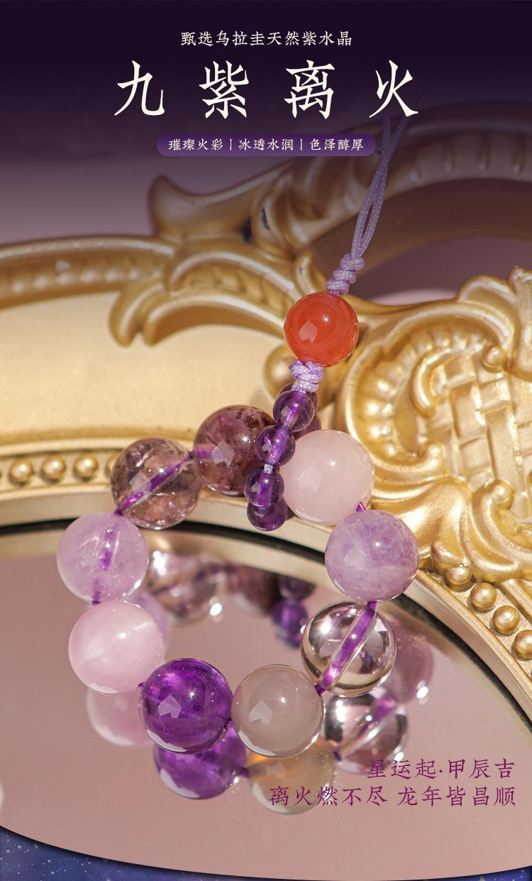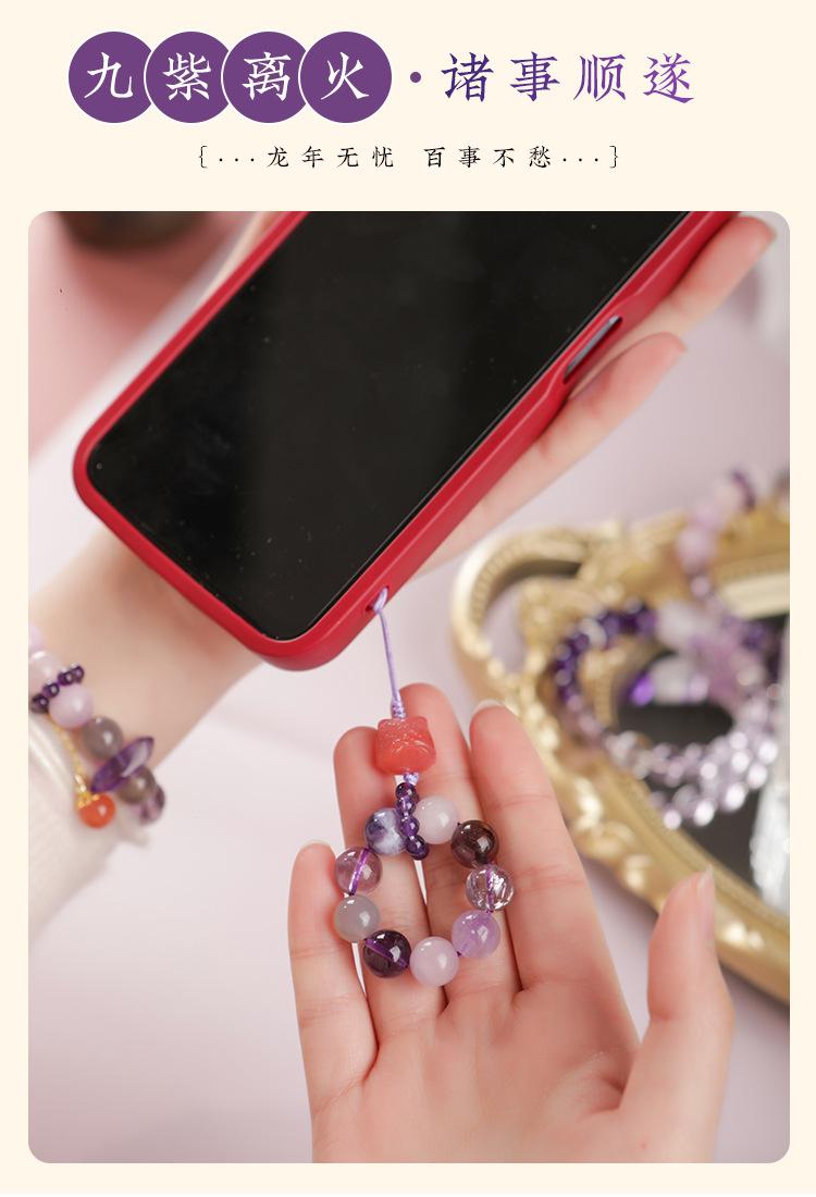 Llavero Nueve Fuego Púrpura Colgante para Teléfono Móvil Pulsera Año del Zodíaco para Mujer Abalorio de Cuentas de Amatista Natural Año del Dragón