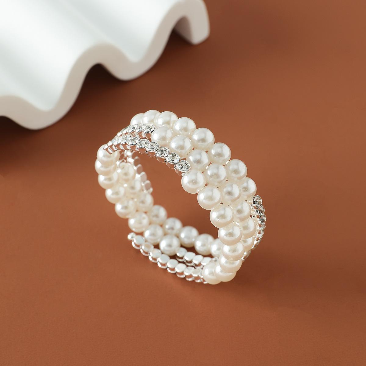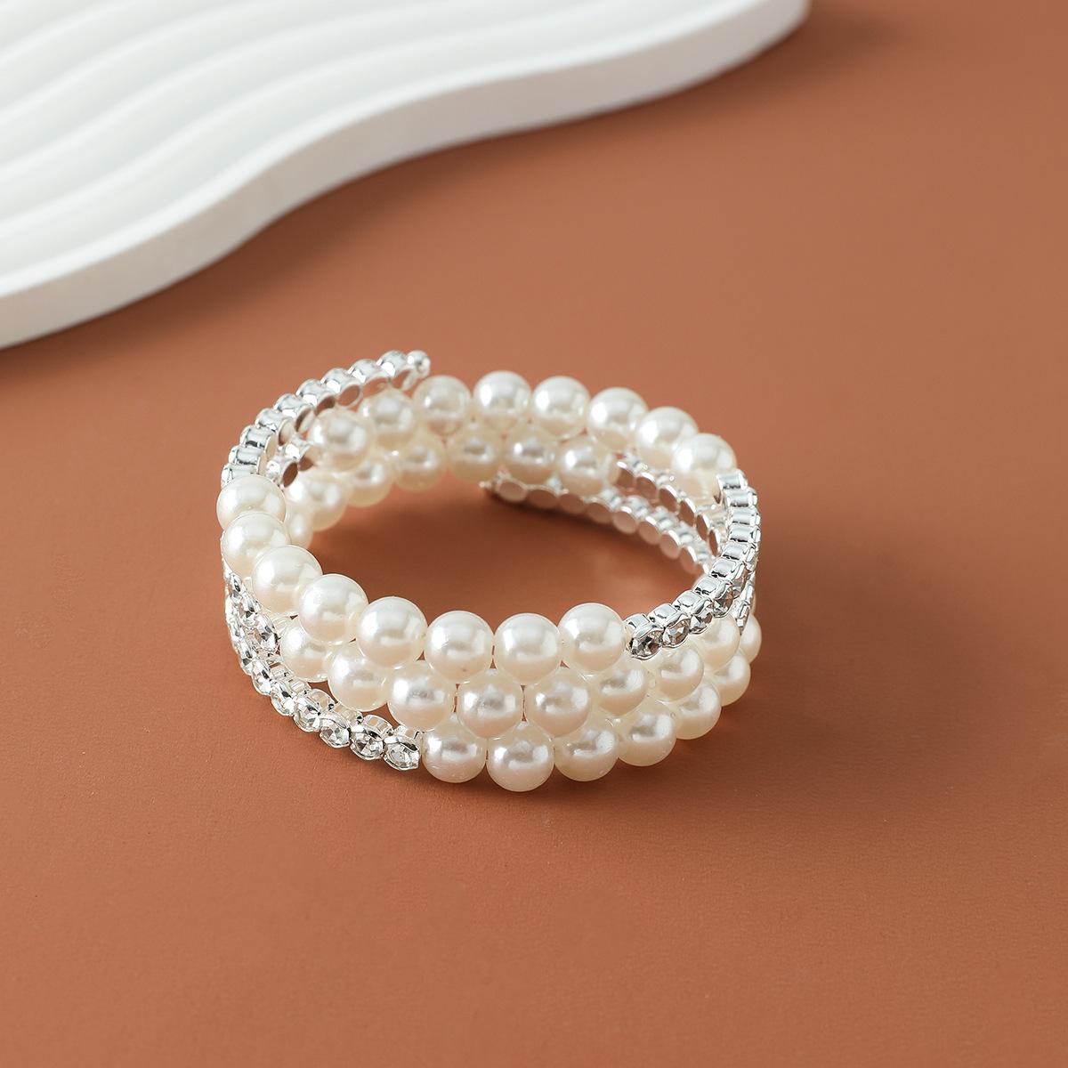 Pulsera de perlas de diamantes de imitación para mujeres europeas y americanas transfronterizas, pulsera abierta multicapa con temperamento de moda, pulsera abierta al por mayor