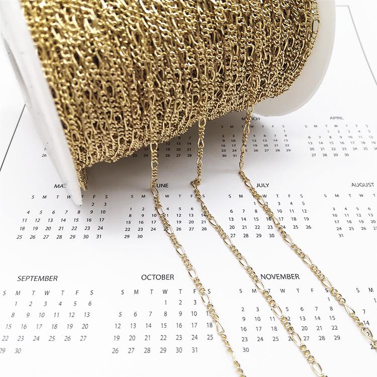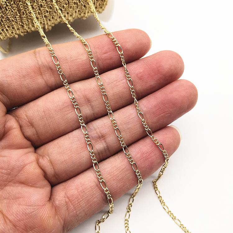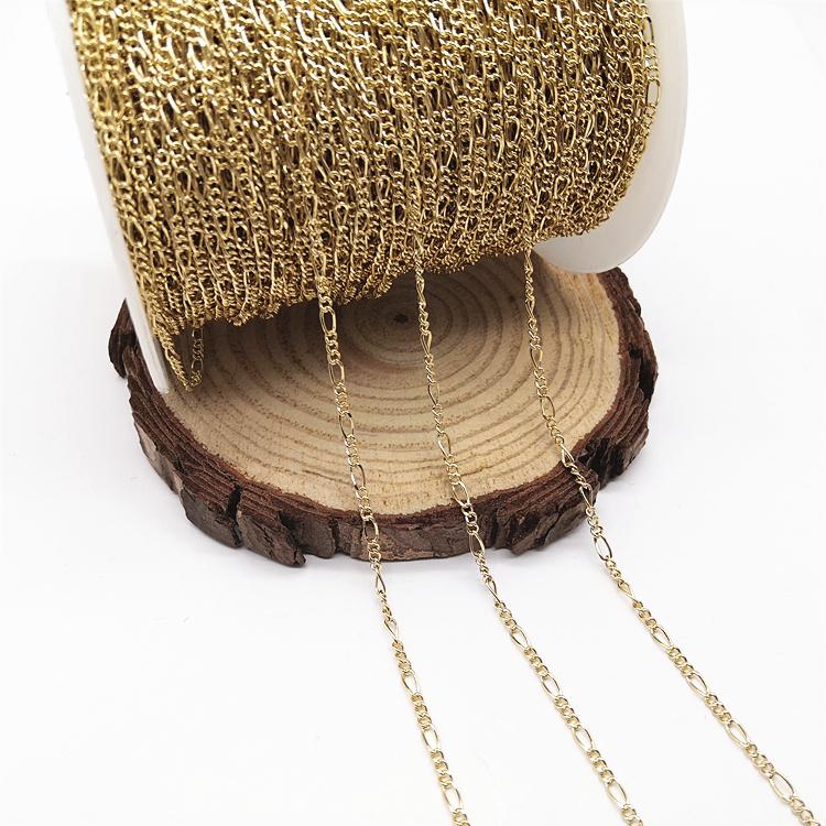 Accesorios chapados en oro de 14 quilates, cadena suelta en forma de O que conserva el color, pulsera de joyería DIY hecha a mano, material para collar con borlas