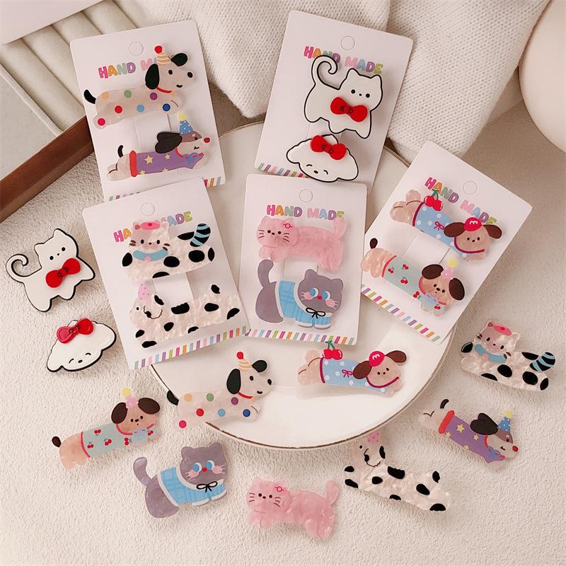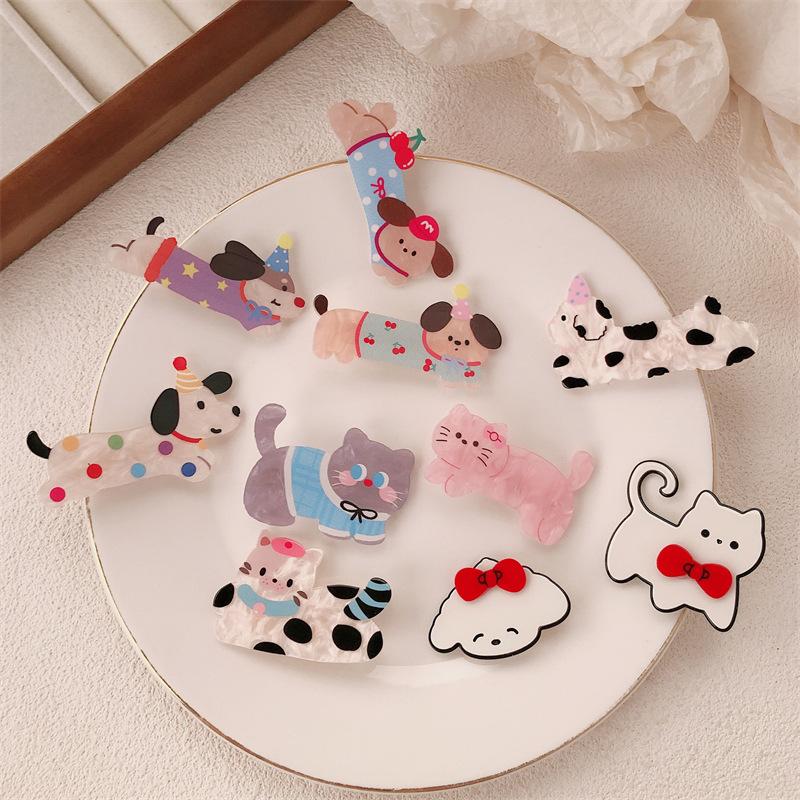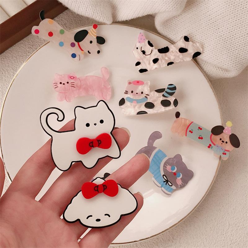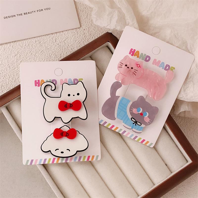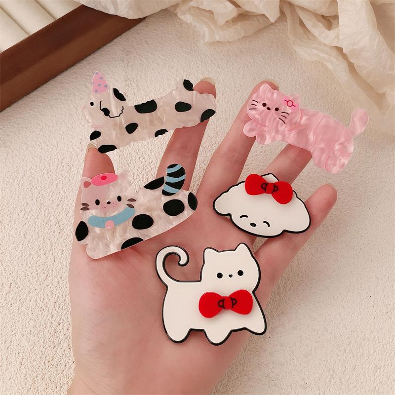 Horquilla con forma de gatito y cachorro de dibujos animados, lazo de corazón, flequillo roto, pinza lateral, horquilla de gatito que combina con todo.