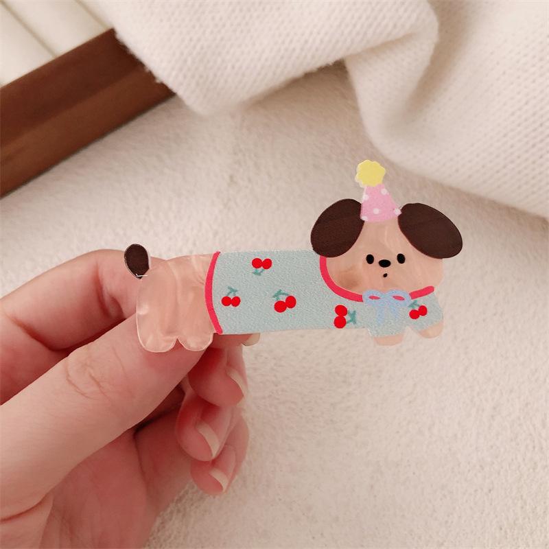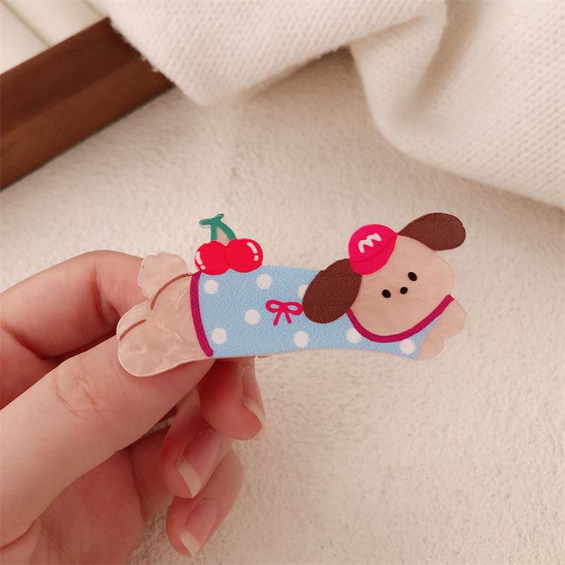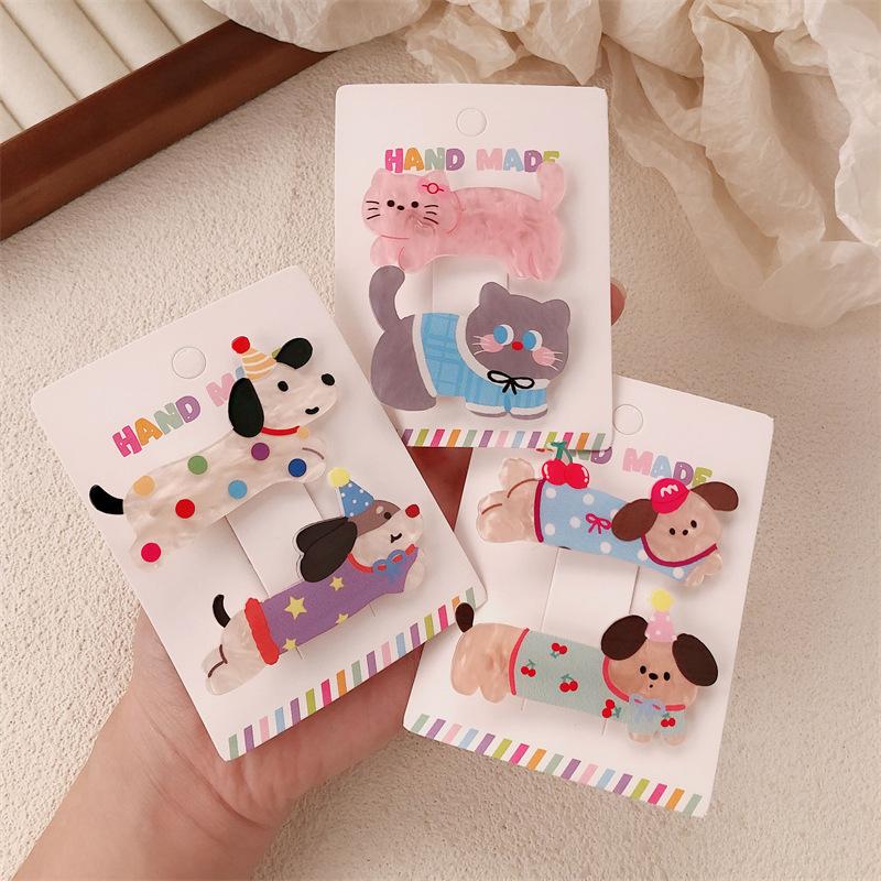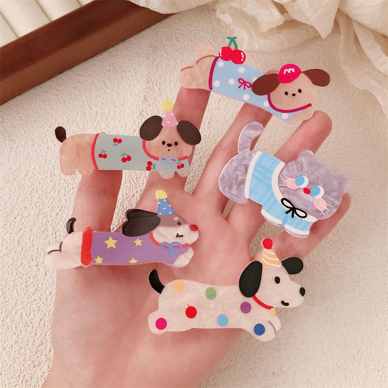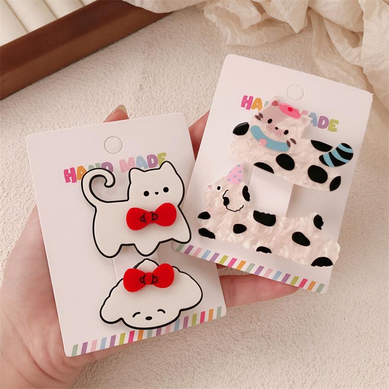 Horquilla con forma de gatito y cachorro de dibujos animados, lazo de corazón, flequillo roto, pinza lateral, horquilla de gatito que combina con todo.
