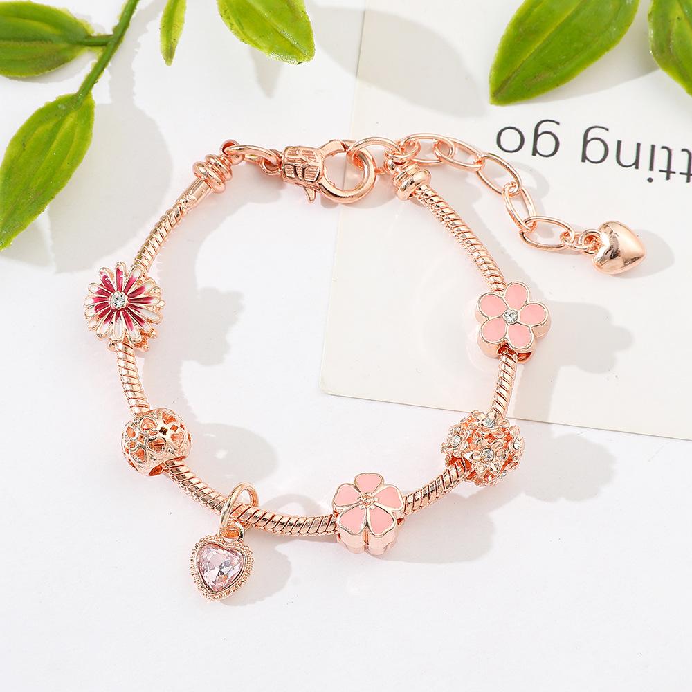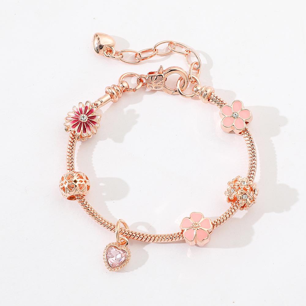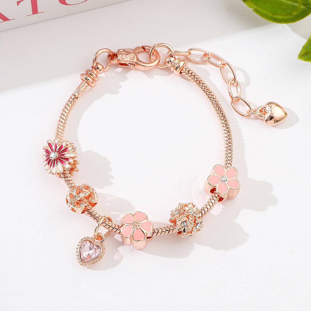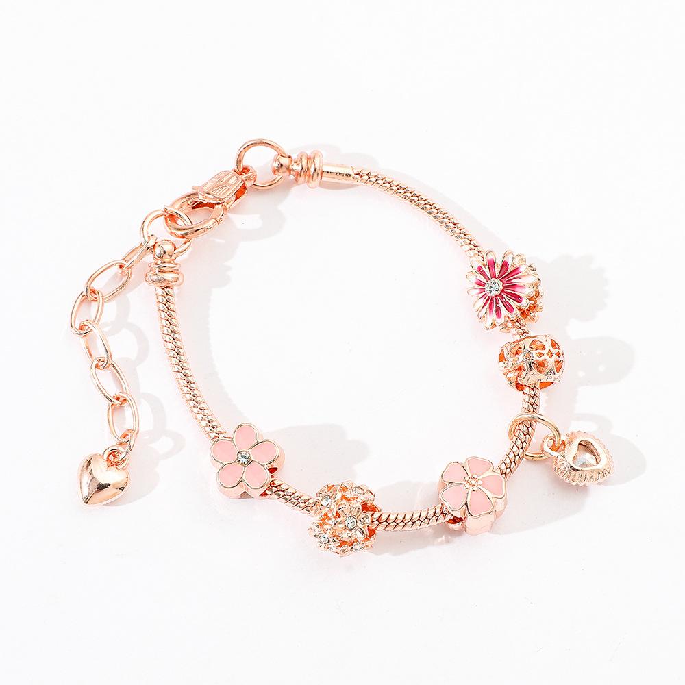 Pulsera de flores nuevas europeas y americanas de Amazon transfronteriza, pulsera de amor de flores, Pan Jia Dora, pulsera de joyería DIY al por mayor
