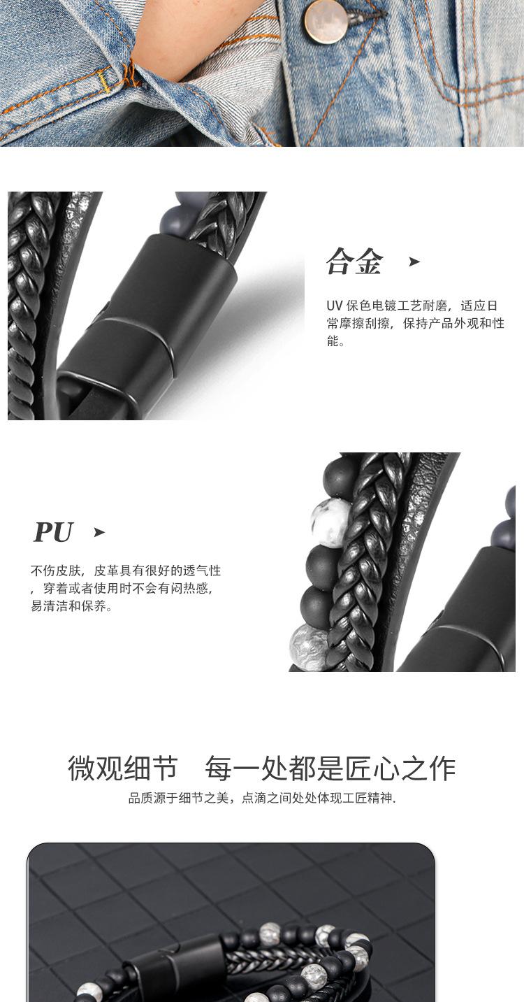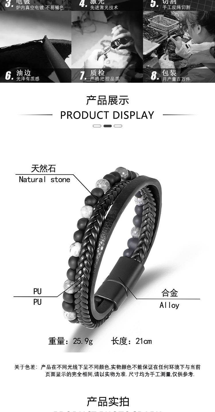 Nueva pulsera de cuentas de moda para hombre, pulsera de cuero tejido simple, pulsera con hebilla magnética de aleación de alta calidad que combina con todo.