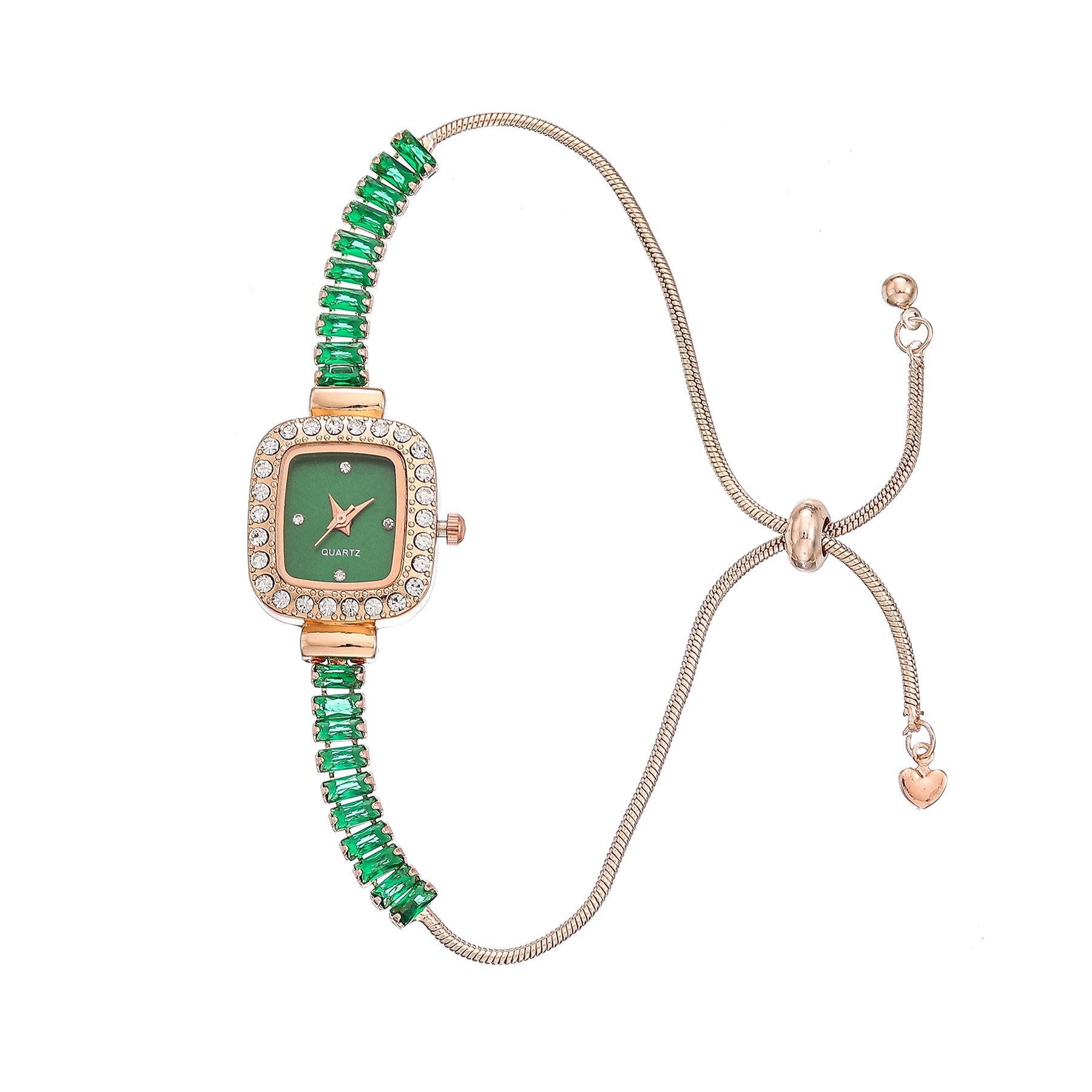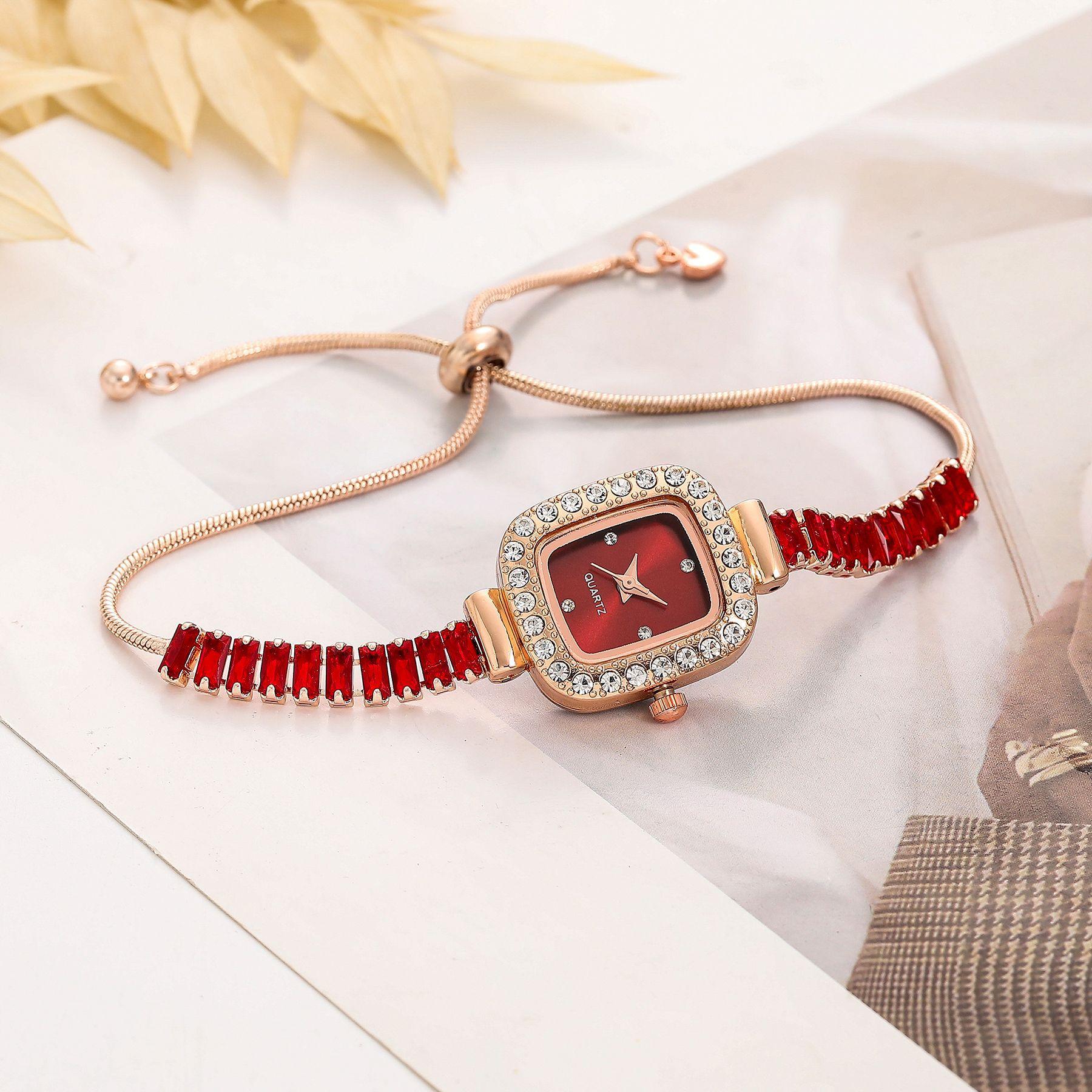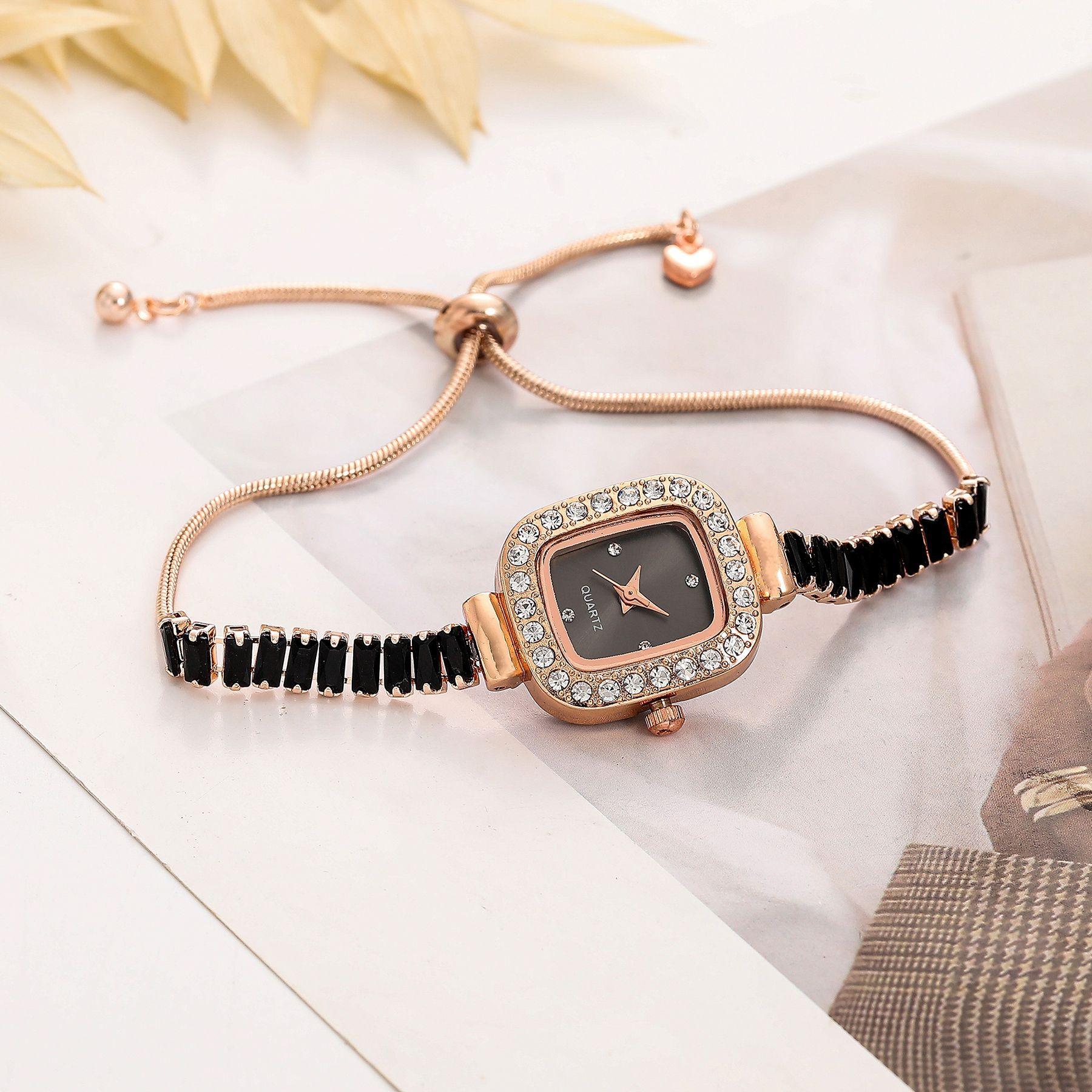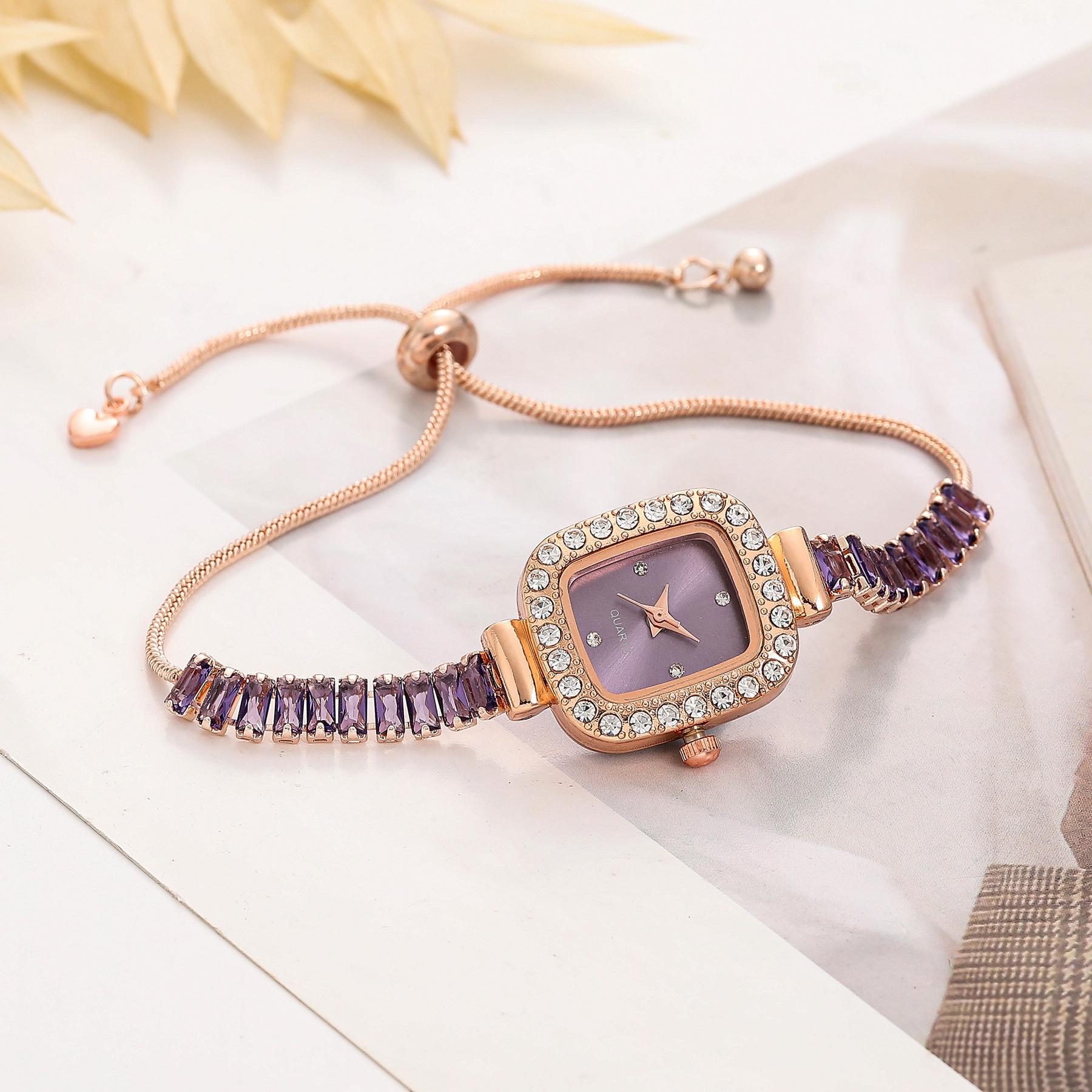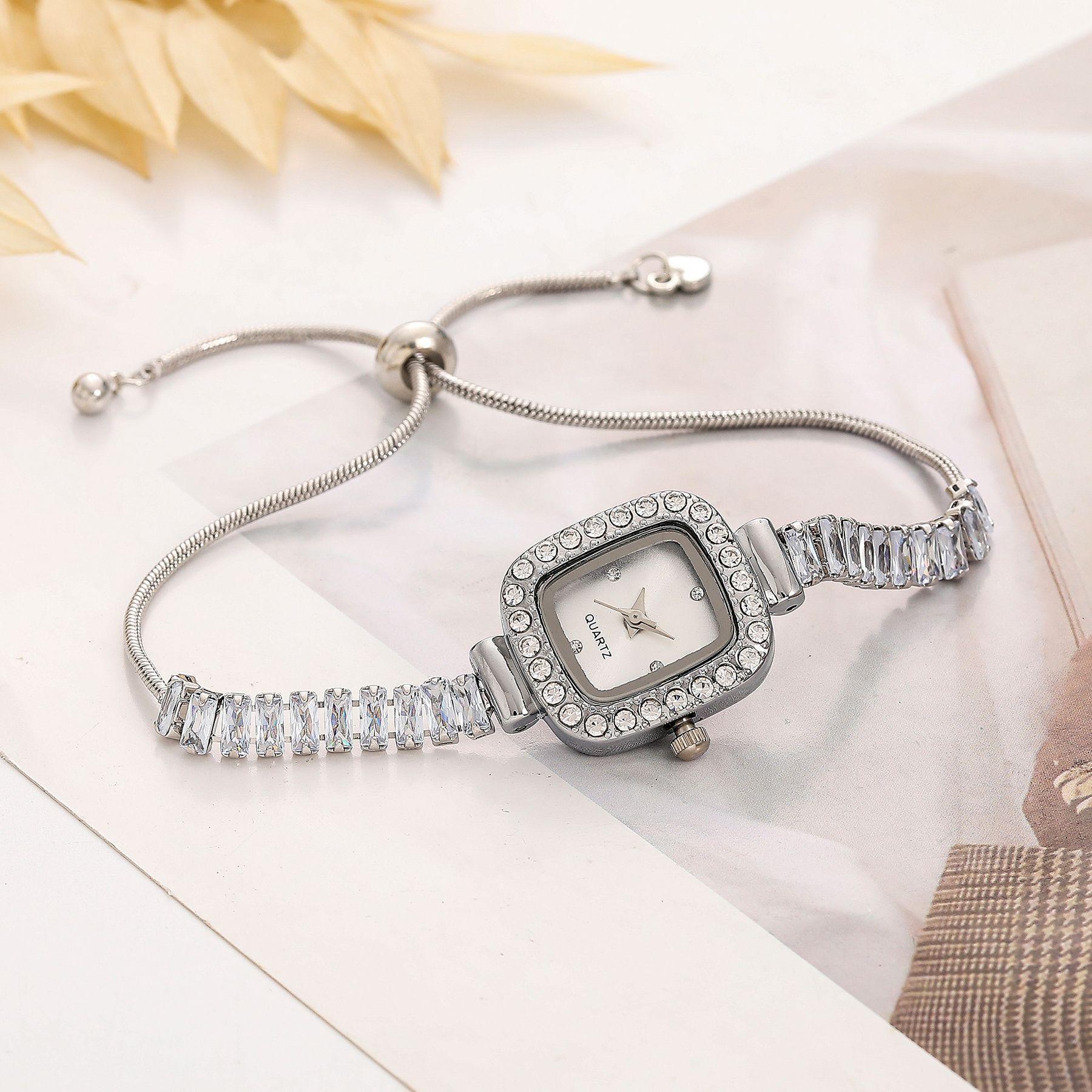 Nuevo reloj de moda con incrustaciones de diamantes y circonitas cuadradas pequeñas para mujer, correa de ajuste libre, pulsera de cuarzo, reloj de comercio exterior para mujer