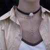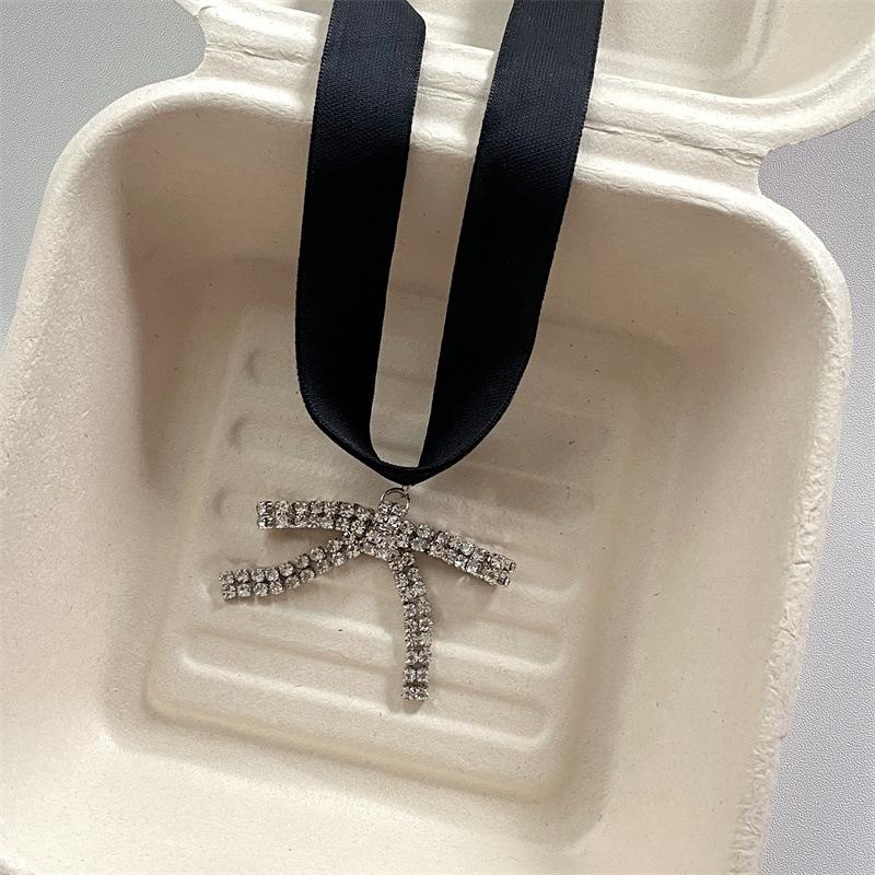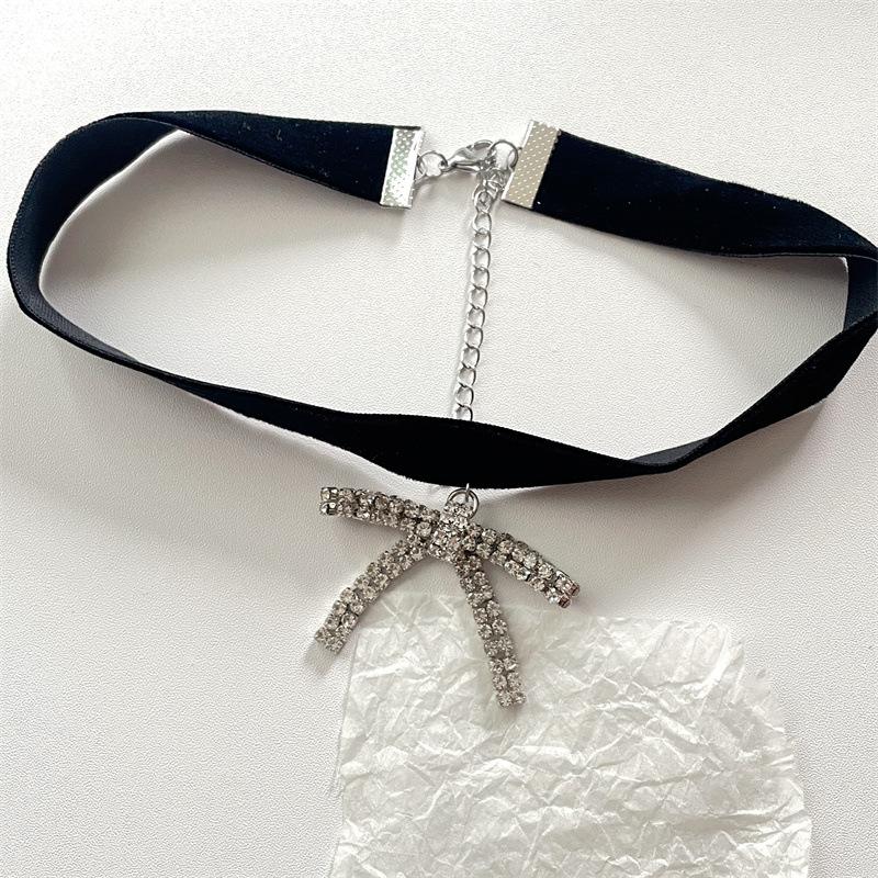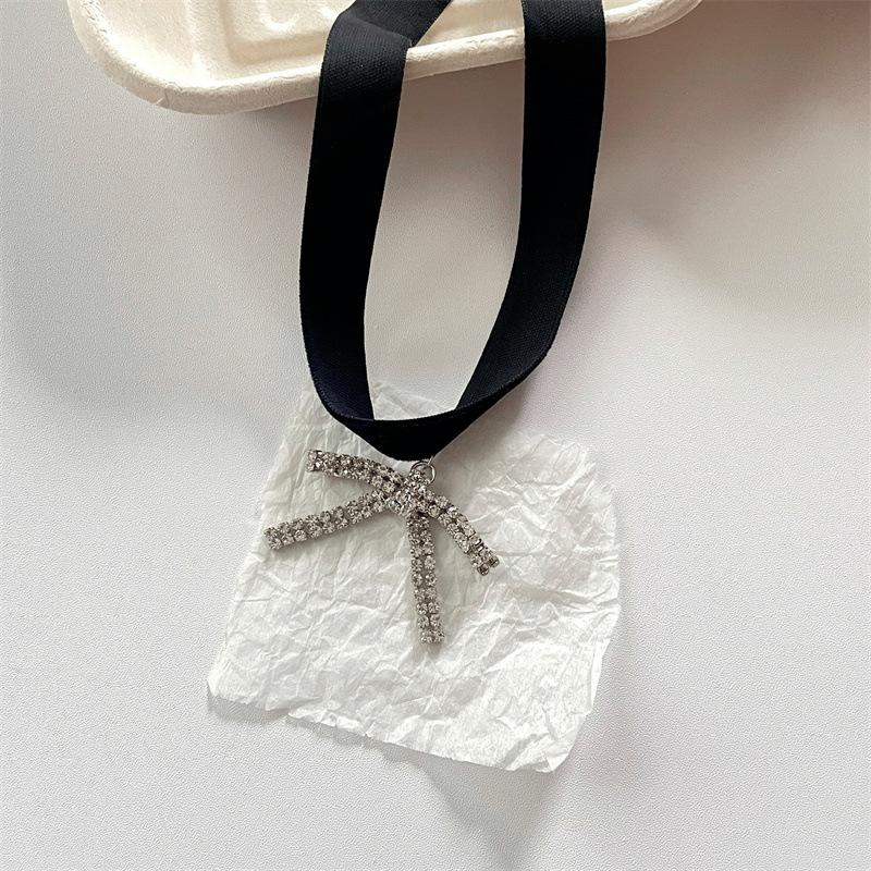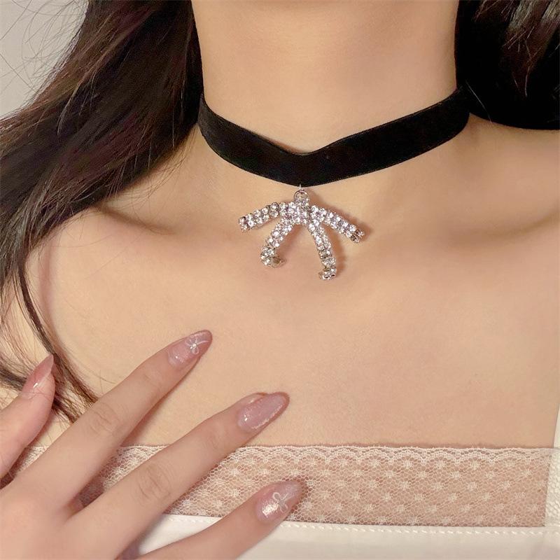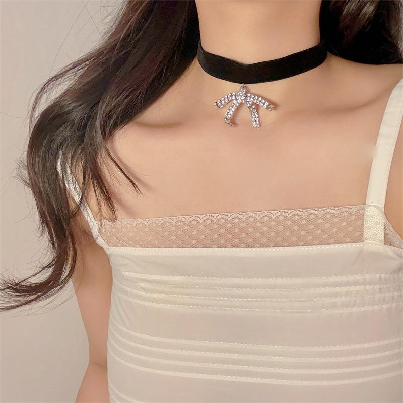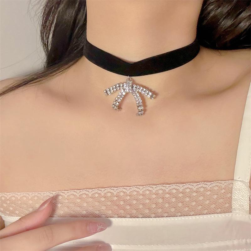Corea del Sur Dongdaemun gargantilla de cadena para el cuello con lazo de pedrería de terciopelo para la clavícula para mujer