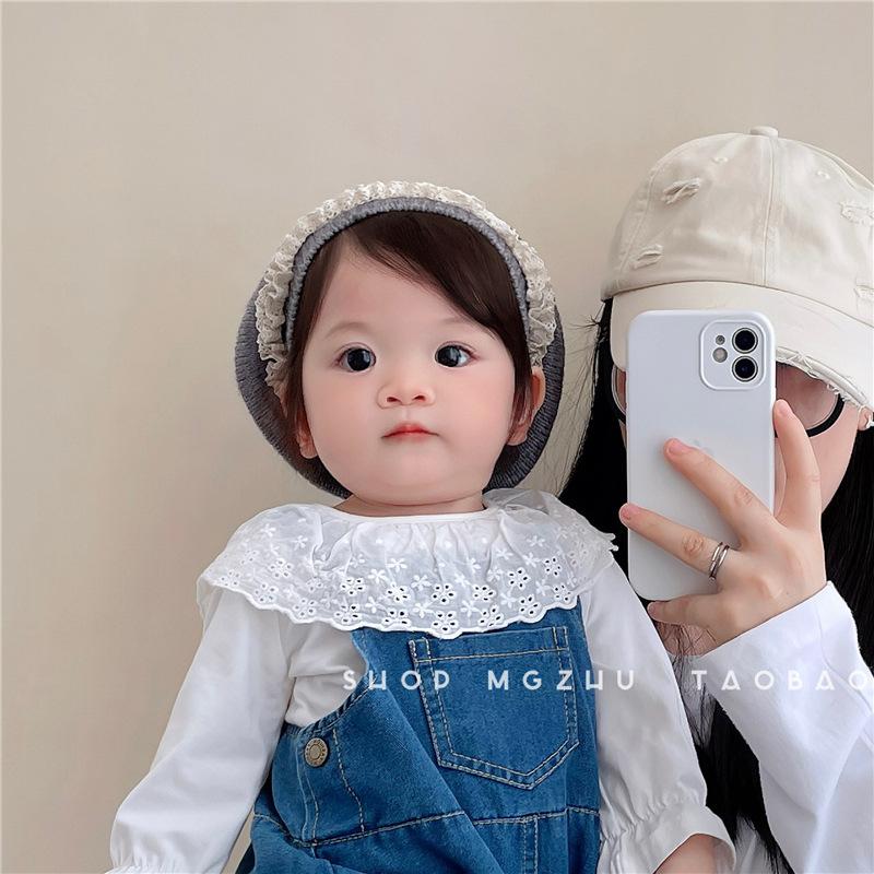 Lace beret gray + 5 months to 3 years old (head circumference 43-50cm) + one size fits all, Lace beret black +...