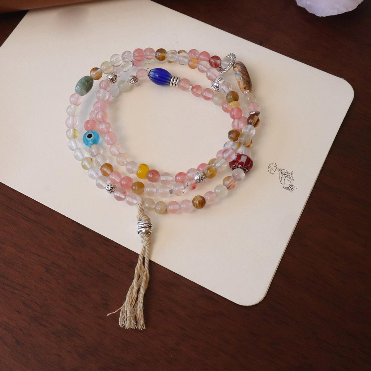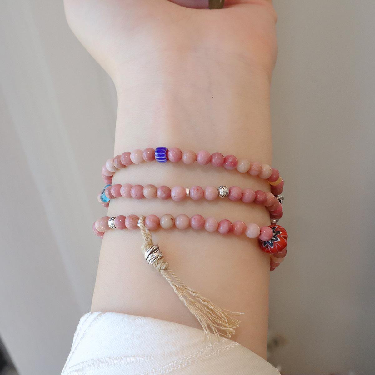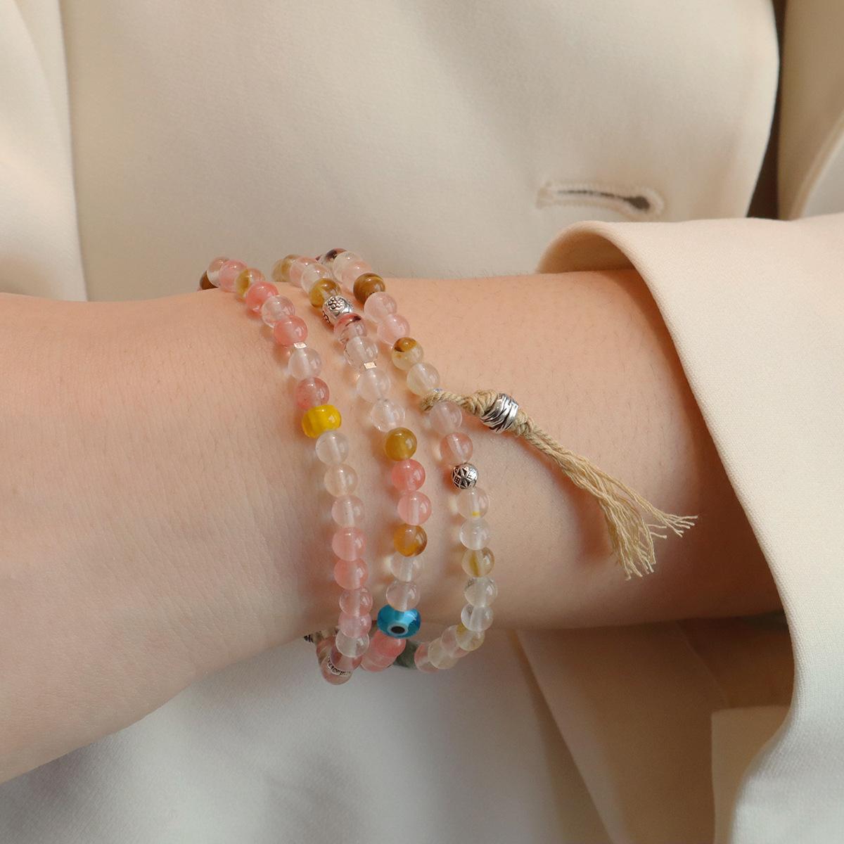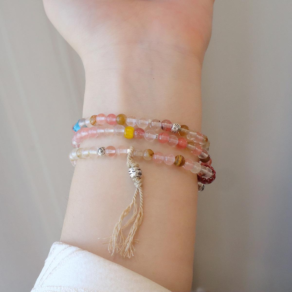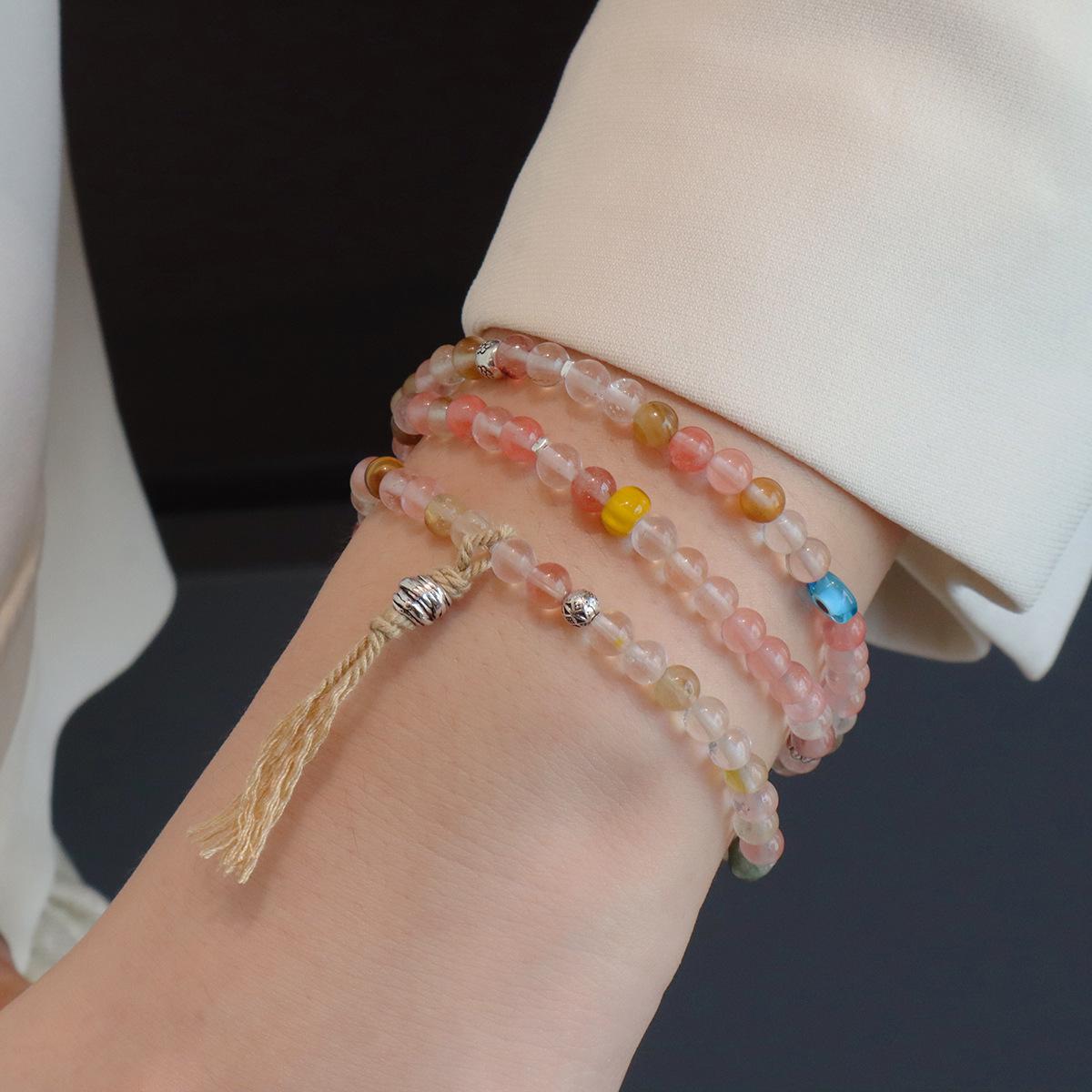 Three-circle mahogany stone tassel bracelet, Three-circle watermelon crystal fresh bracelet