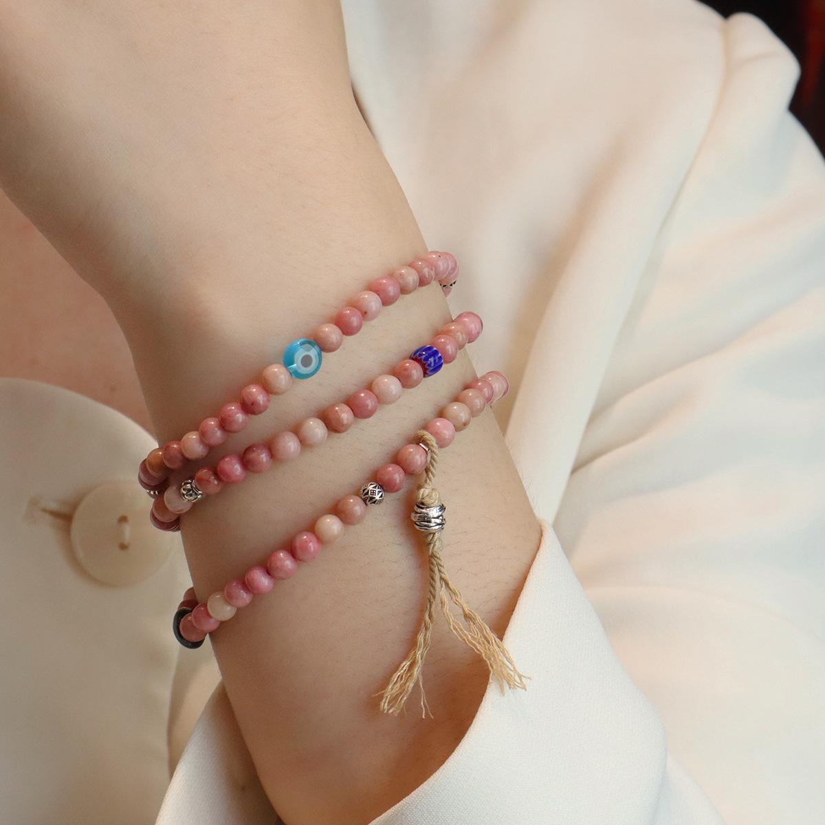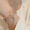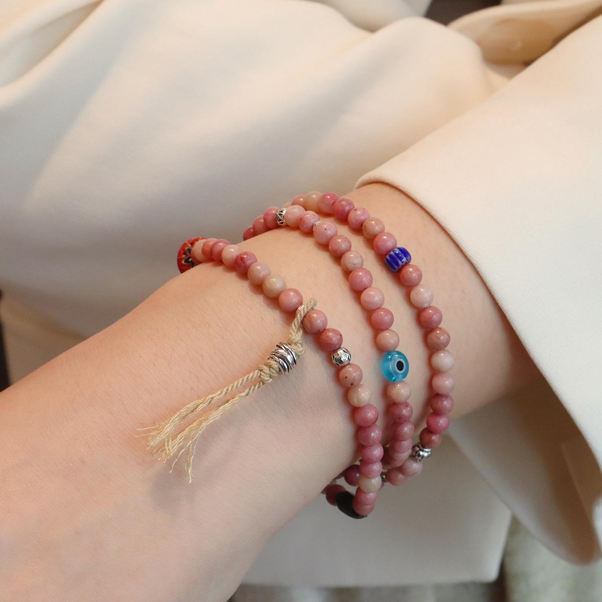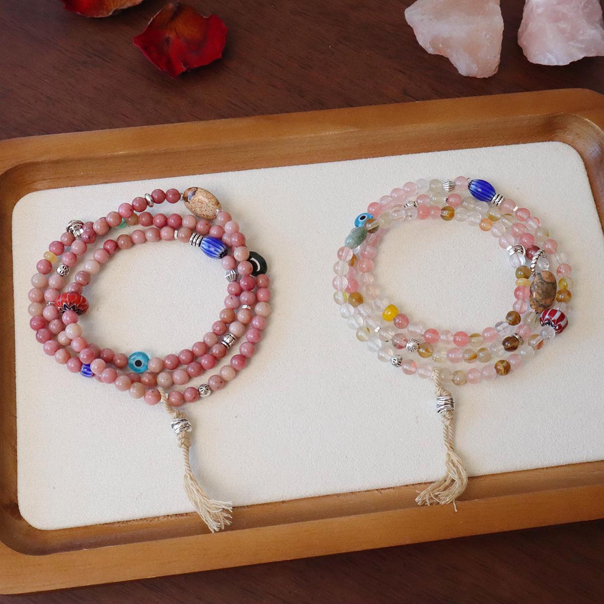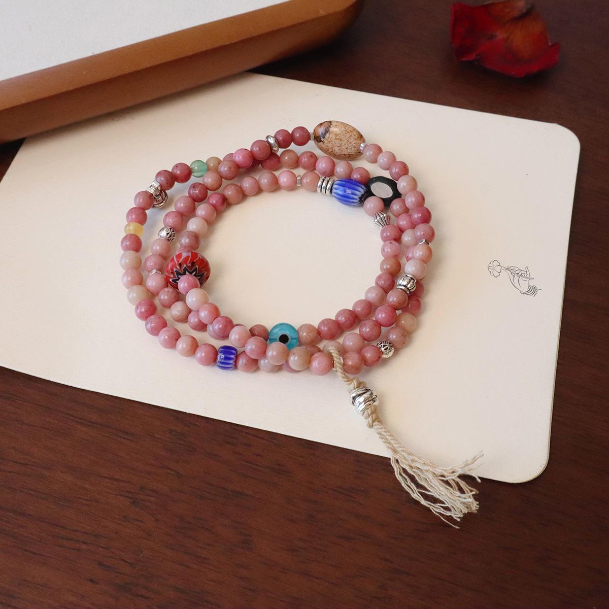 Three-circle mahogany stone tassel bracelet, Three-circle watermelon crystal fresh bracelet