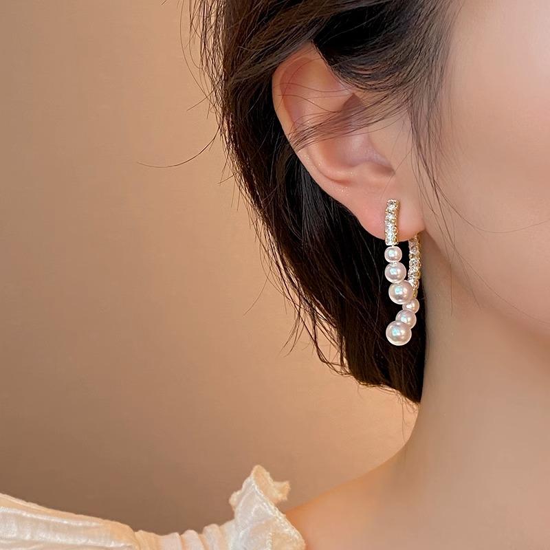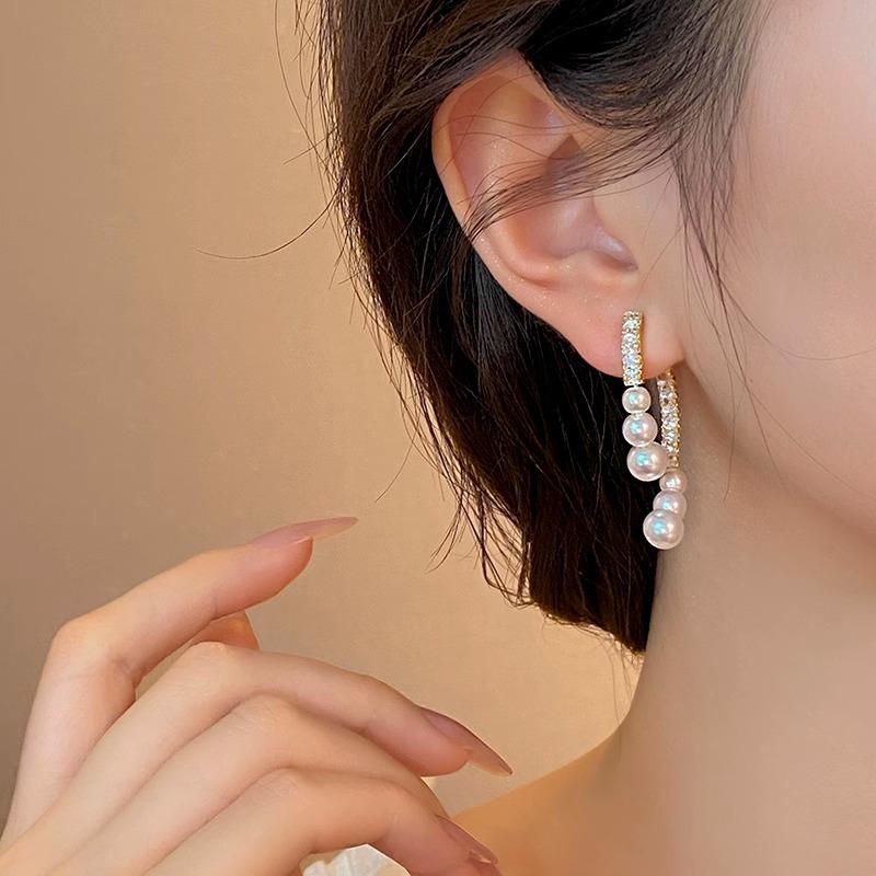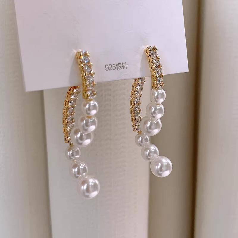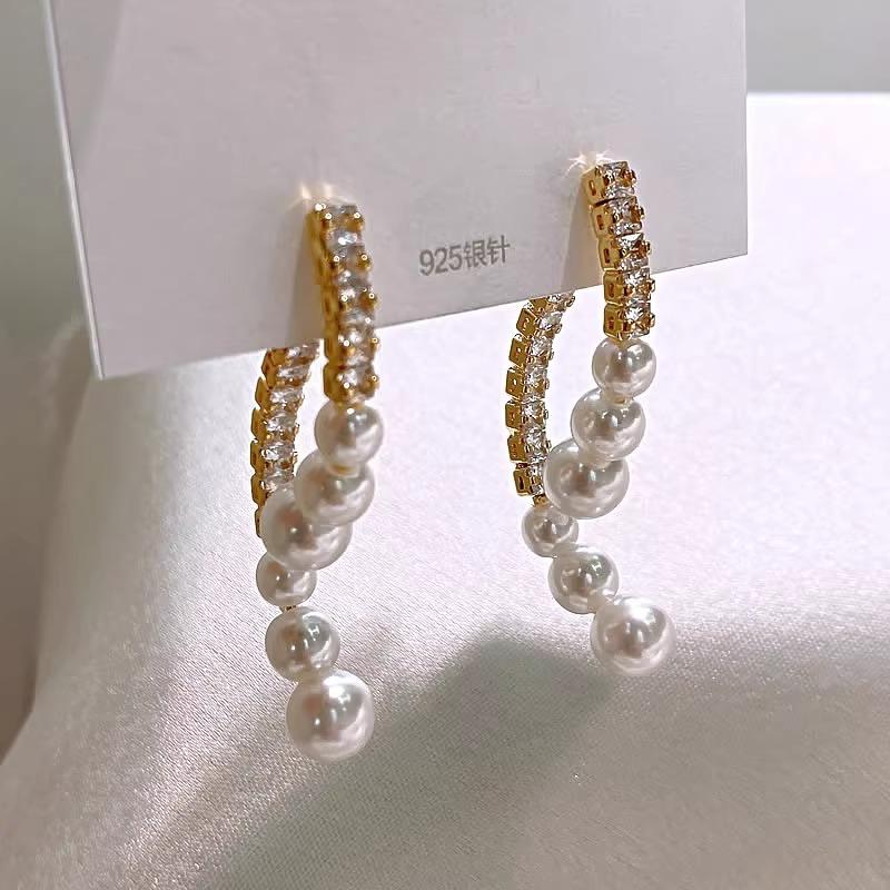 Pendientes de perla de circonita estilo francés para mujer, largos, ligeros, de lujo, de alta gama, nuevos pendientes elegantes y explosivos de 2024.