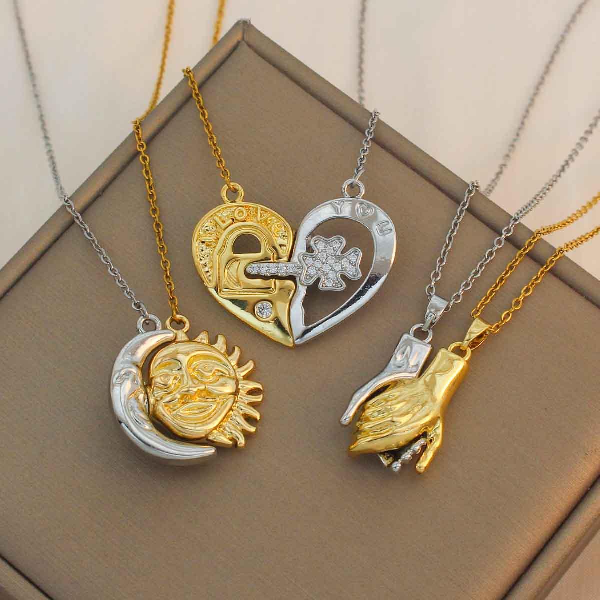 Xl1931 love combination necklace gold, Xl1933 sun and moon combination necklace gold, Xl1938 hand combination ...