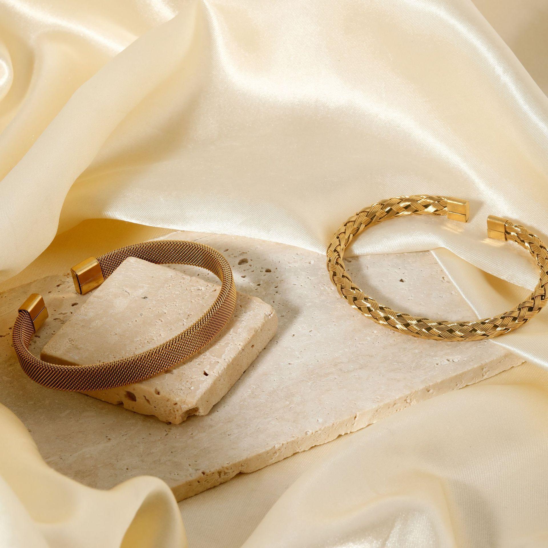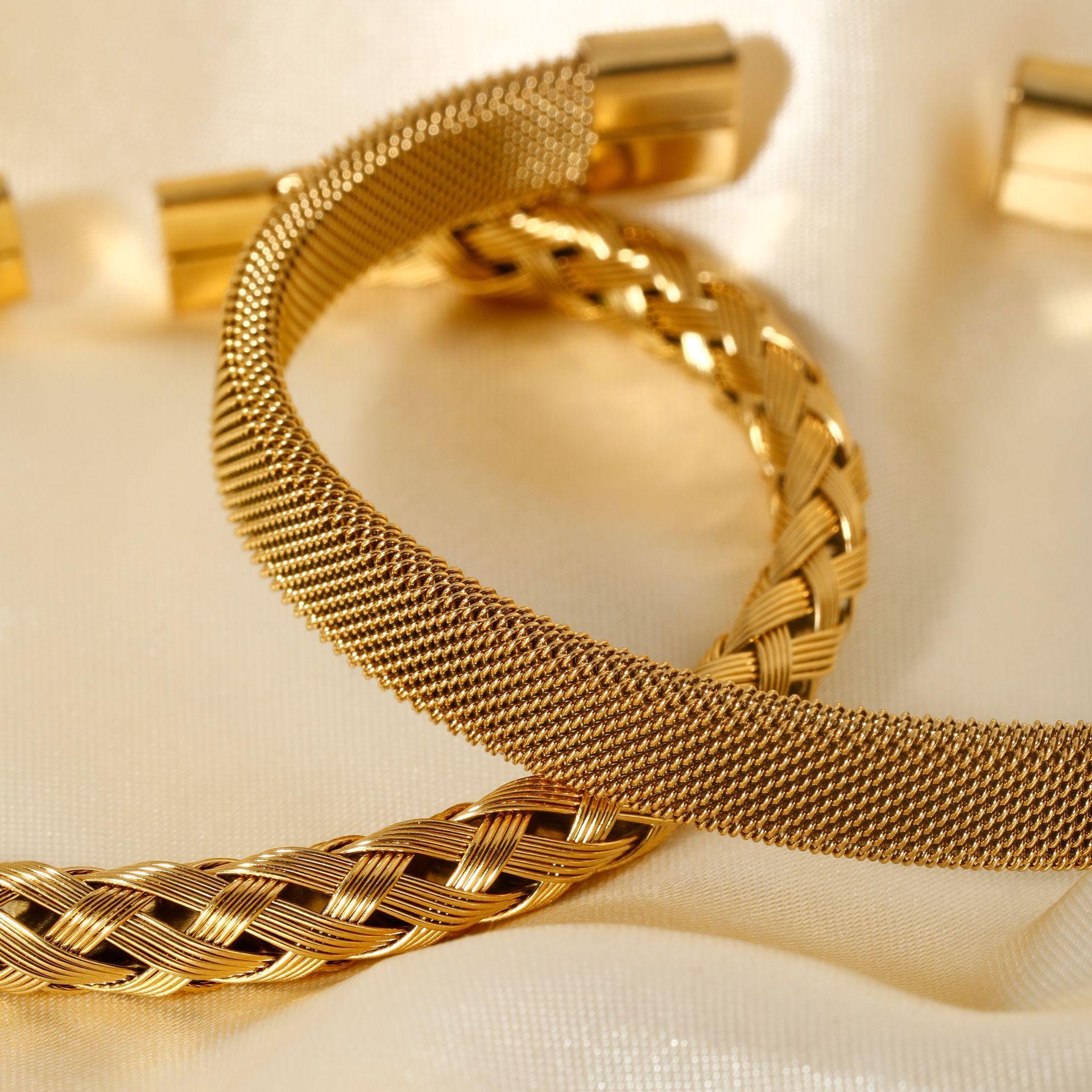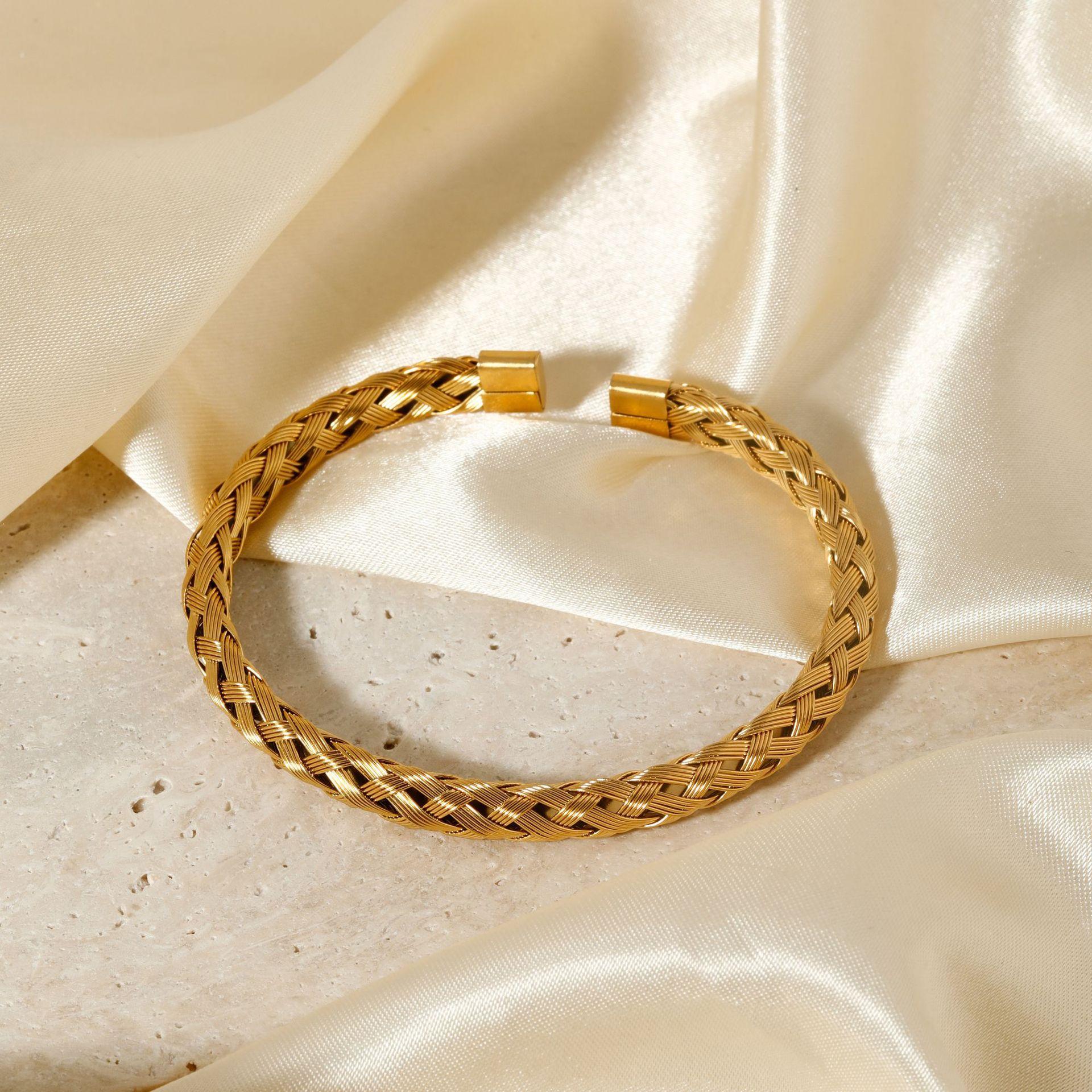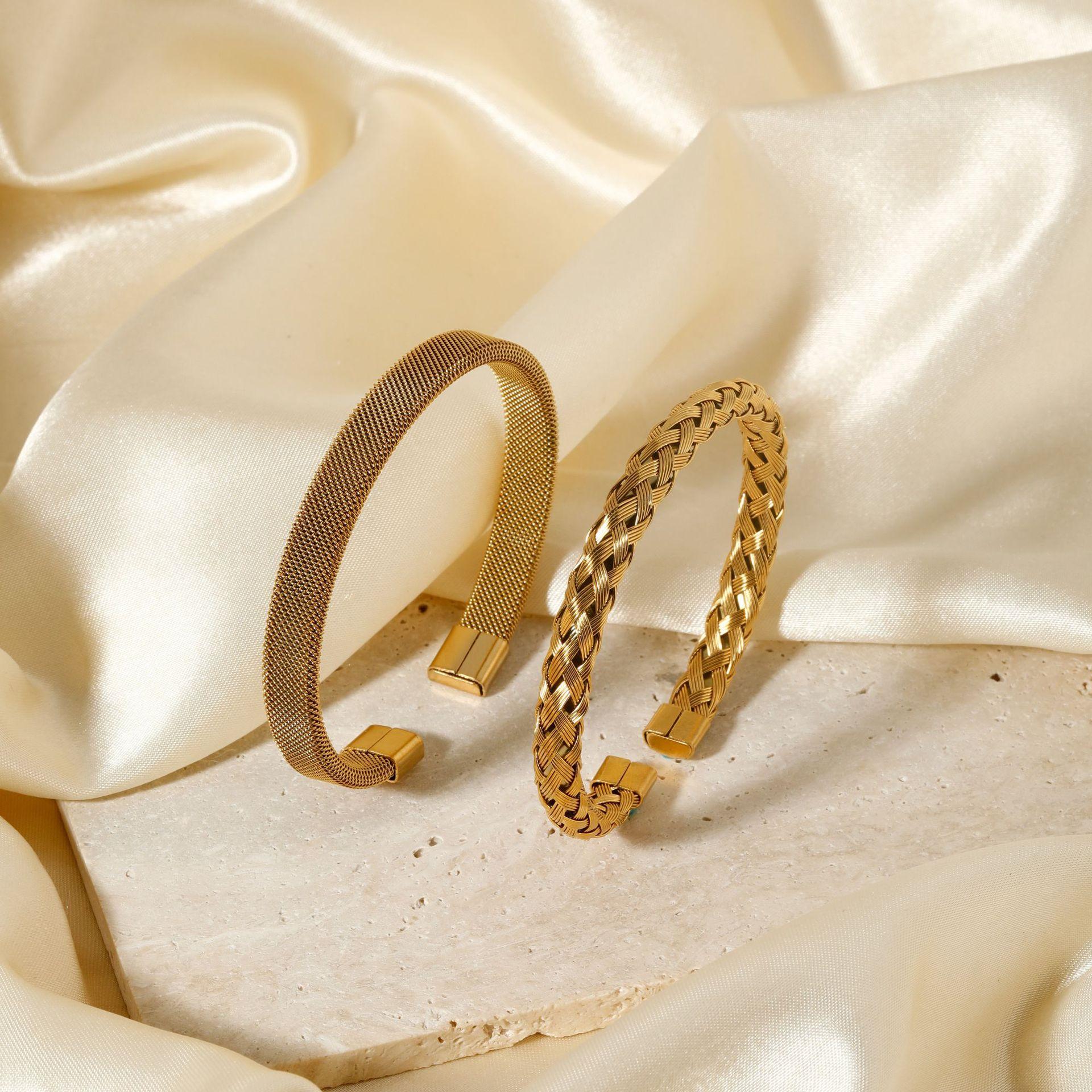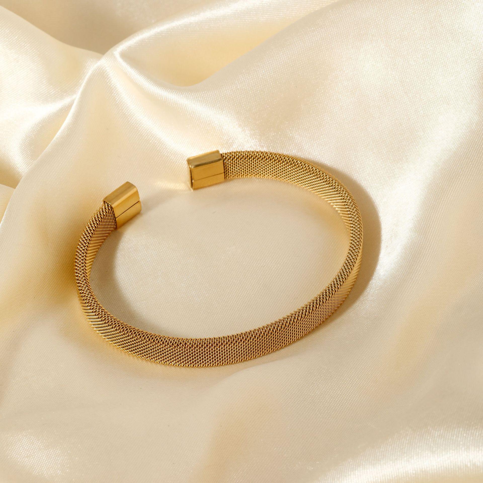 Pulsera tejida de acero inoxidable de alta gama con diseño transfronterizo europeo y americano de Moxi, joyería de mano con apertura tipo Joker al por mayor
