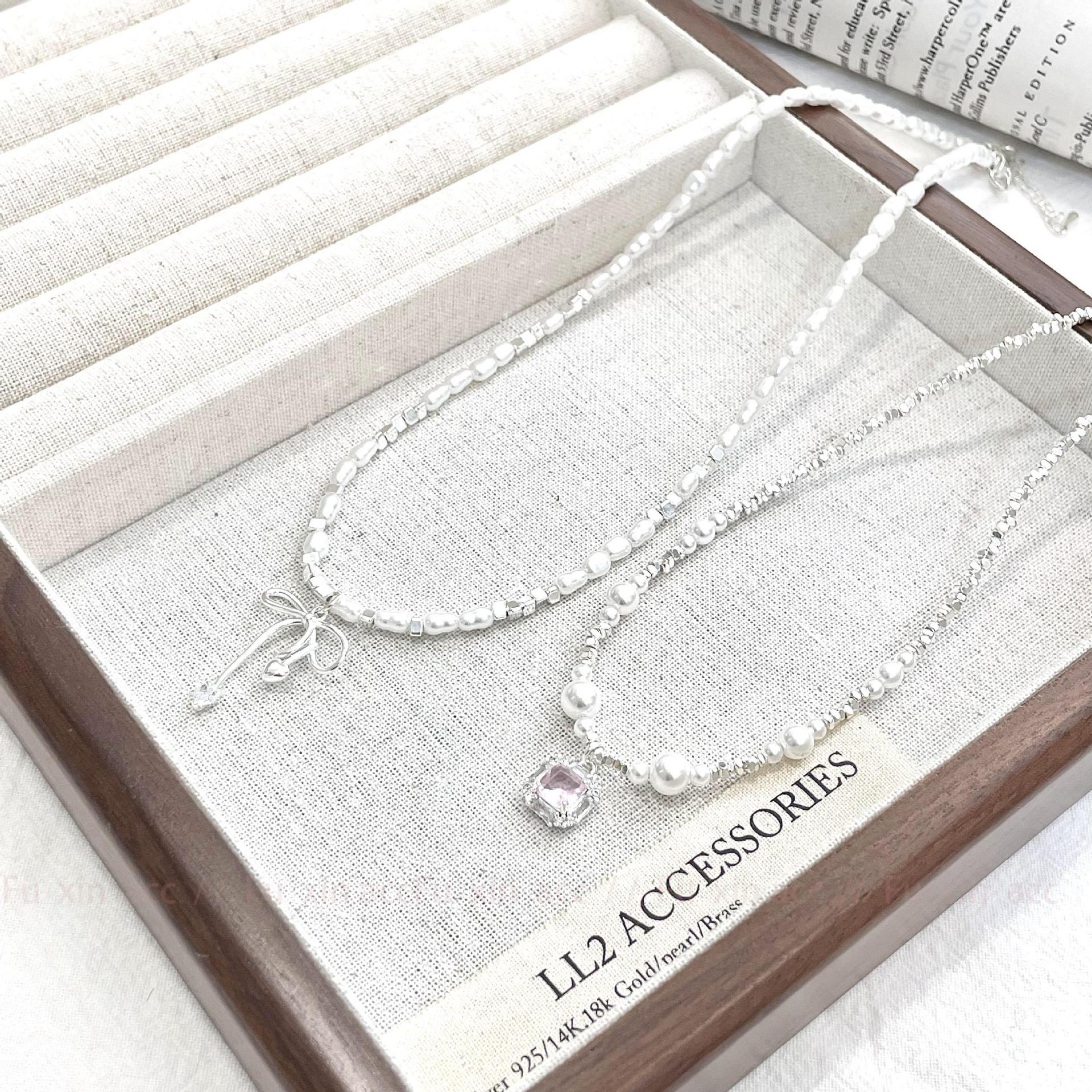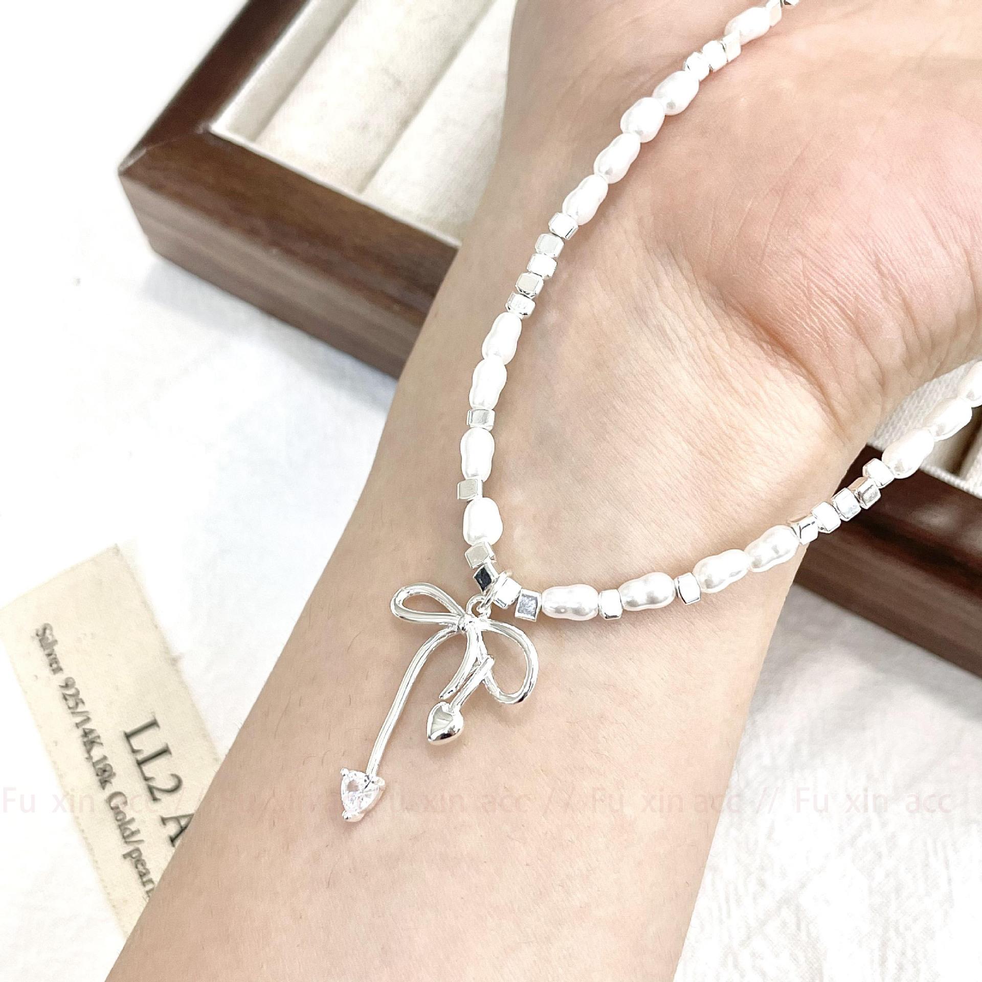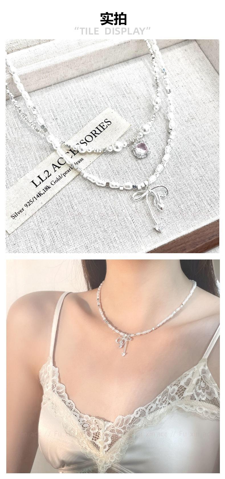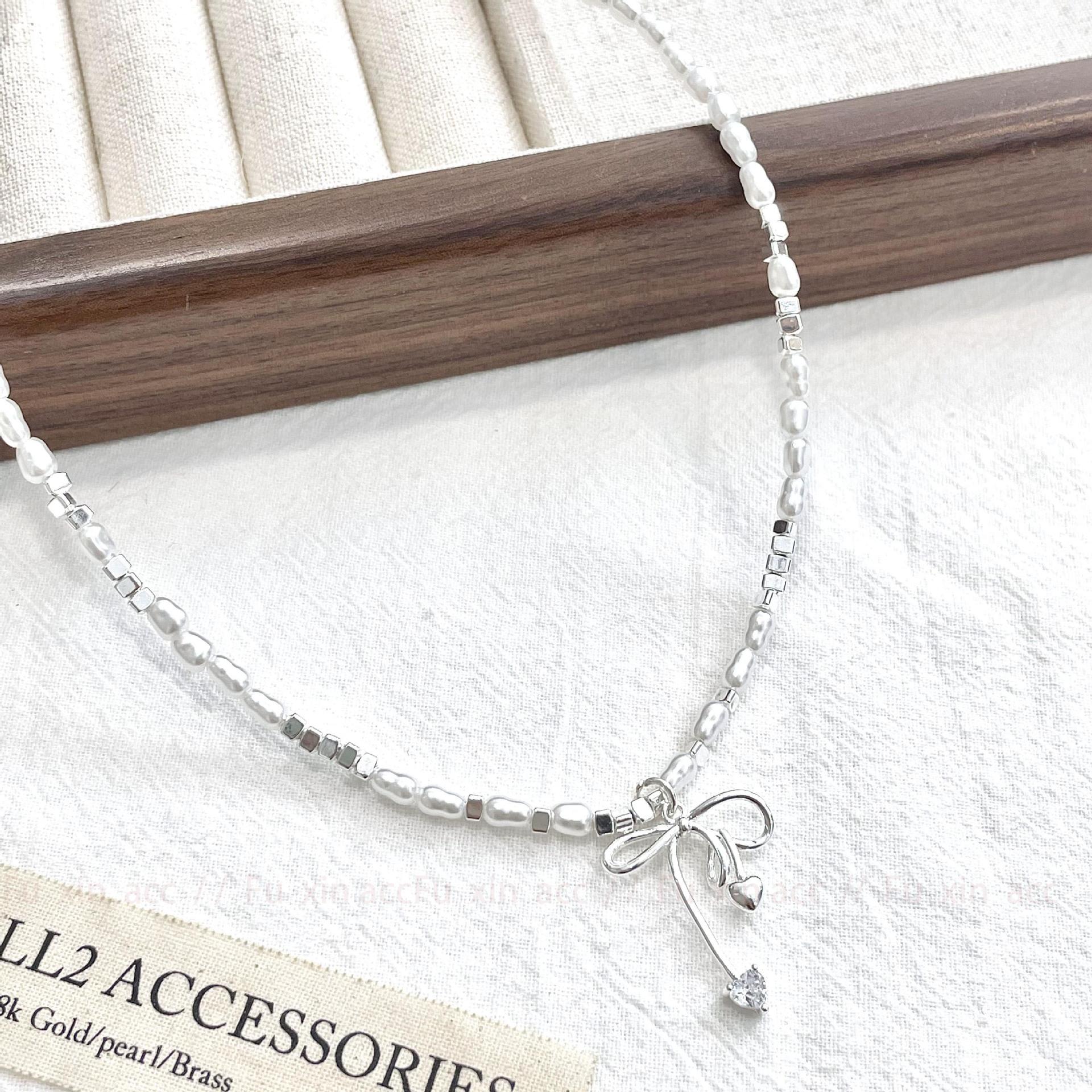 Verano fresco y dulce industria pesada plata rota perla lazo collar para mujer diseño simple de lujo ligero exquisita cadena para clavícula