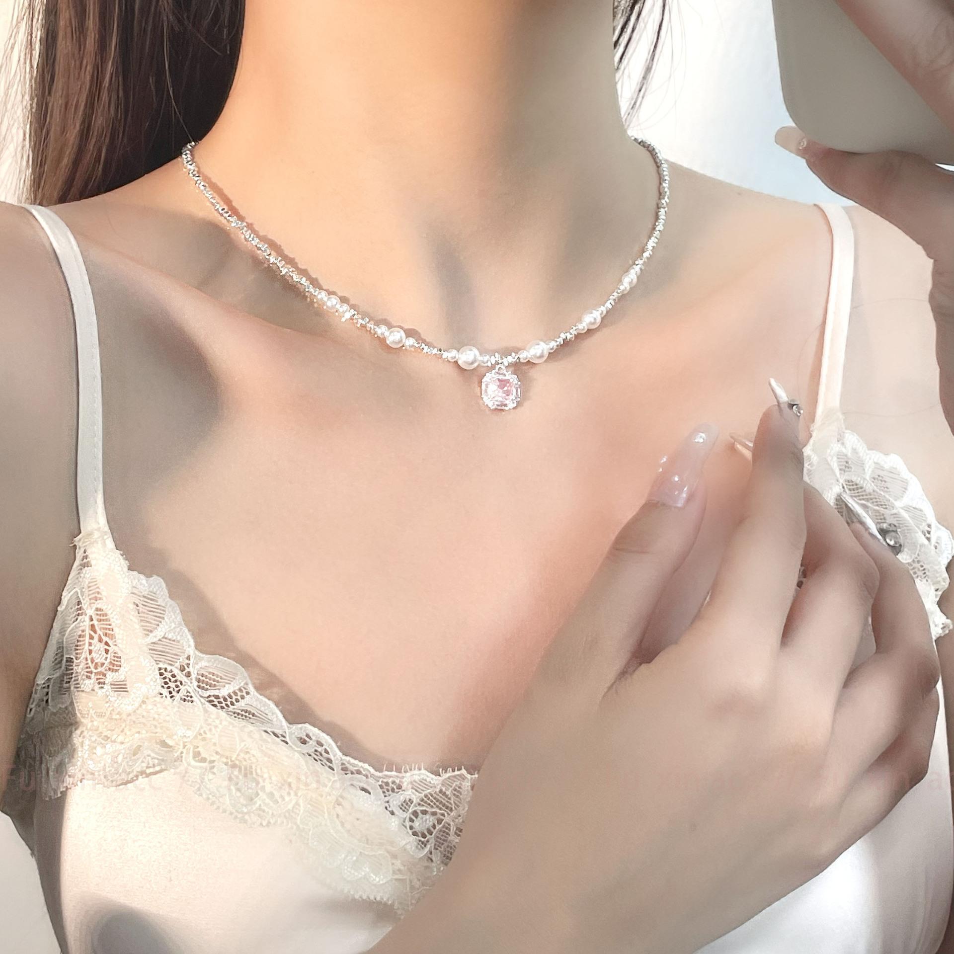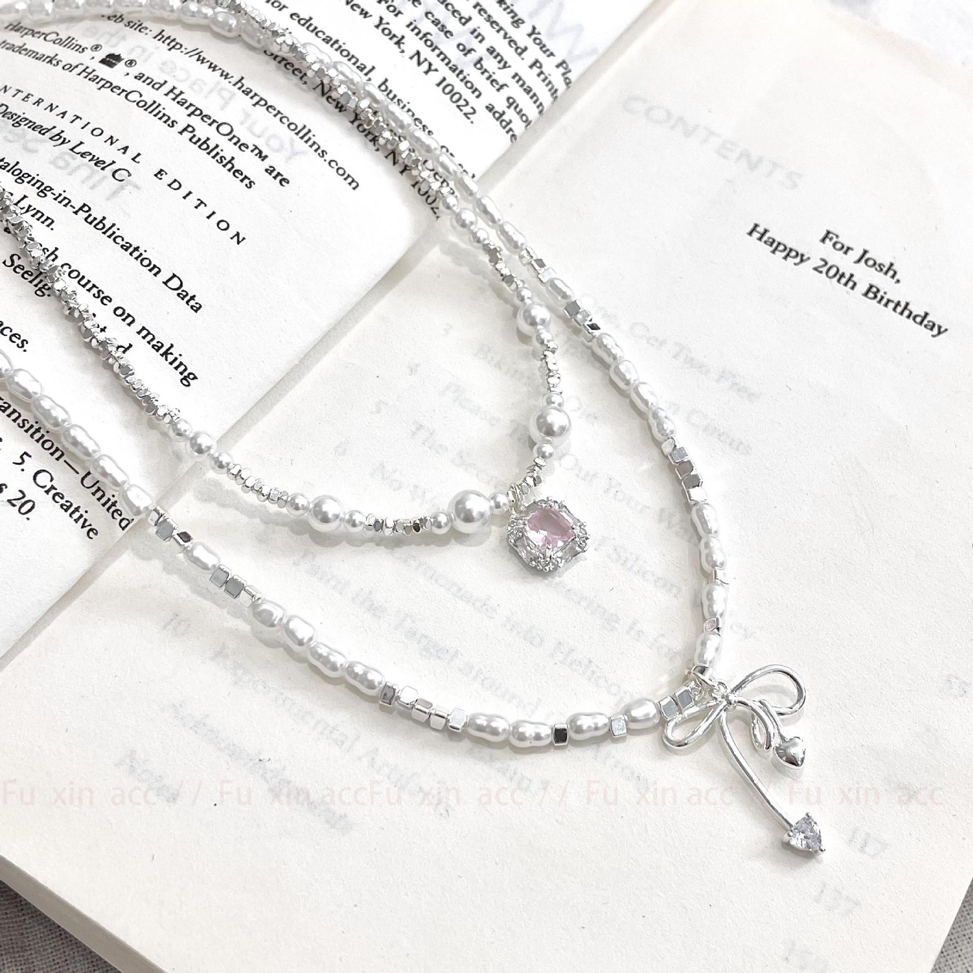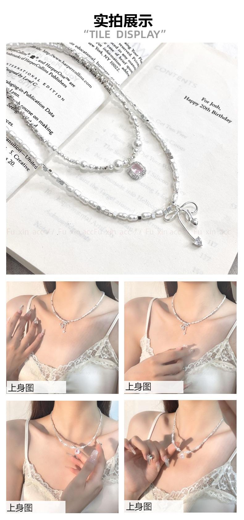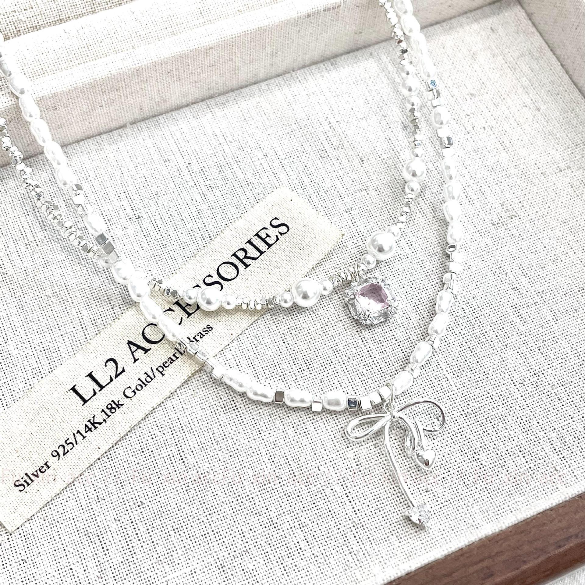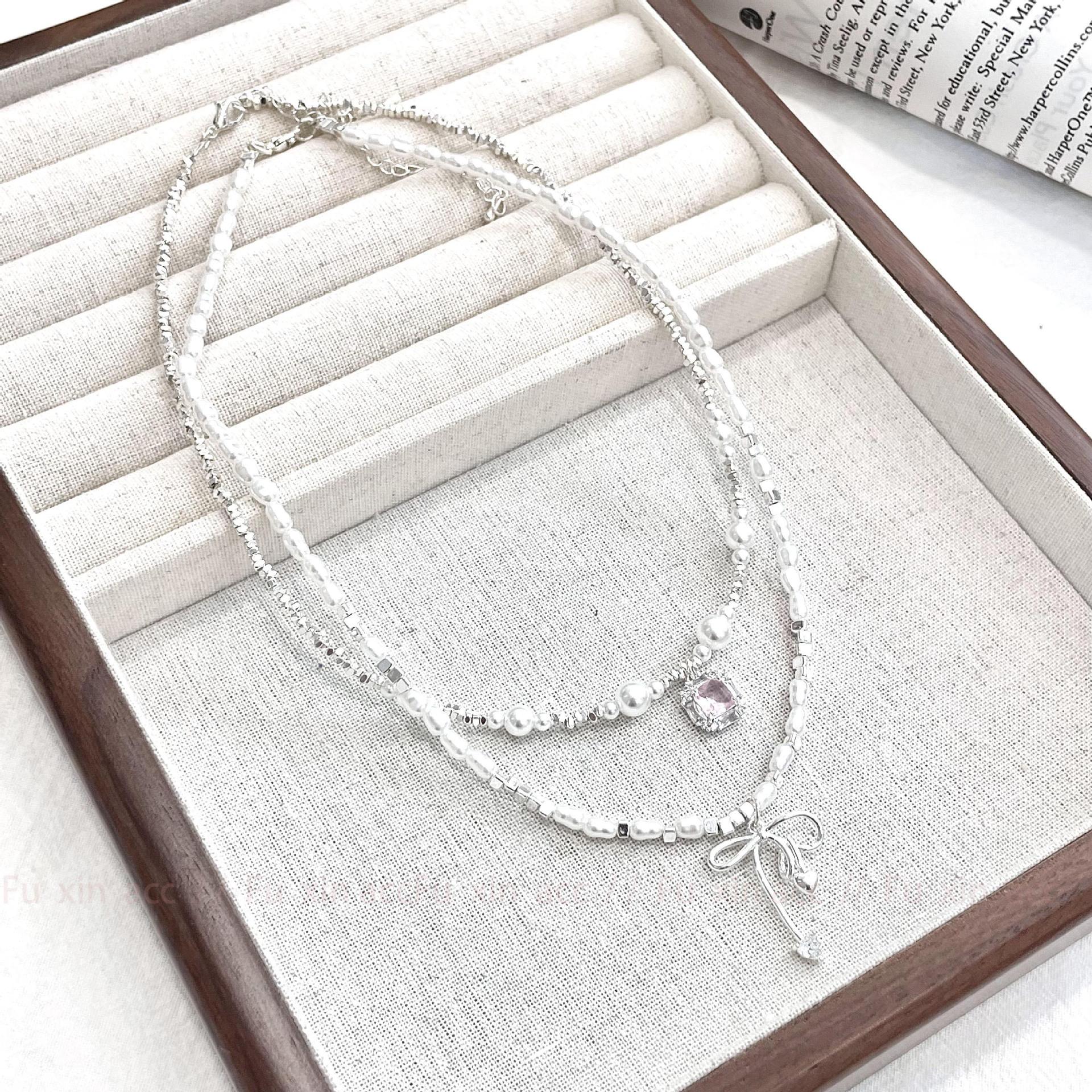 Verano fresco y dulce industria pesada plata rota perla lazo collar para mujer diseño simple de lujo ligero exquisita cadena para clavícula