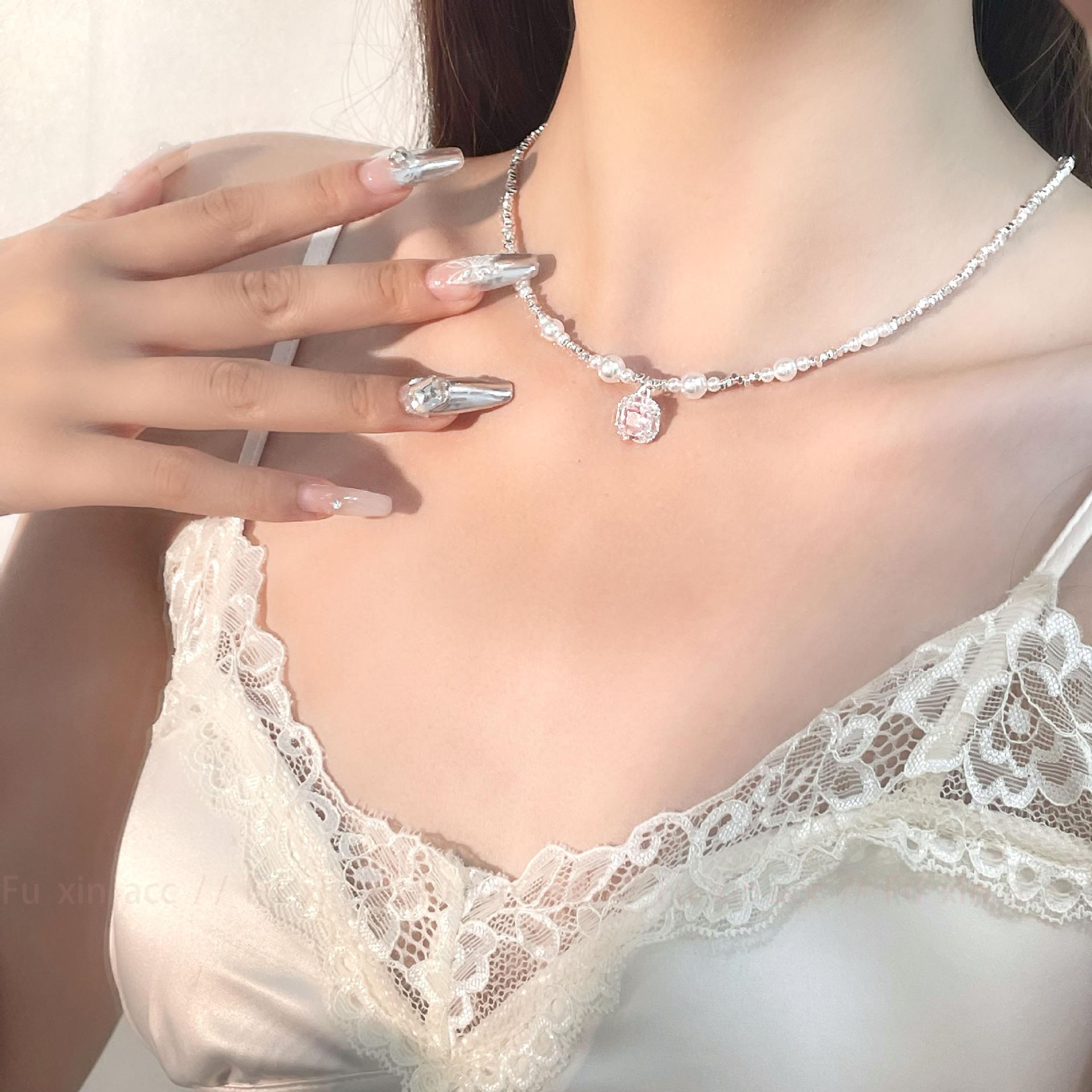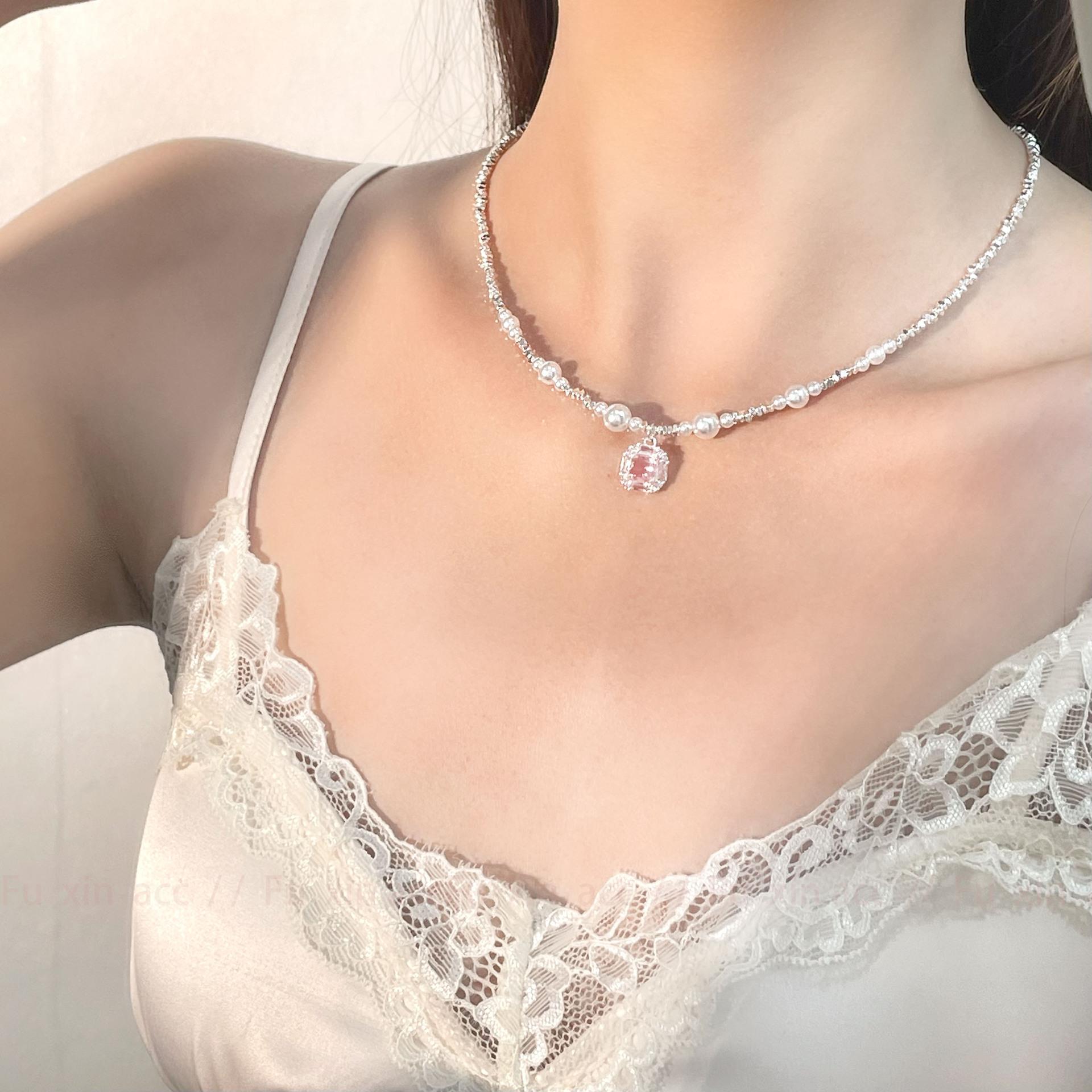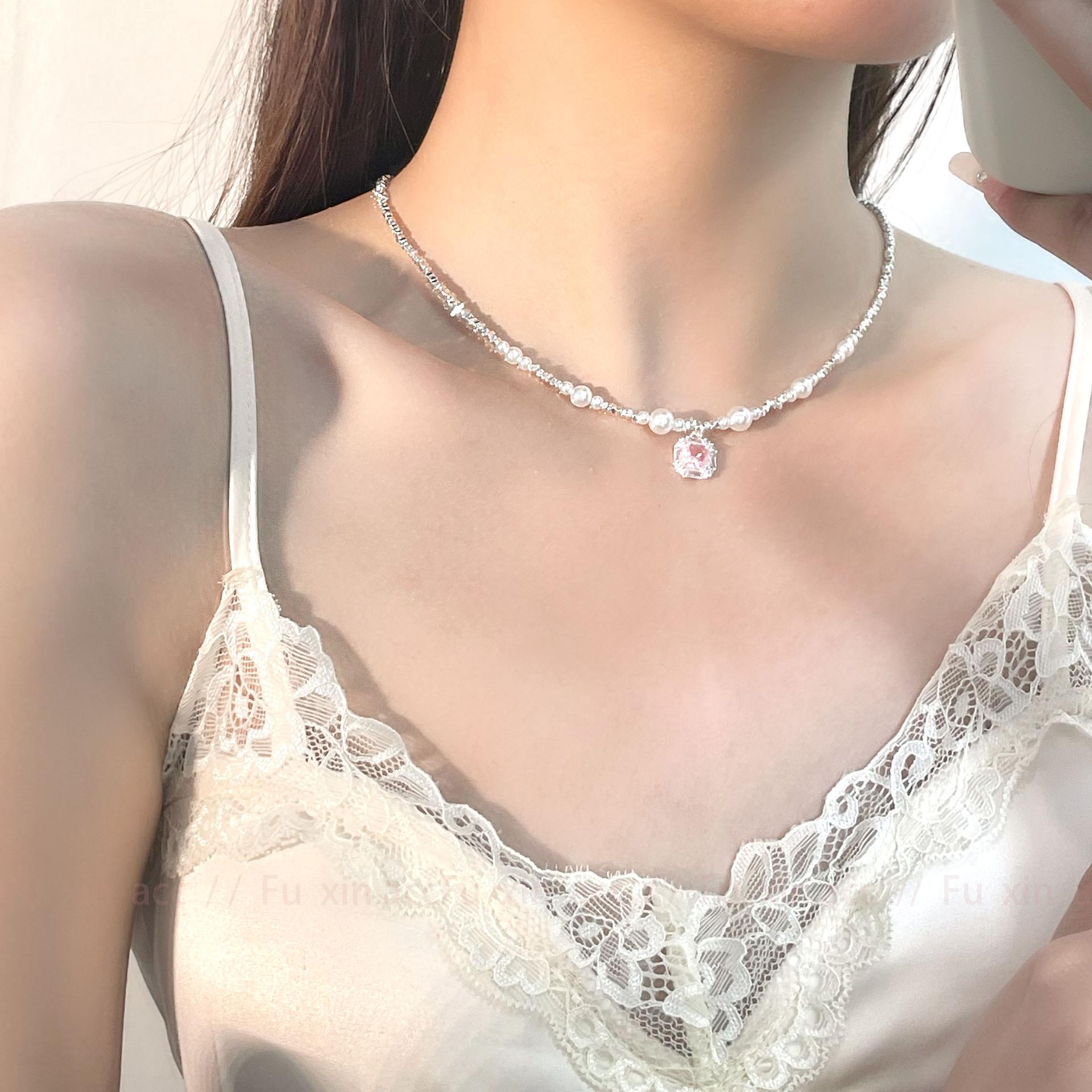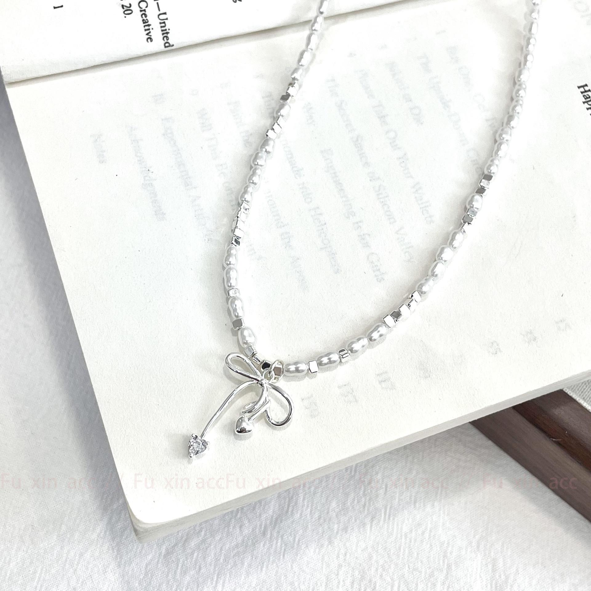 Verano fresco y dulce industria pesada plata rota perla lazo collar para mujer diseño simple de lujo ligero exquisita cadena para clavícula