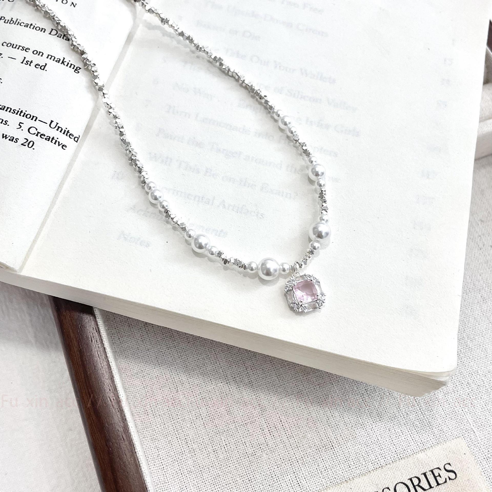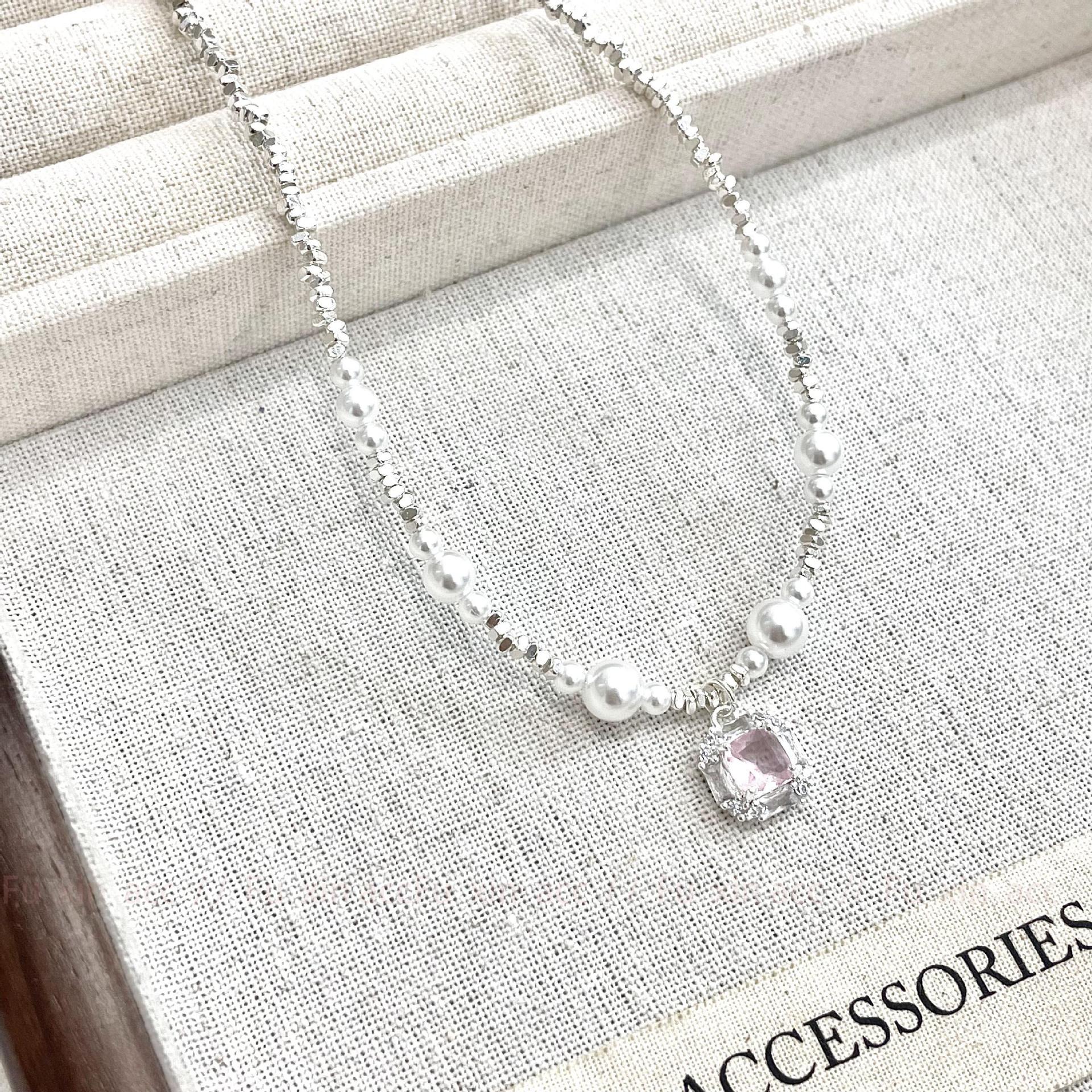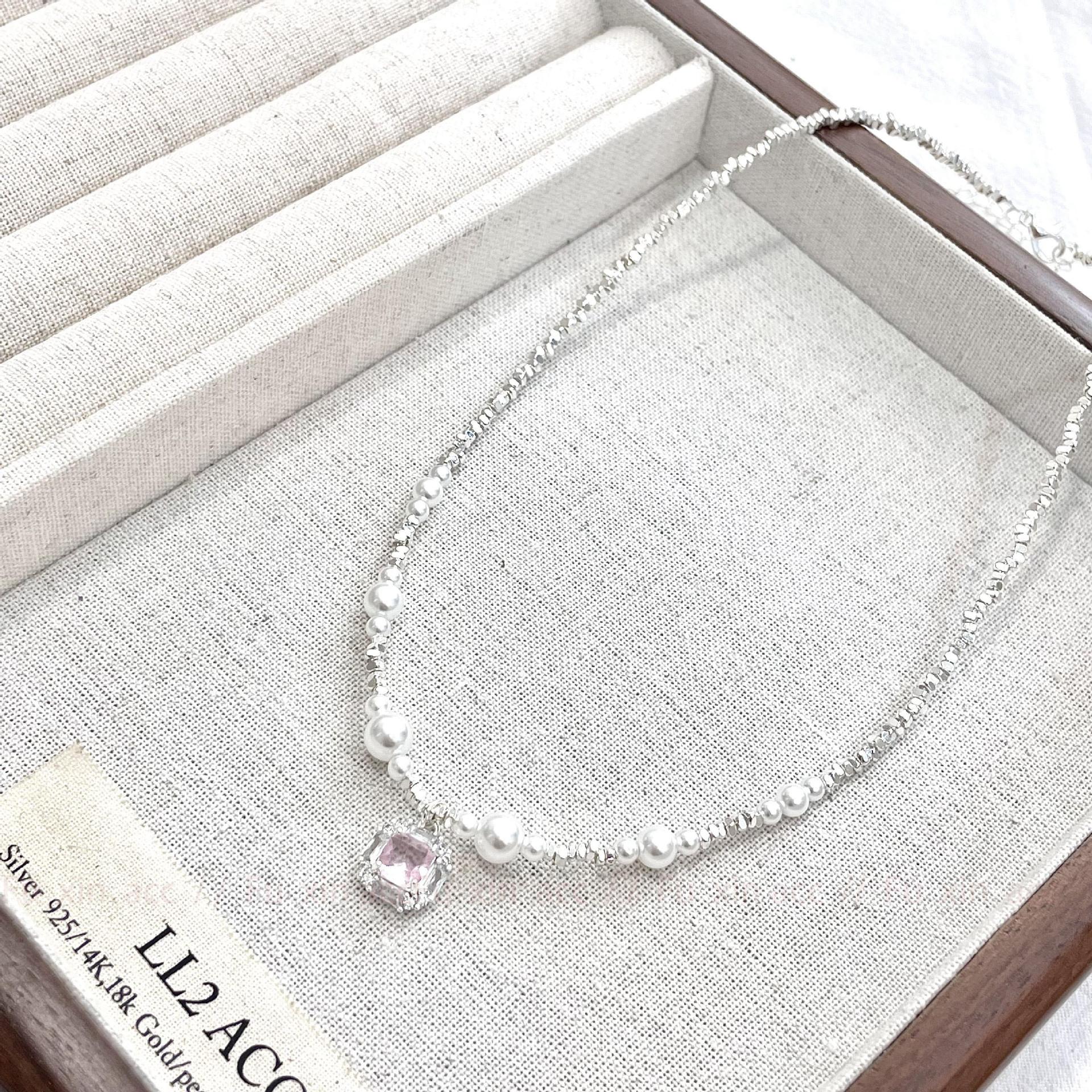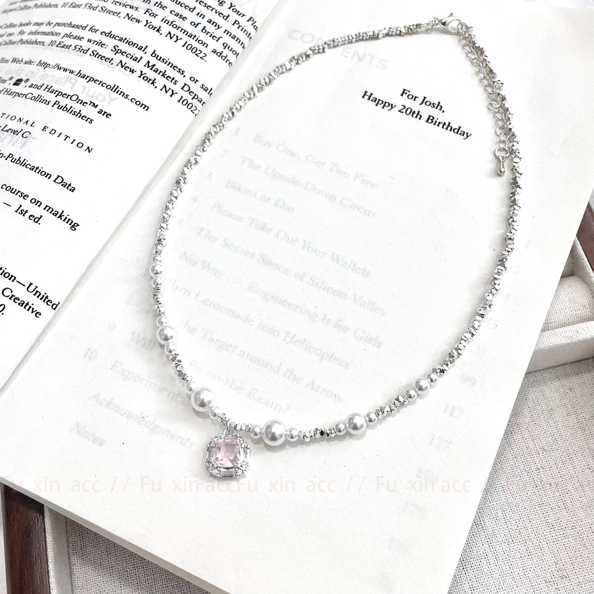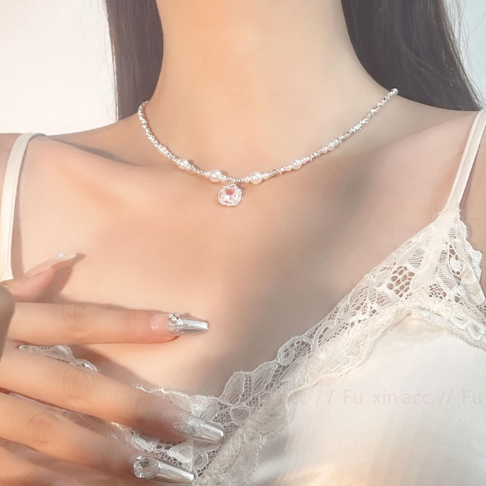Verano fresco y dulce industria pesada plata rota perla lazo collar para mujer diseño simple de lujo ligero exquisita cadena para clavícula