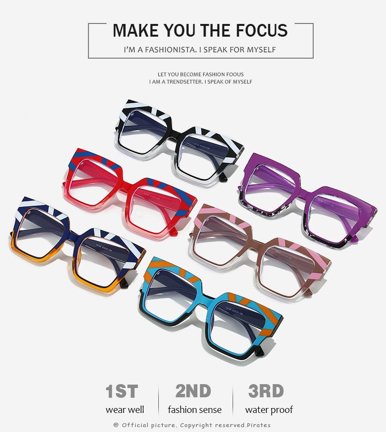 Nuevo color de personalidad a juego montura cuadrada grande montura de lentes anti-luz azul tendencia de moda ins espejo plano liso para la calle
