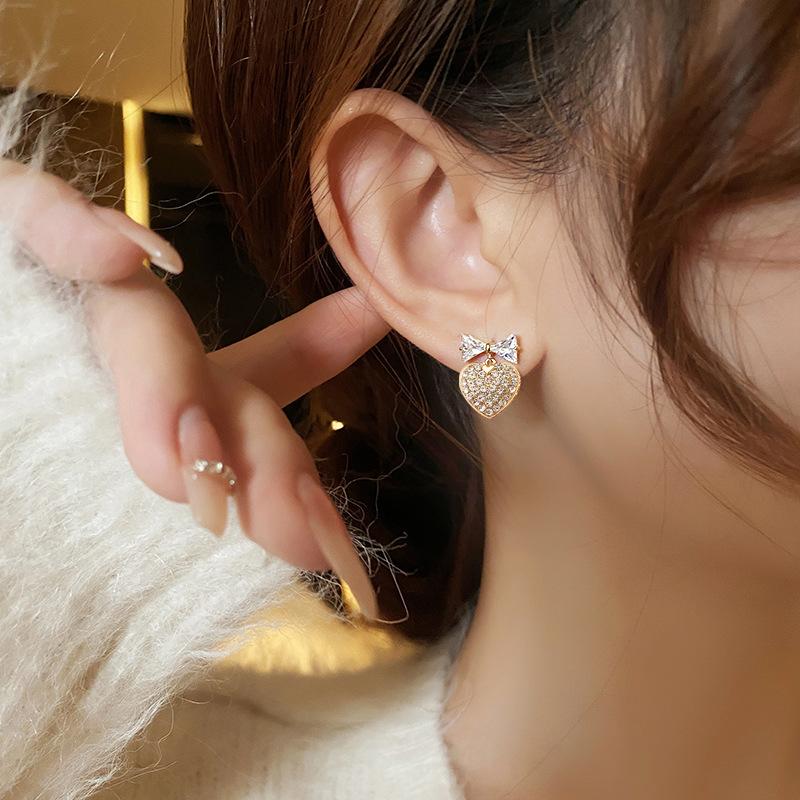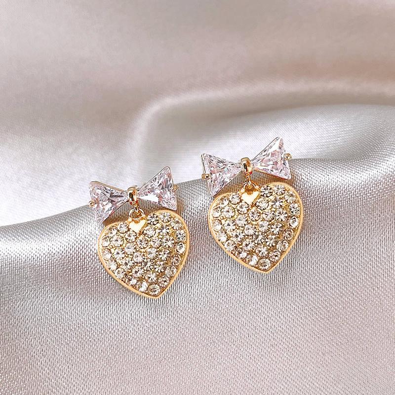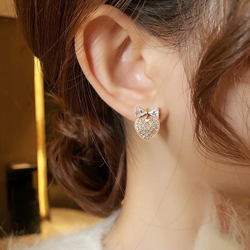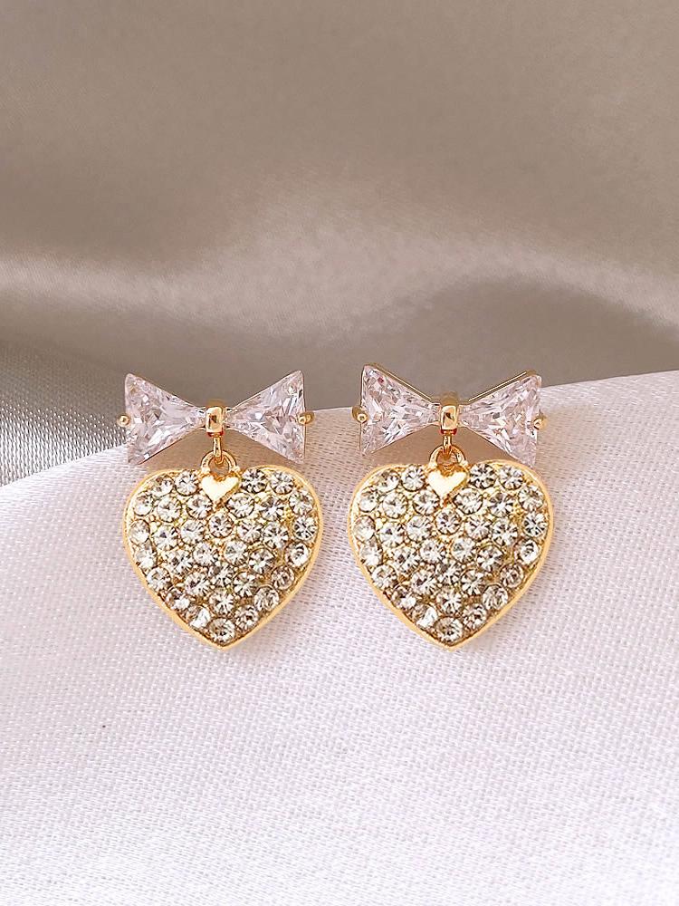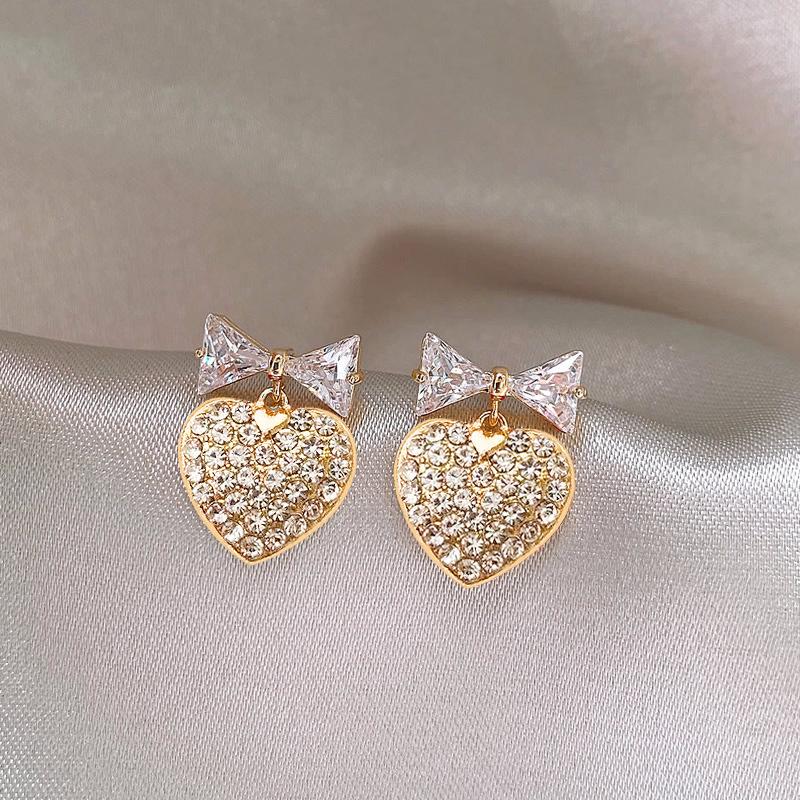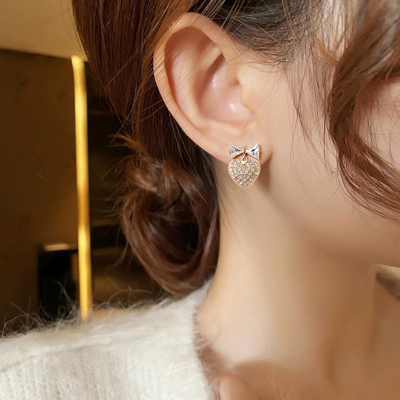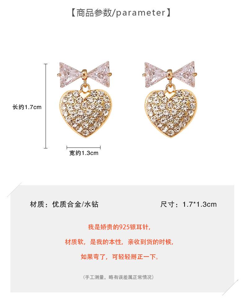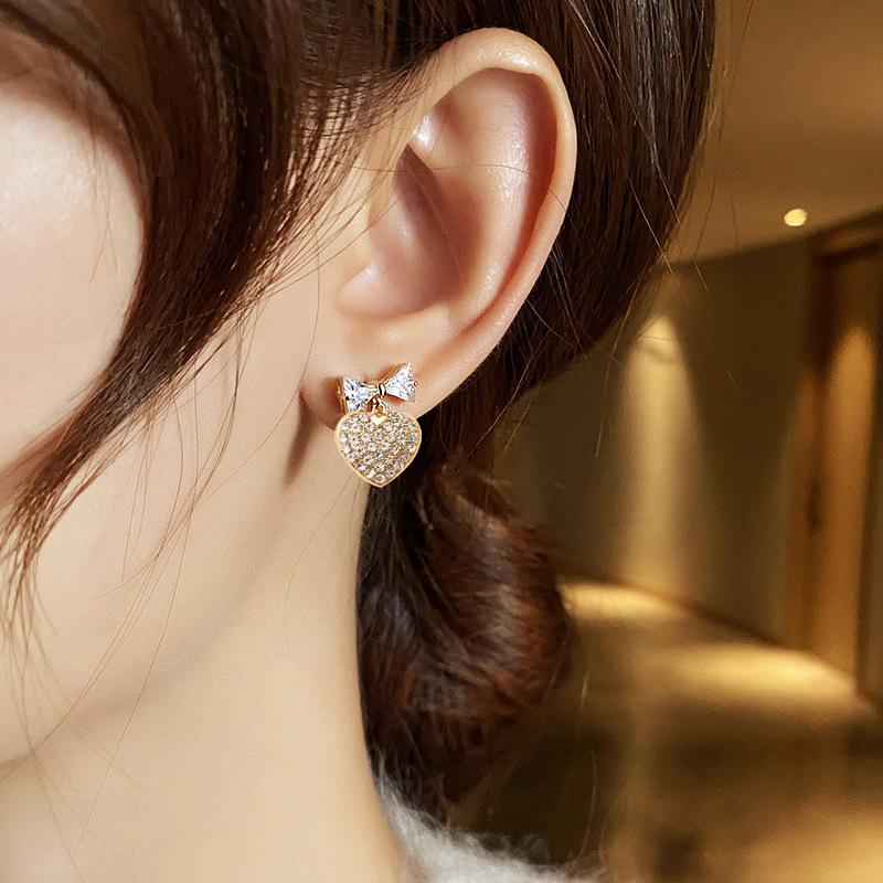 Pendientes de lazo con diseño de nicho de aguja de plata s925 para mujer, pendientes de corazón con diamantes, pendientes de lujo ligeros con nicho avanzado