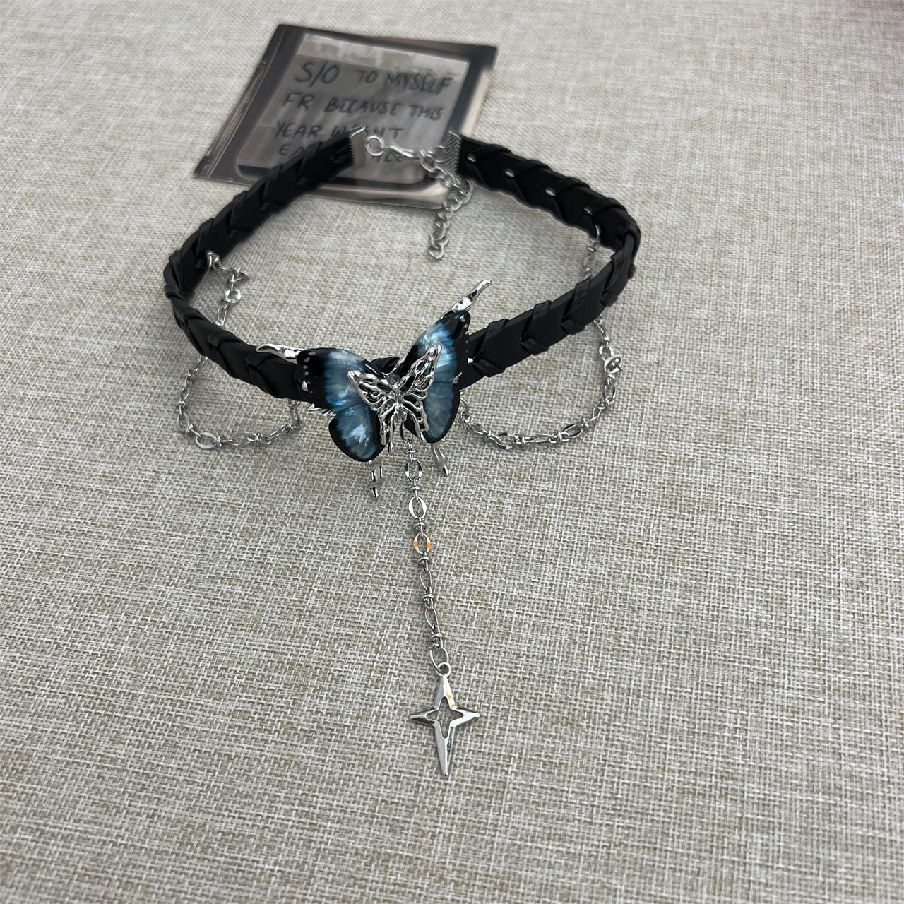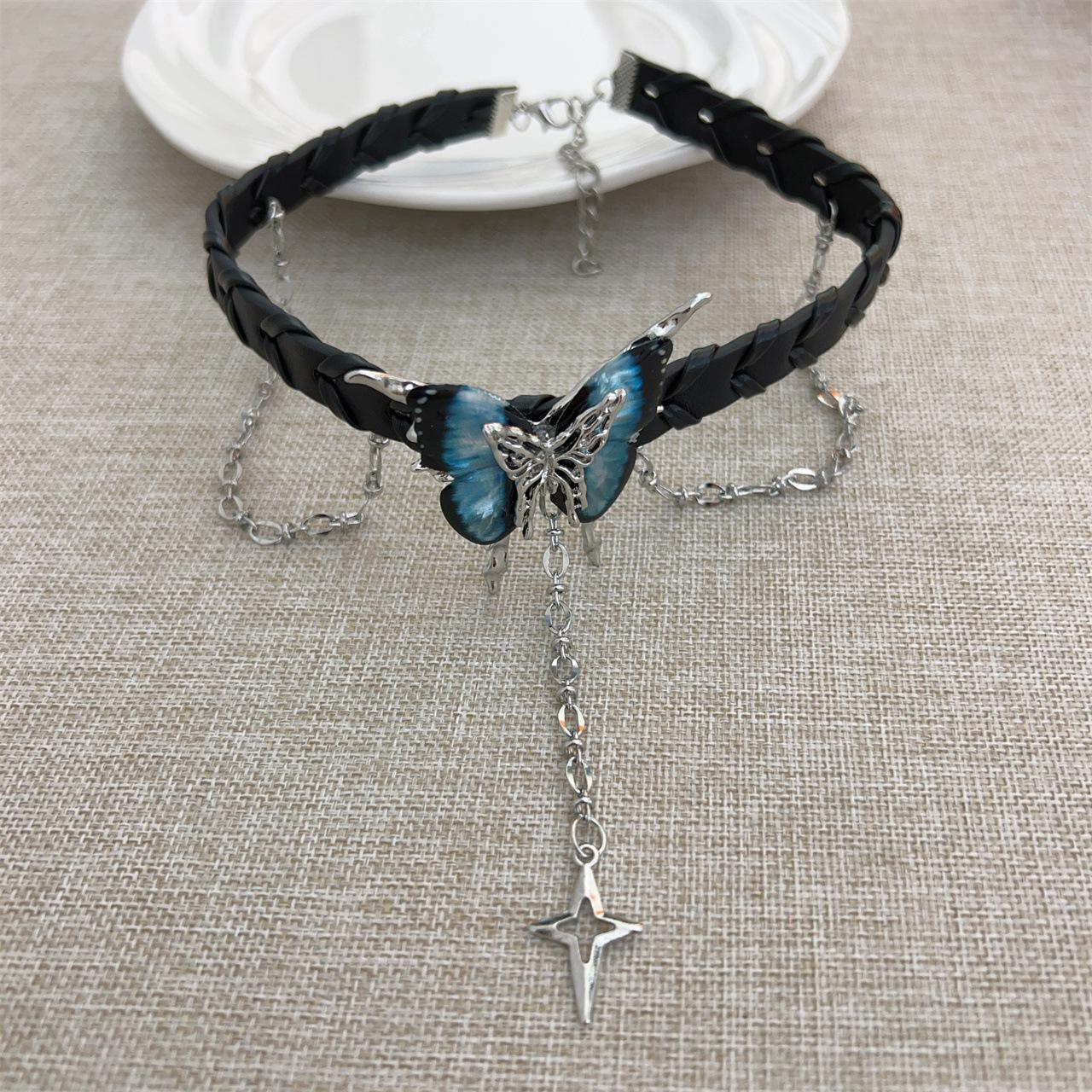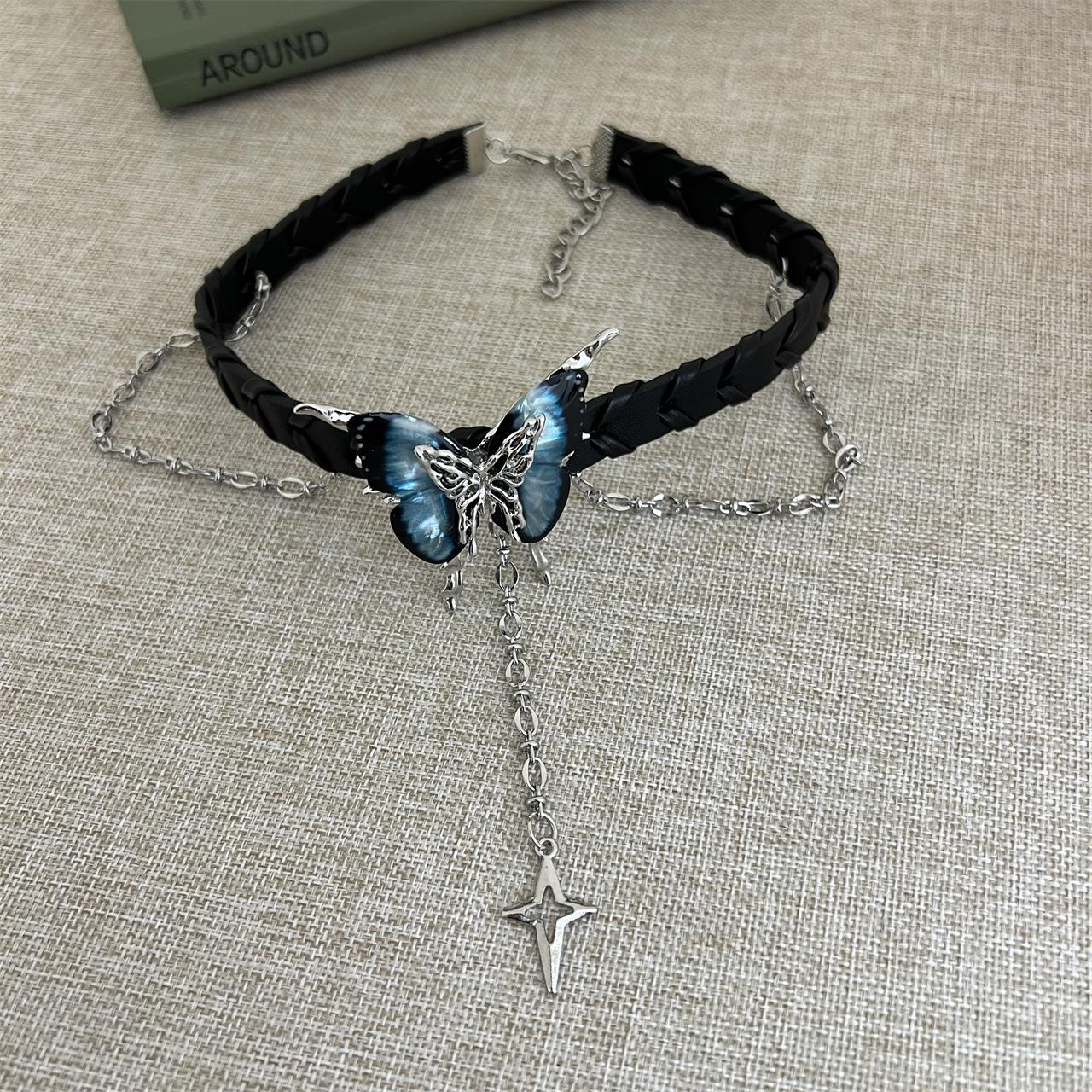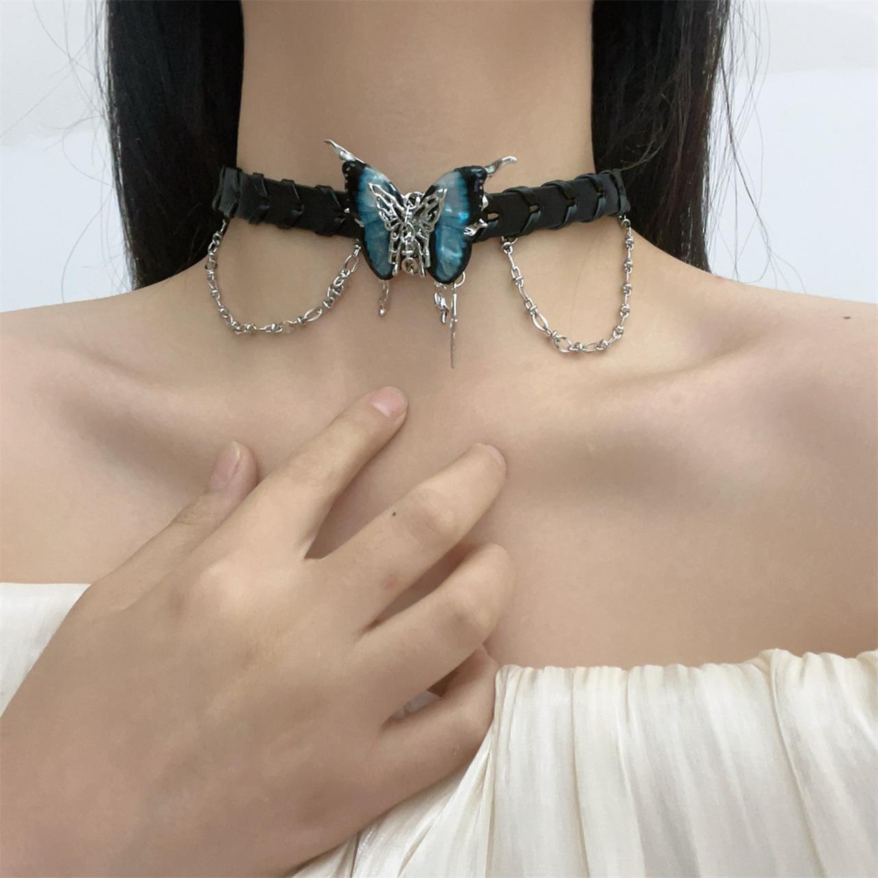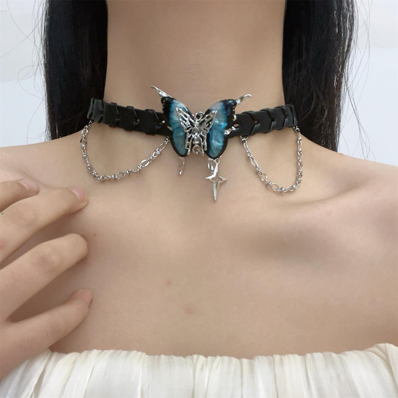 Compra Collar con borlas de mariposa negra de Spice Girl, dulce y genial, para mujer, accesorios para el cuello, collar con cadena alta para clavícula. al por mayor en Joom.pro