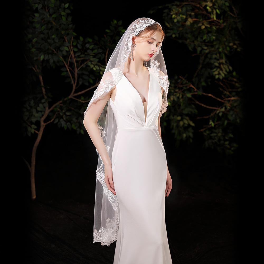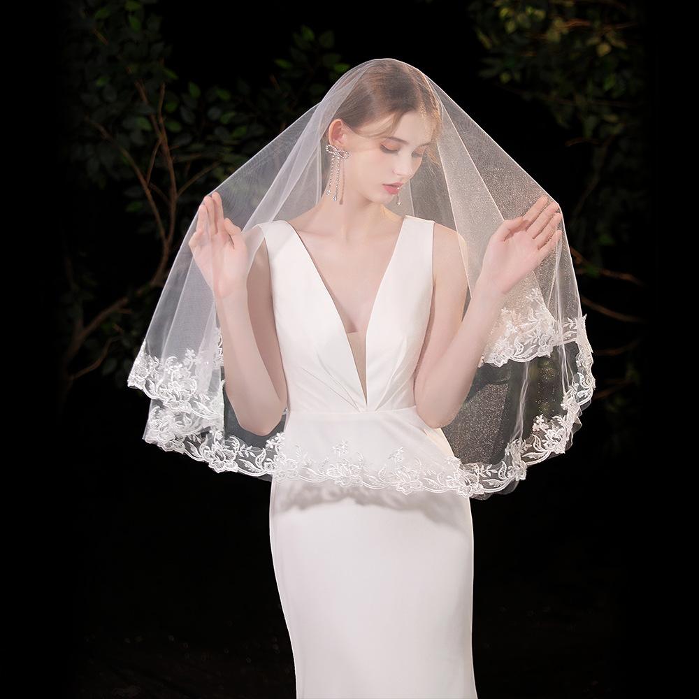 Velo de novia francés de alta gama, de una sola capa, estilo corte retro, para fotografía de bodas, estudio fotográfico, accesorios para el cabello.