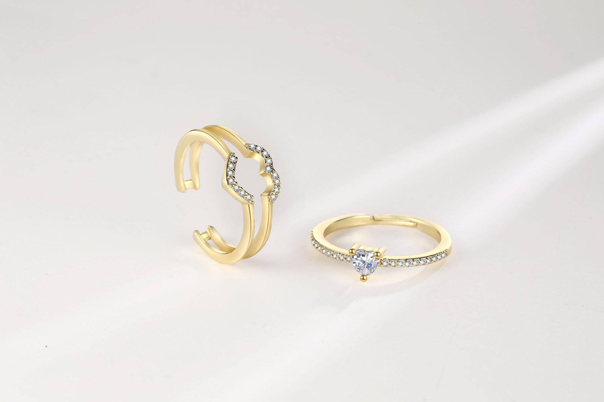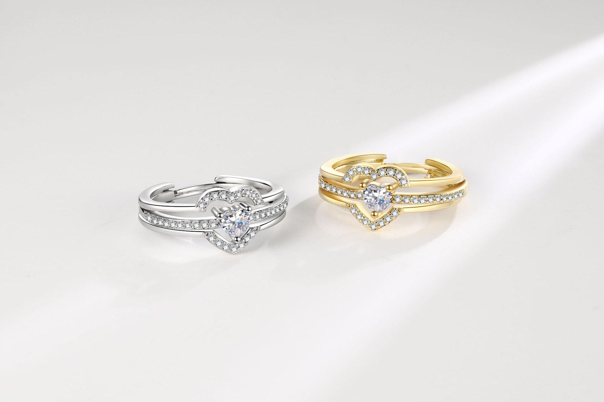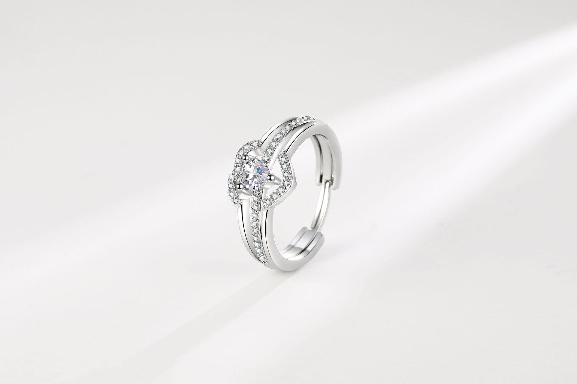 Anillo nuevo en forma de corazón para mujer, juego de anillos, anillo de diamante dulce súper brillante, temperamento de nicho, anillo de moda abierto, accesorios al por mayor