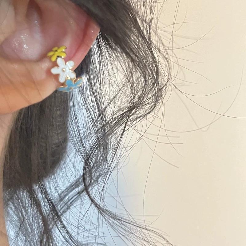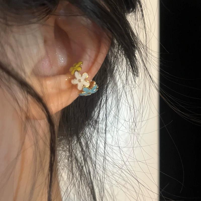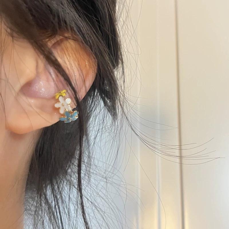 Pendientes de nicho con forma de flor pequeña y esmaltado de color de alta calidad, con clip para oreja Mori, para mujer, sin agujeros.