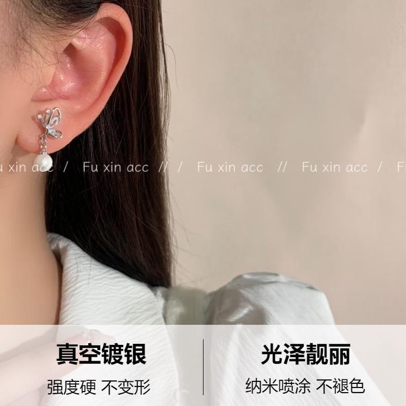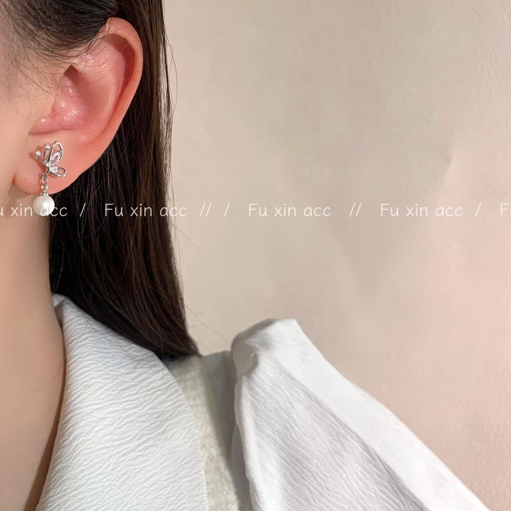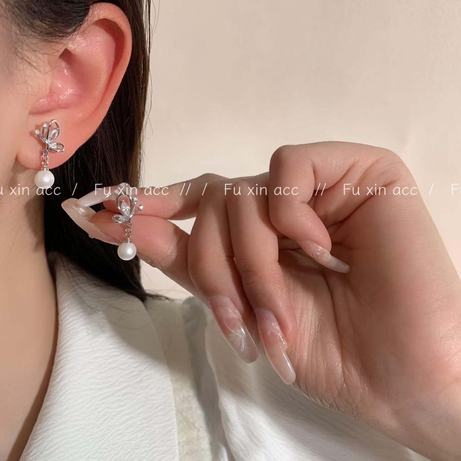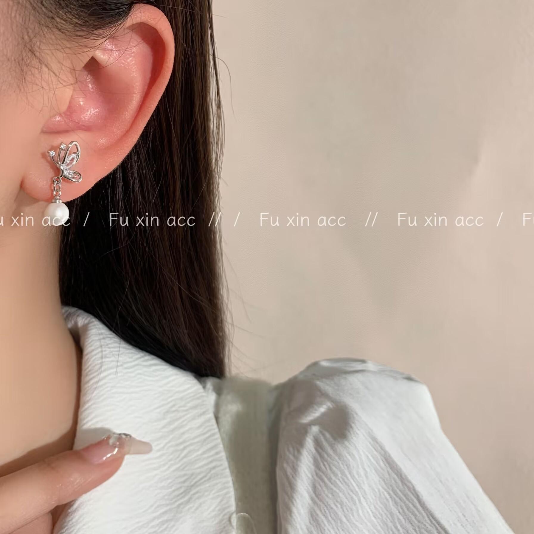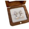 Pendientes sencillos de circonita con lazo pequeño y perla para mujer, ligeros, de lujo, a la moda, combinables, estilo frío, de nicho.