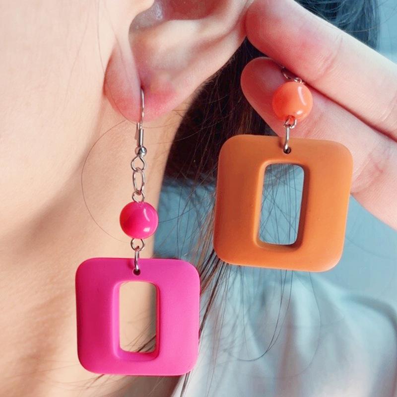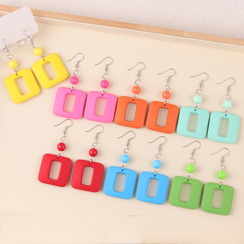Pendientes de verano con diseño de dopamina, cuadrados huecos de acrílico, estilo retro, sencillos y festivos, accesorios para las orejas para mujer.