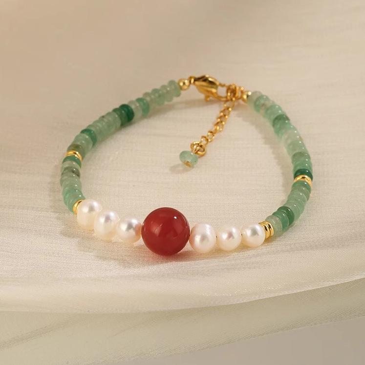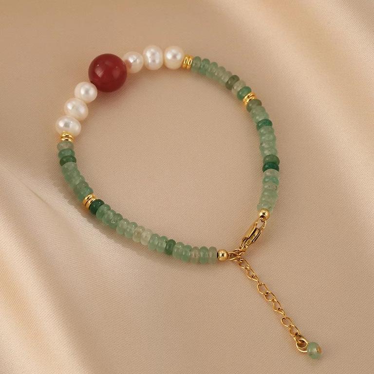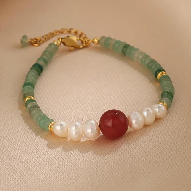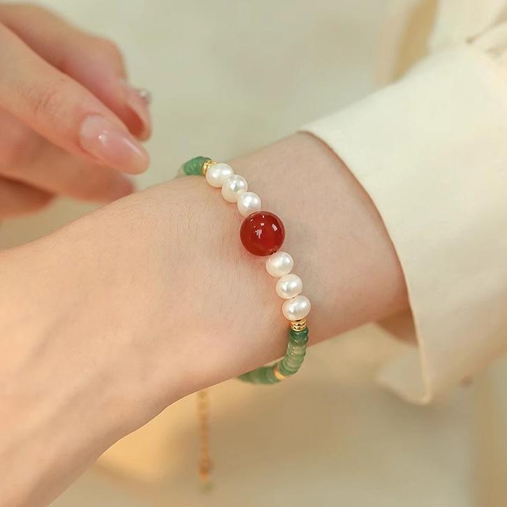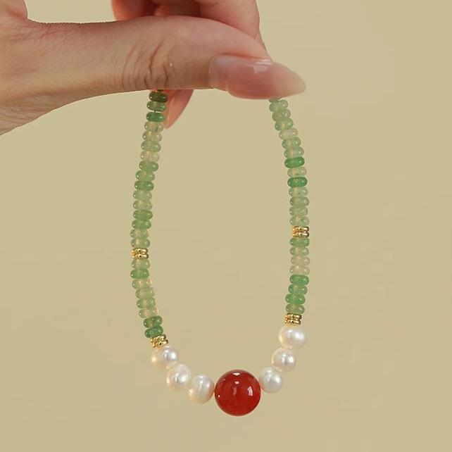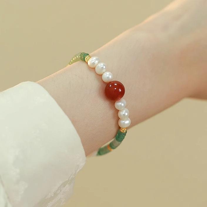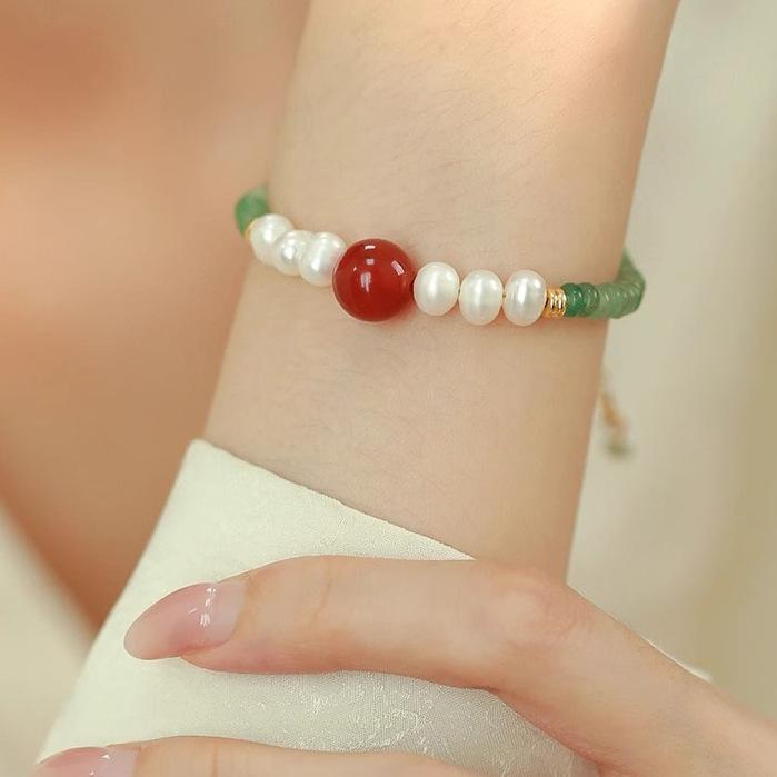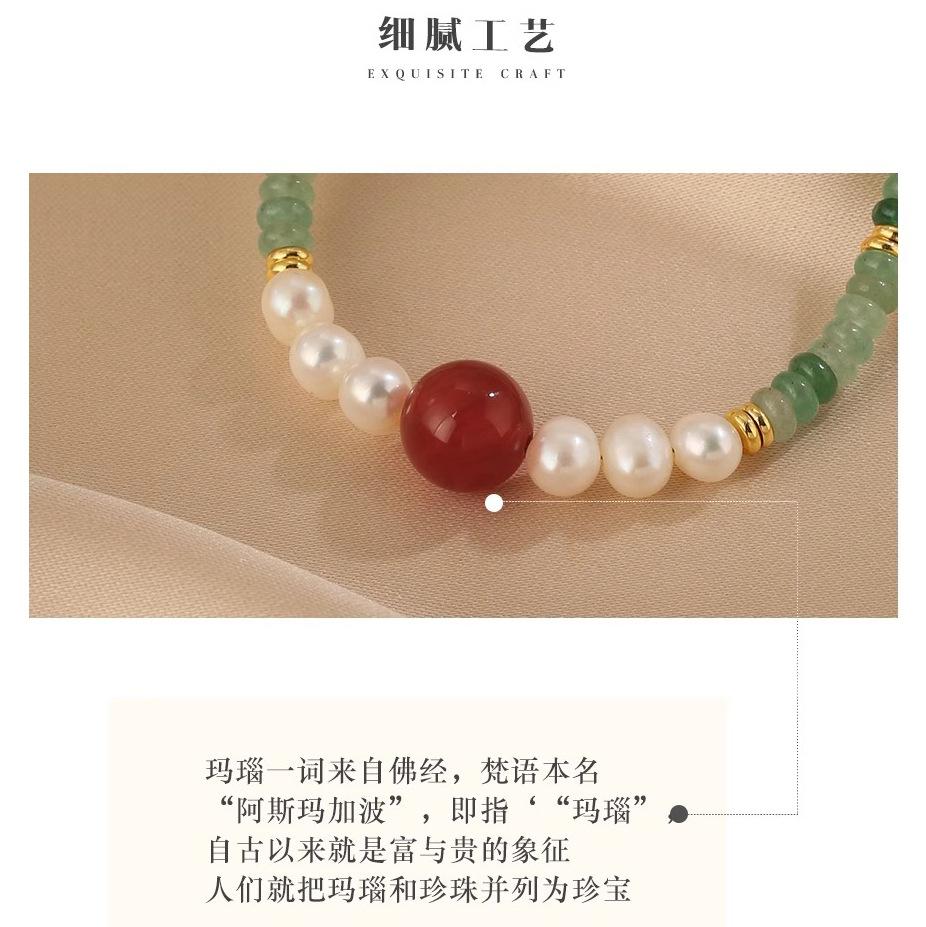 Collar de cuentas de Jade Dongling y Perlas de Agua Dulce para Mujer, Diseño de Ágata Roja, Sentido del Diseño, Nuevo Estilo Chino, Estilo Nacional, Cadena Clavicular, Pulsera, Juego