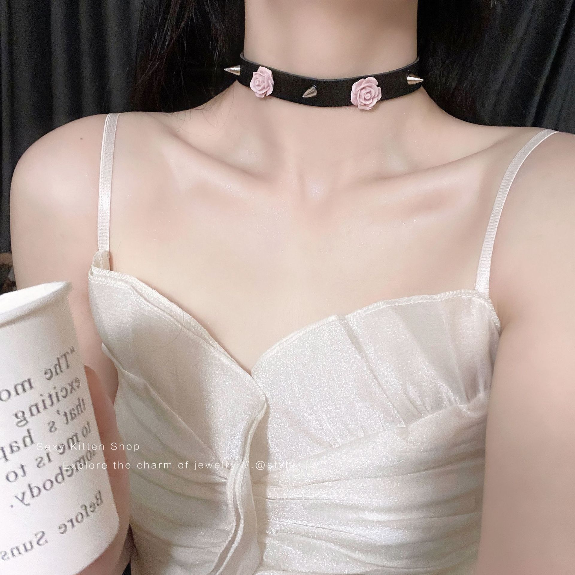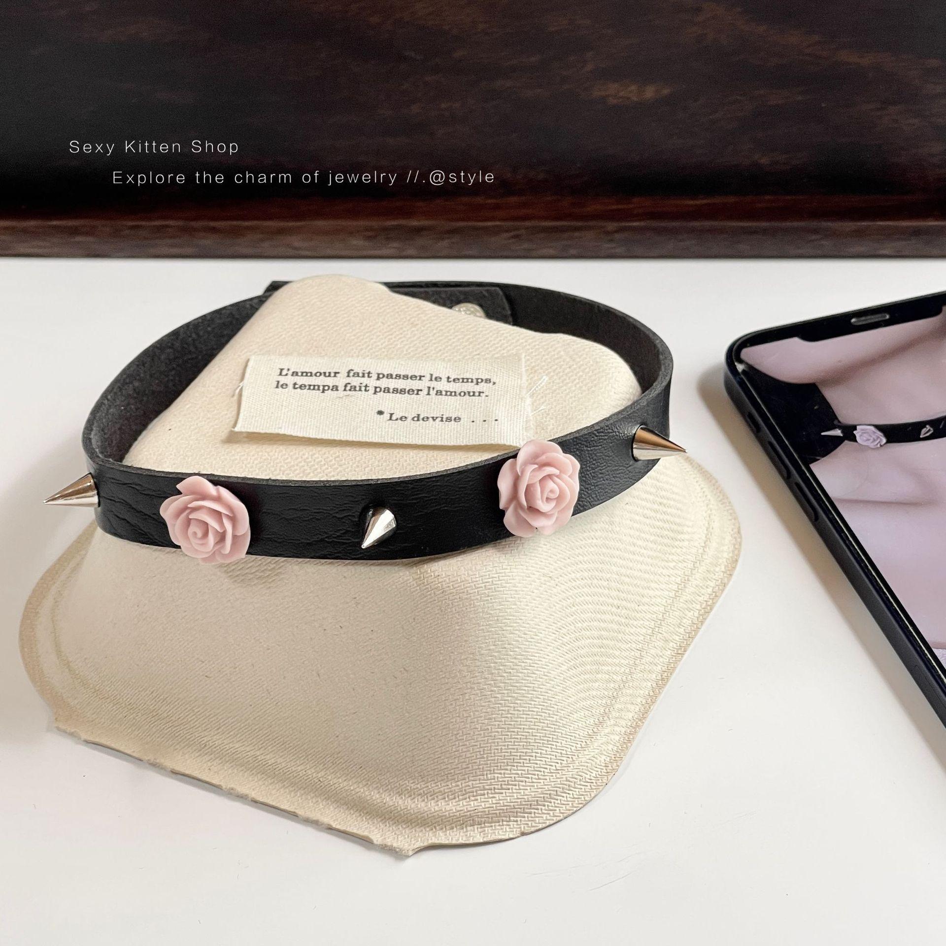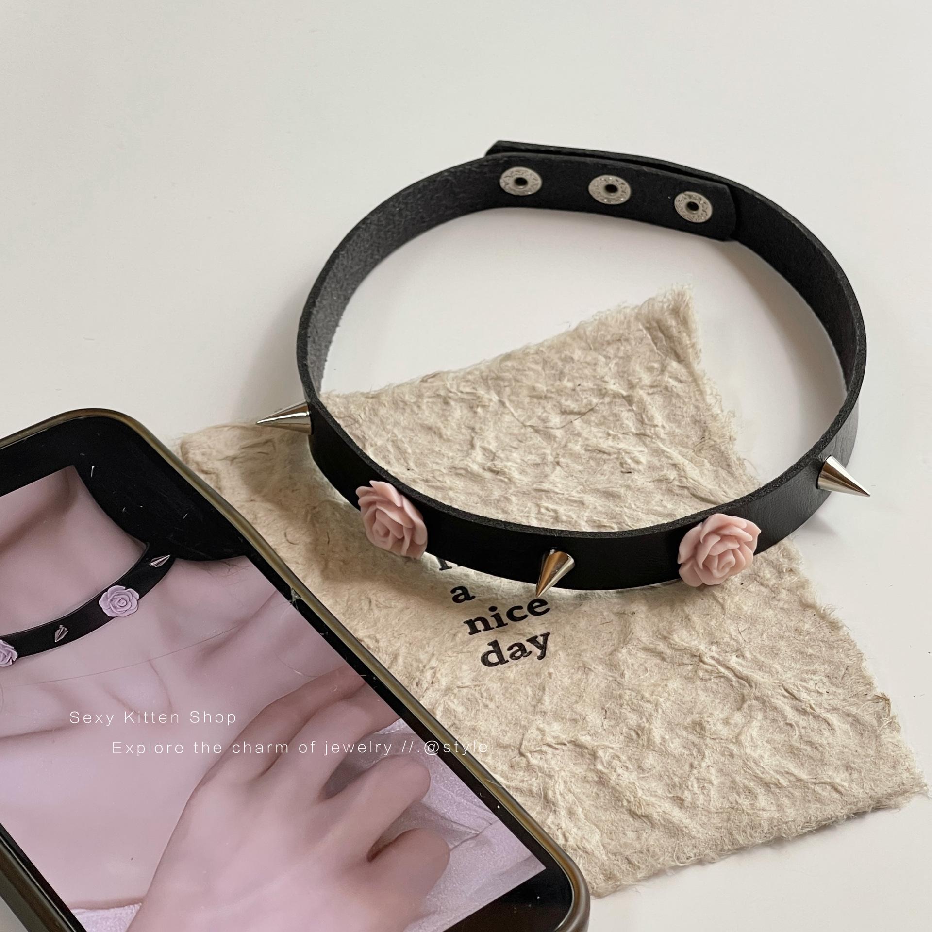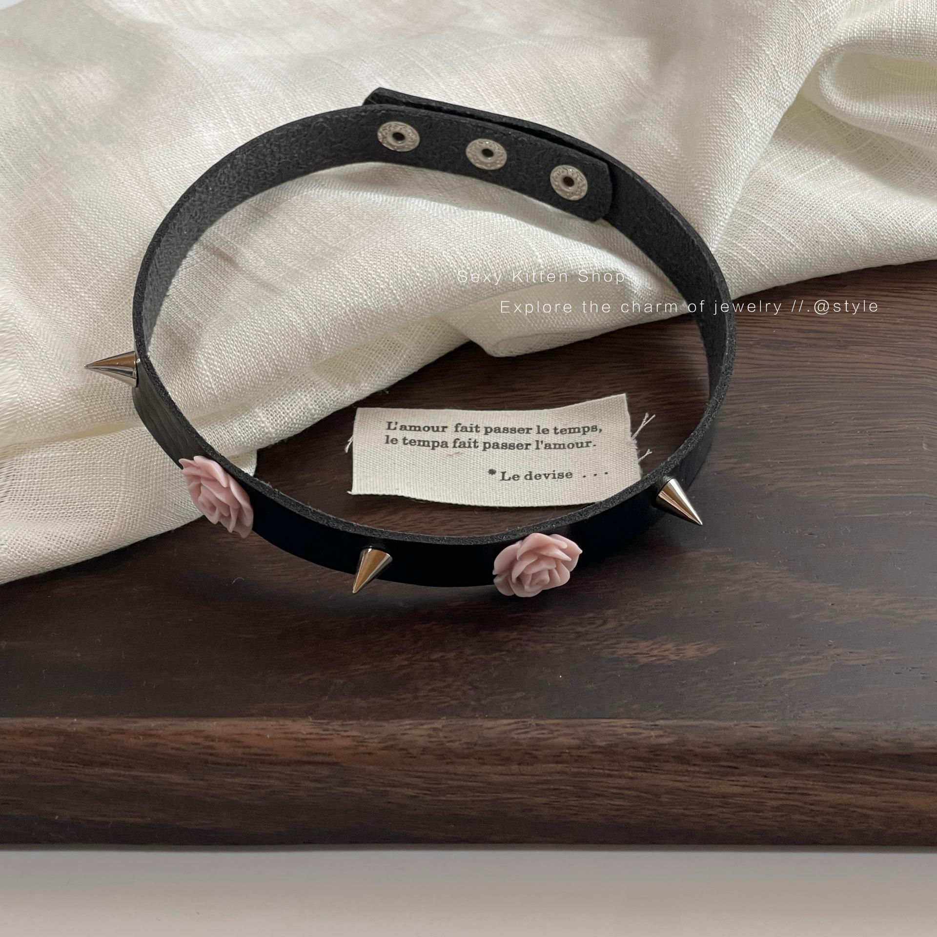 Gargantilla con remaches de rosa, estilo punk de las Spice Girls del Milenio, collar de cuero con personalidad, accesorios de alta moda