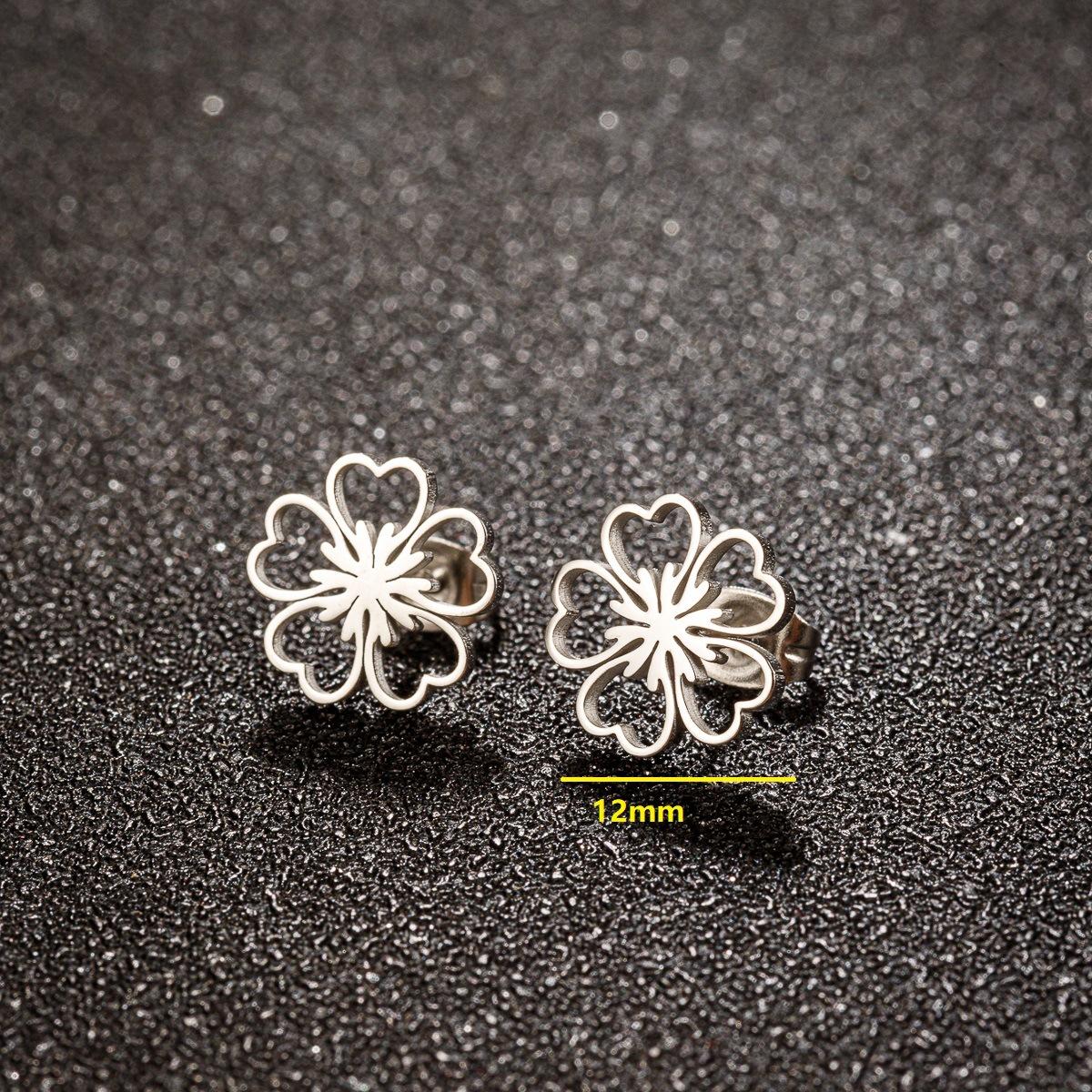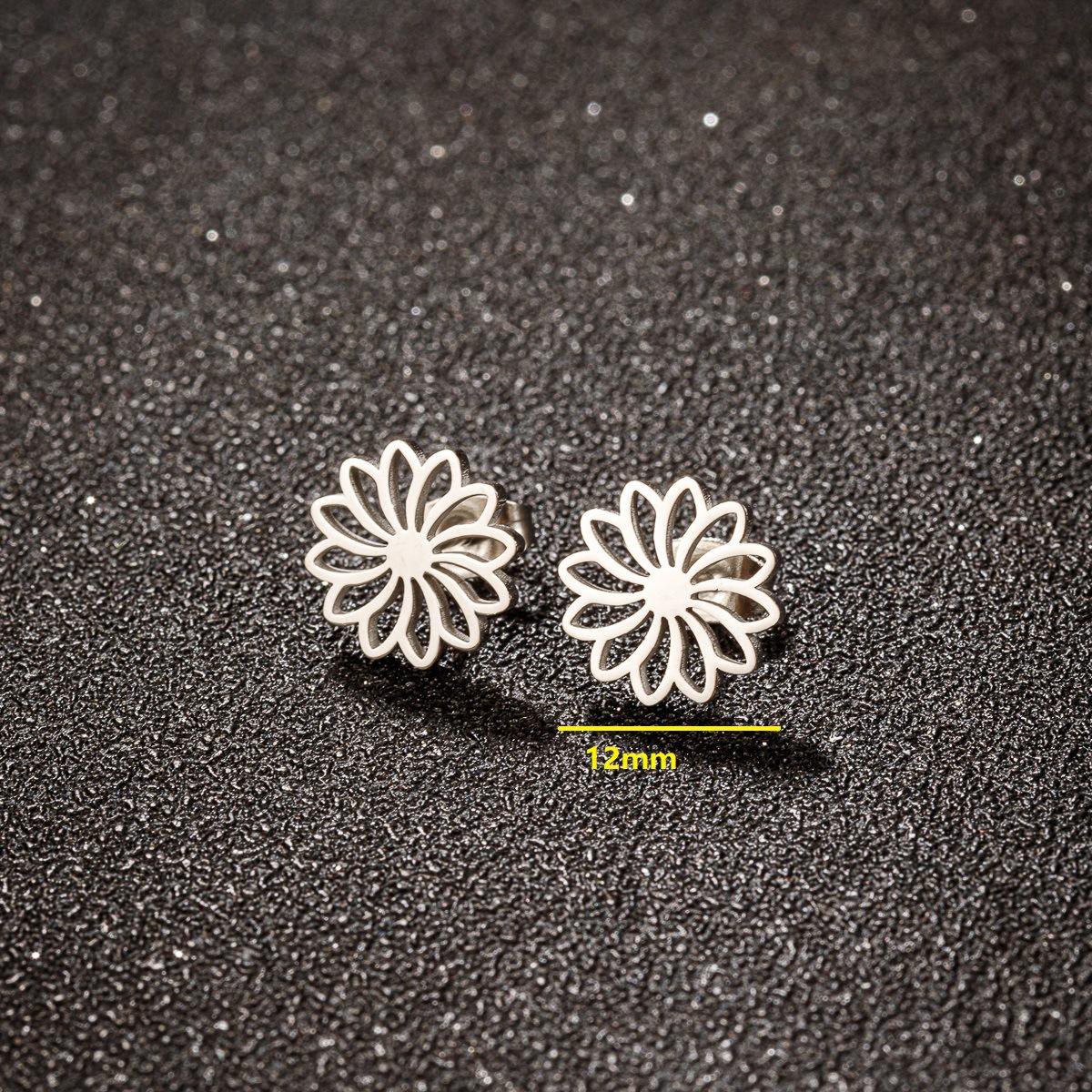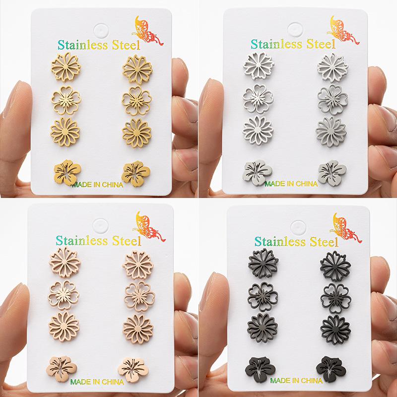 Nuevos pendientes transfronterizos de acero inoxidable con diseño de margaritas y flores, cuatro pares de pendientes de una tarjeta al por mayor