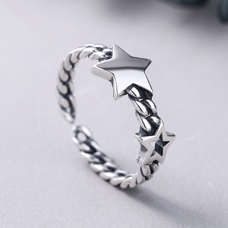 Compra Oferta explosiva Anillo de apertura estrella retro Puerta de Dandong Moda de mujer Tendencia personalizada Cuerda de cáñamo Estrella de cinco puntas Plata tailandesa Dedo índice al por mayor en Joom.pro