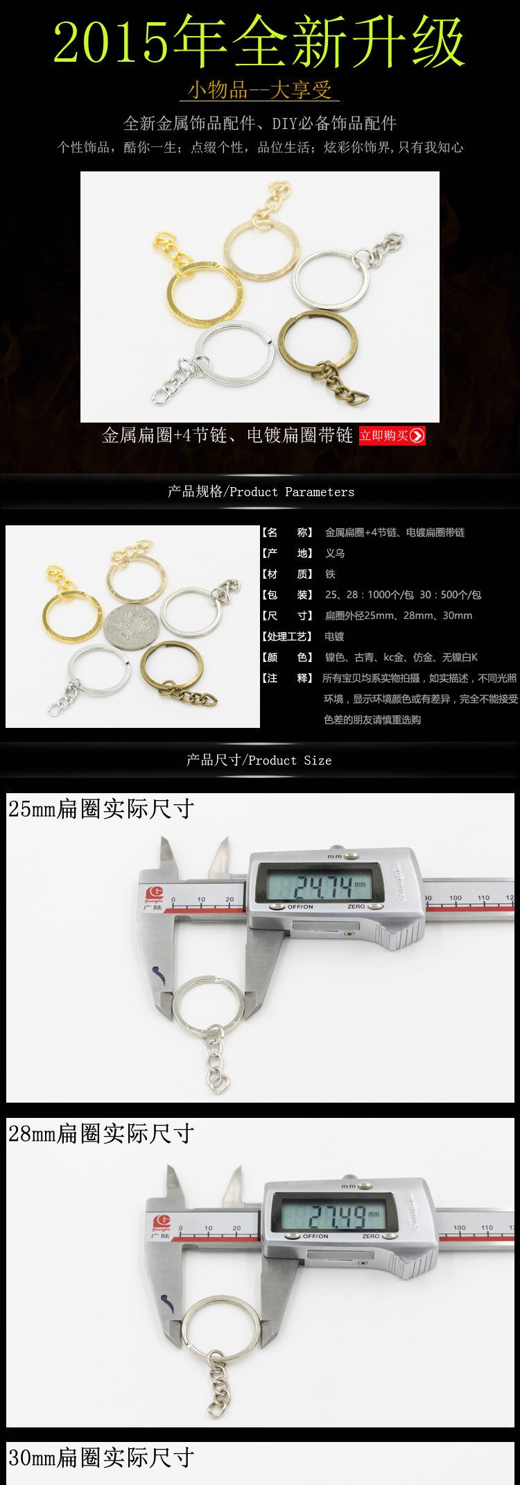 Llavero DIY llavero de metal con cadena anillo plano +4 cadena accesorios de abertura de prensado plano