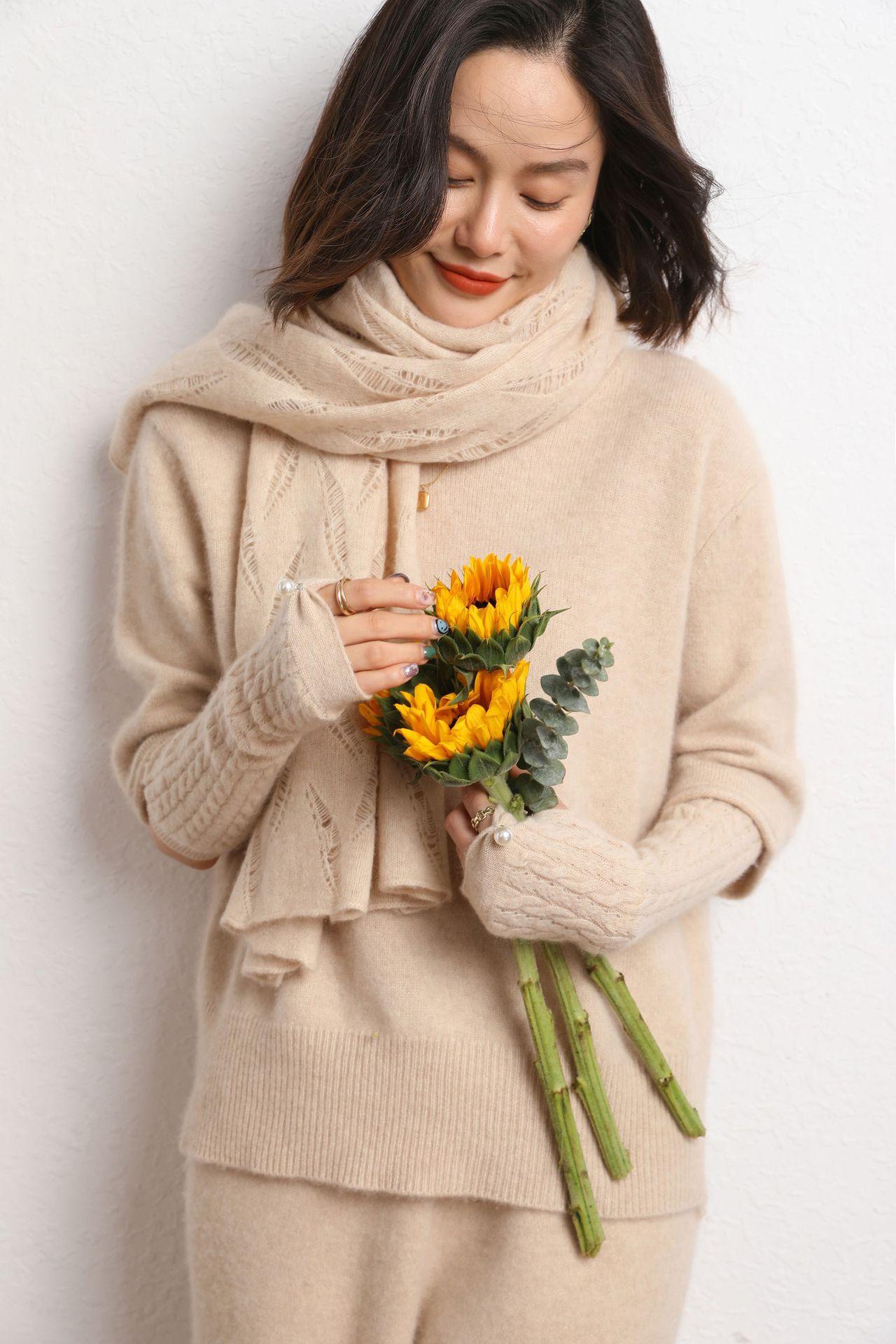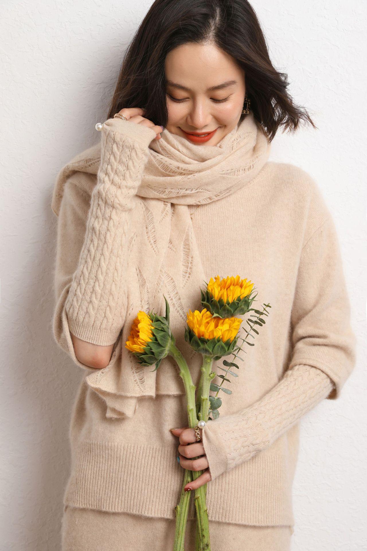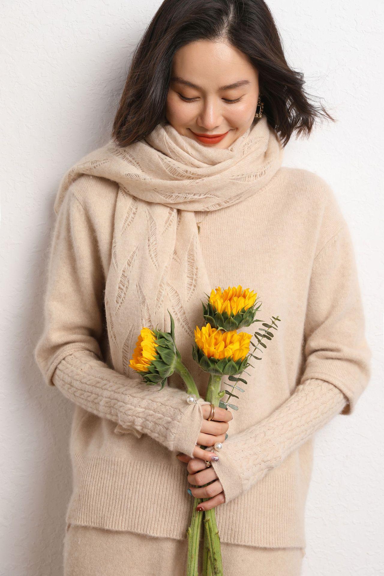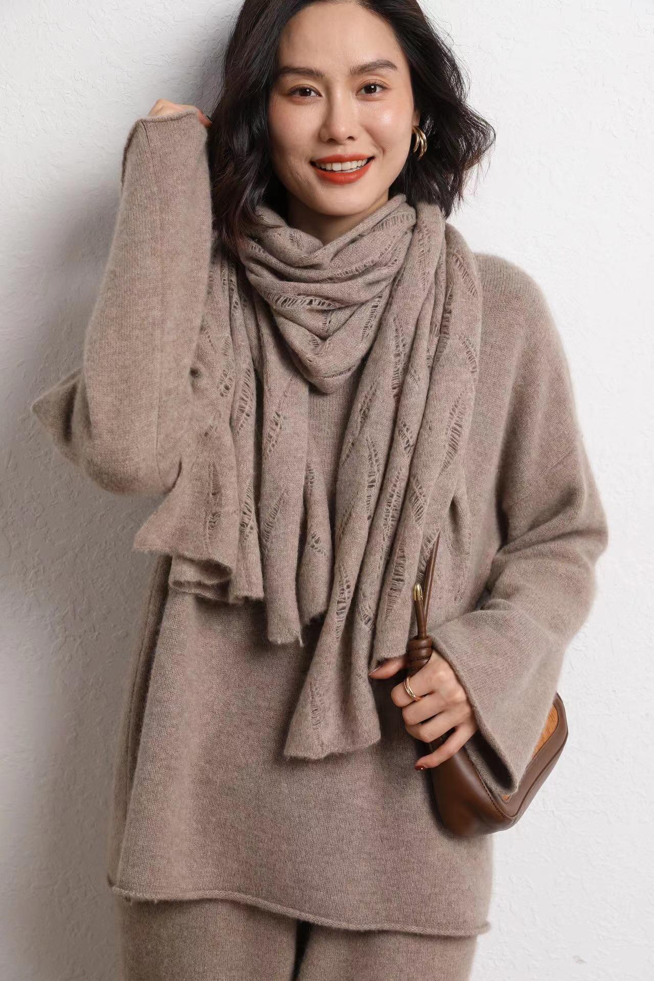 2024 Otoño e Invierno Nuevo Bufanda de Moda de Punto Suave y Cera de Cachemira Color Sólido Calada Gruesa Cálida Protección para el Cuello
