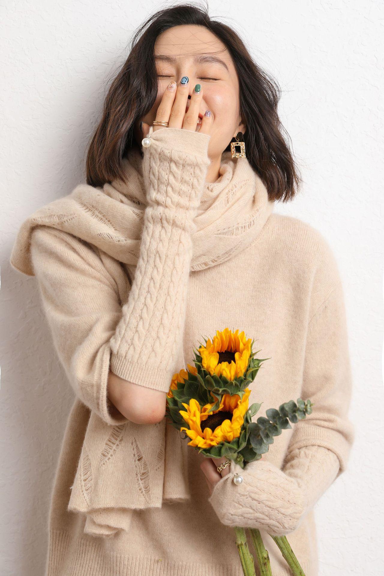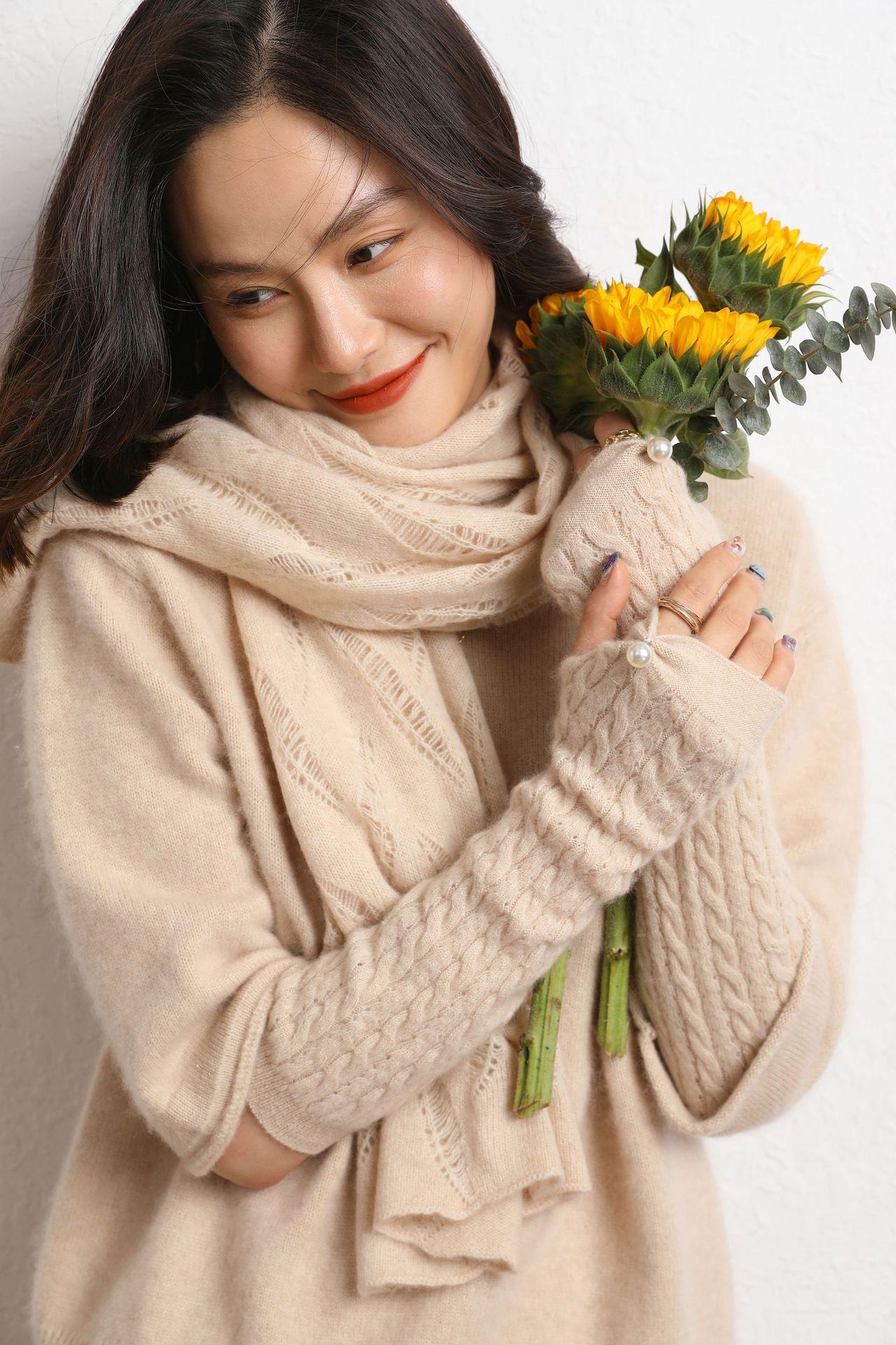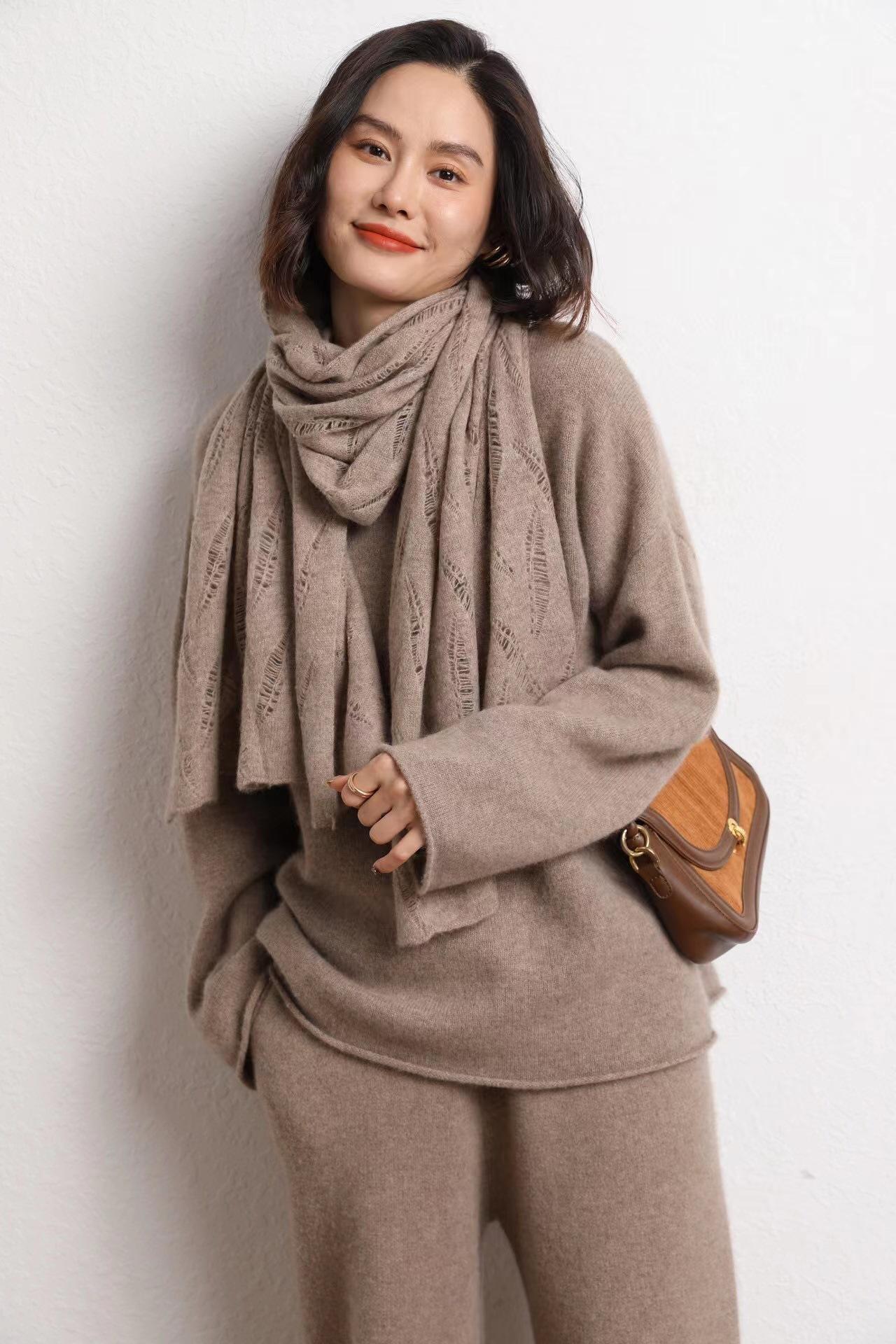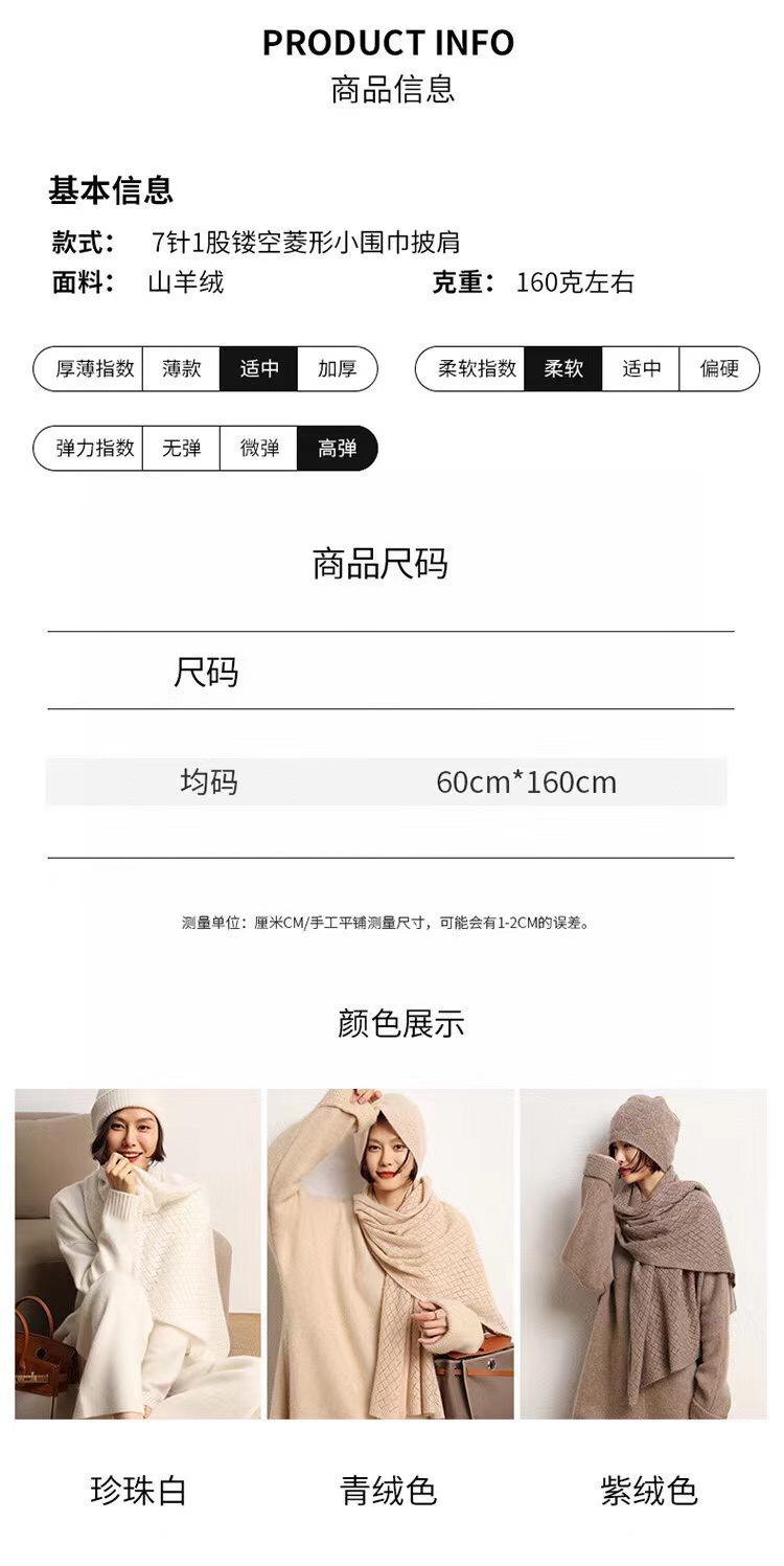 2024 Otoño e Invierno Nuevo Bufanda de Moda de Punto Suave y Cera de Cachemira Color Sólido Calada Gruesa Cálida Protección para el Cuello