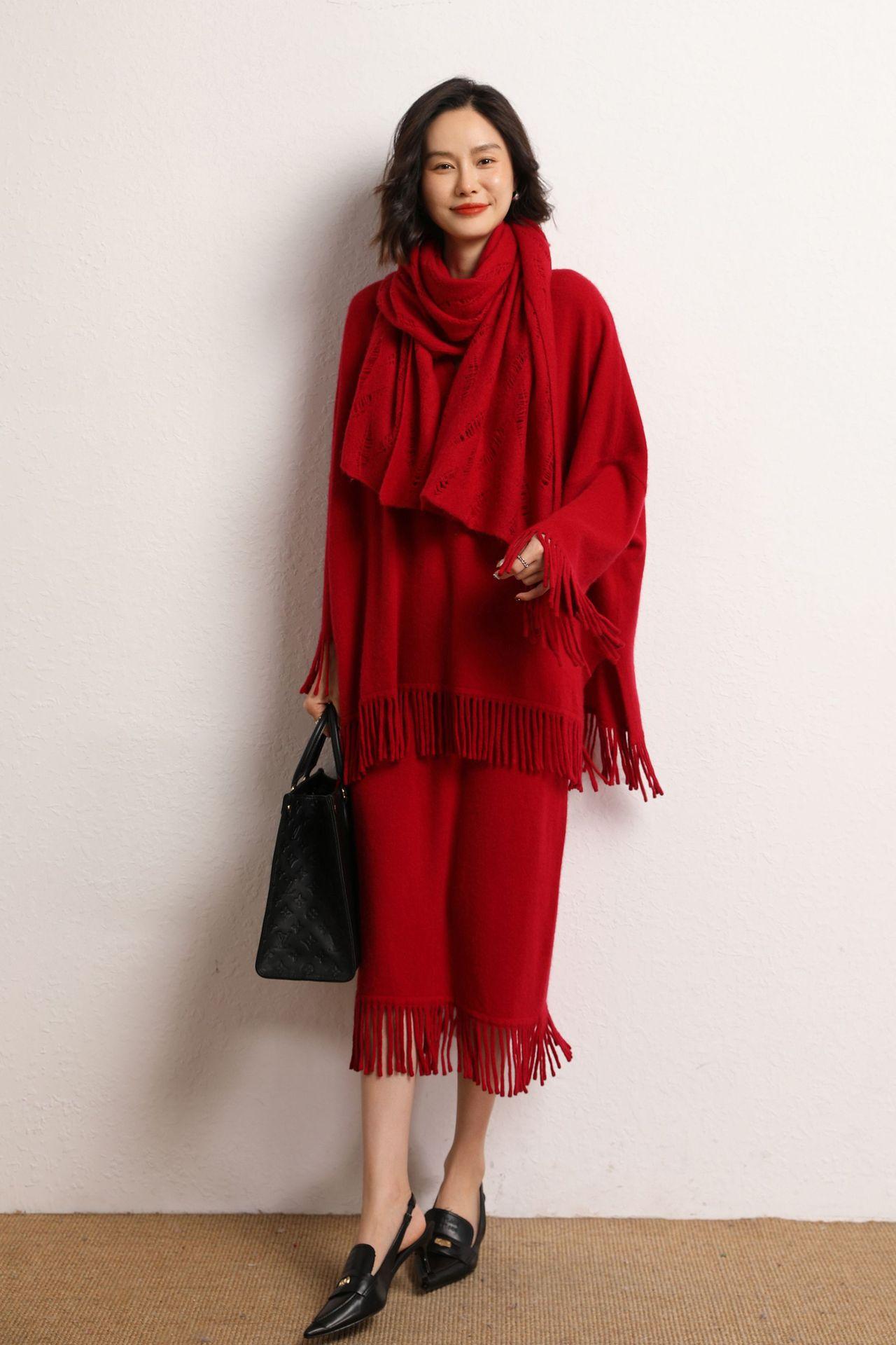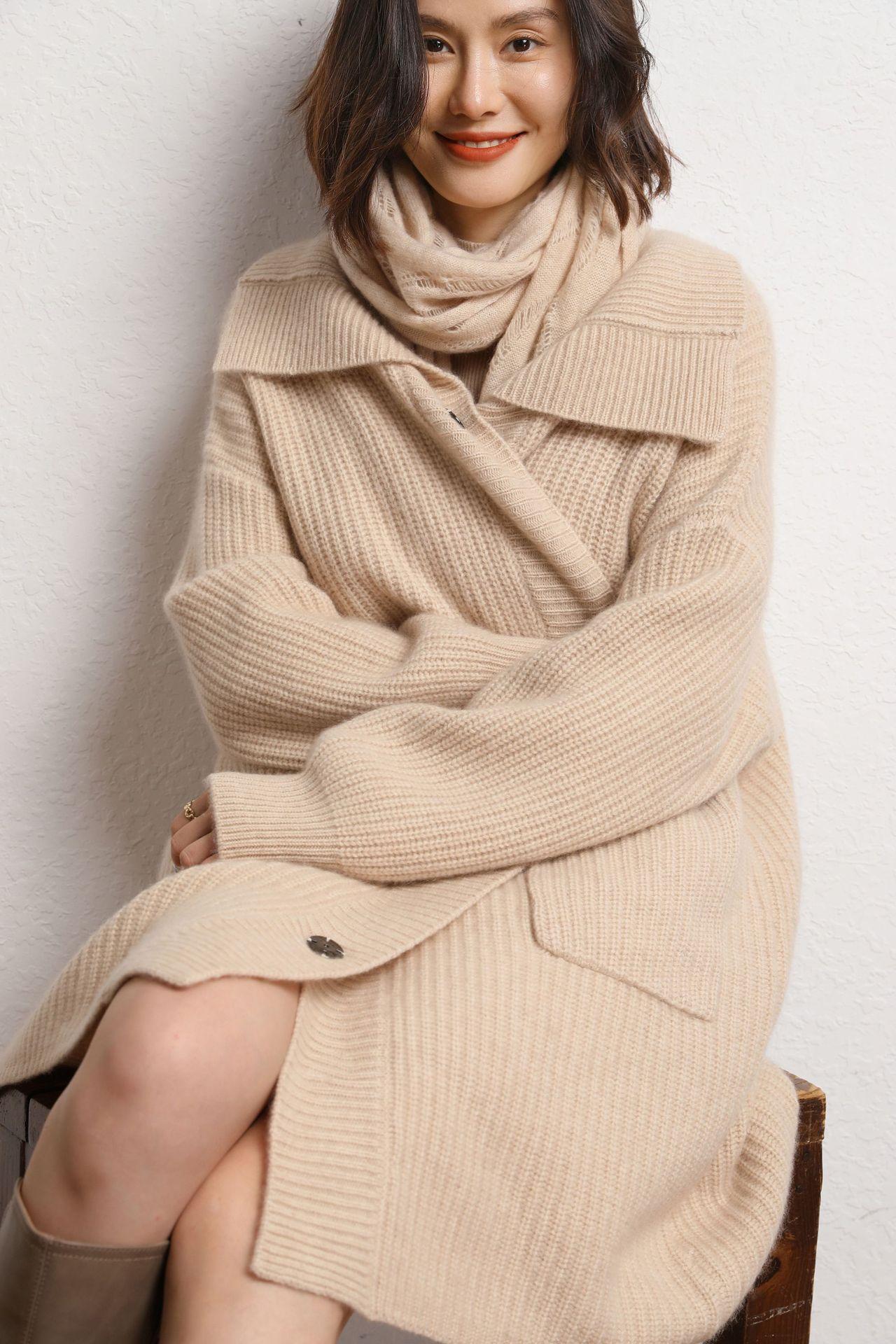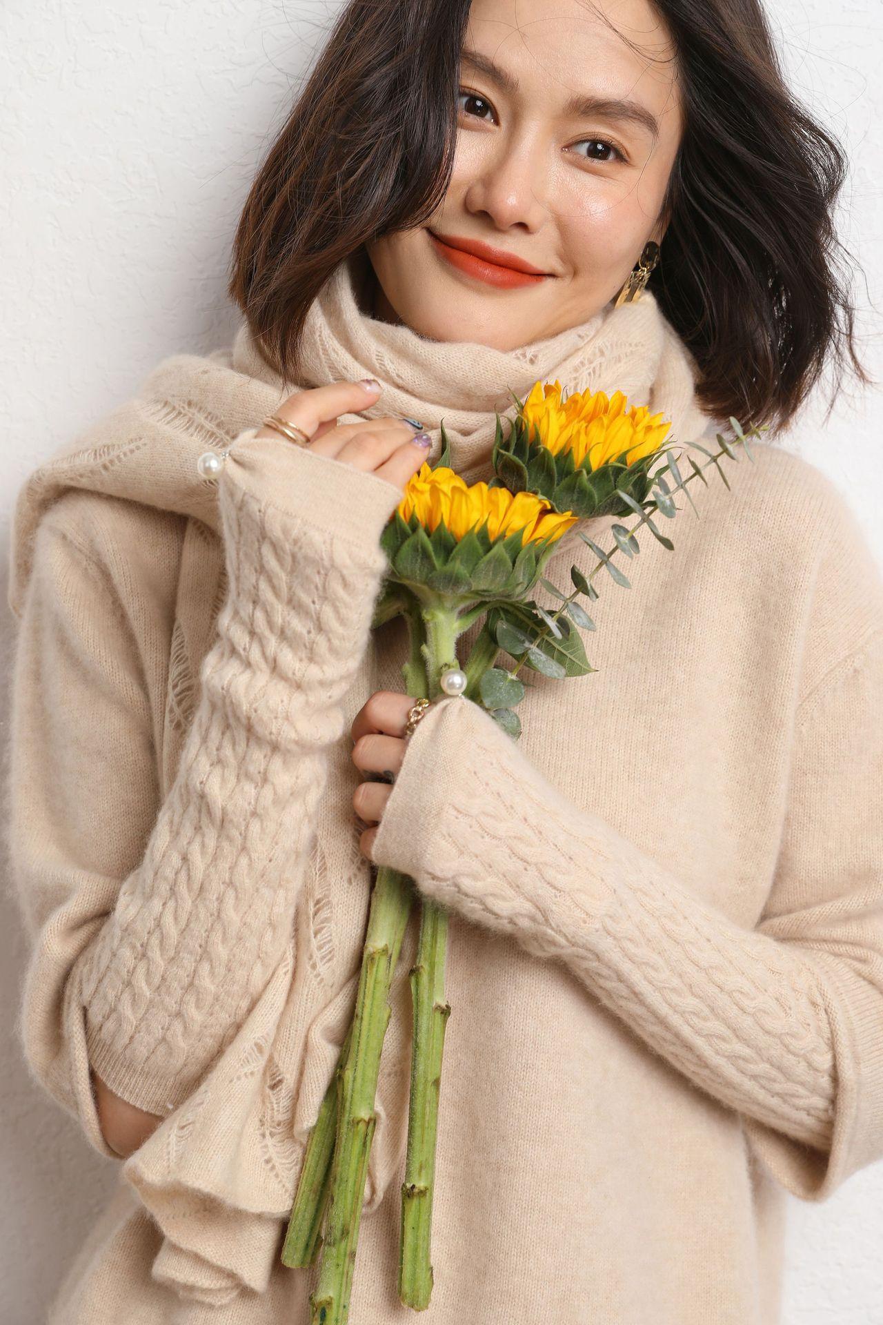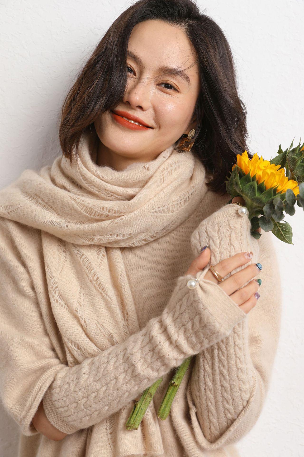 2024 Otoño e Invierno Nuevo Bufanda de Moda de Punto Suave y Cera de Cachemira Color Sólido Calada Gruesa Cálida Protección para el Cuello