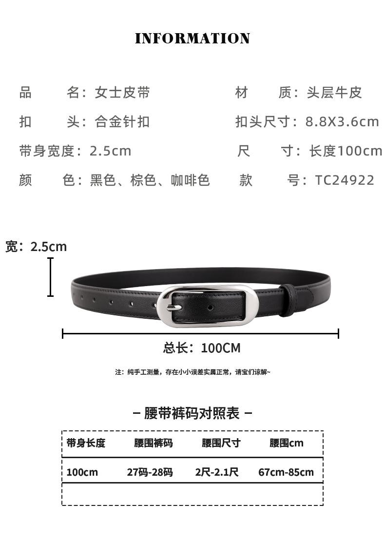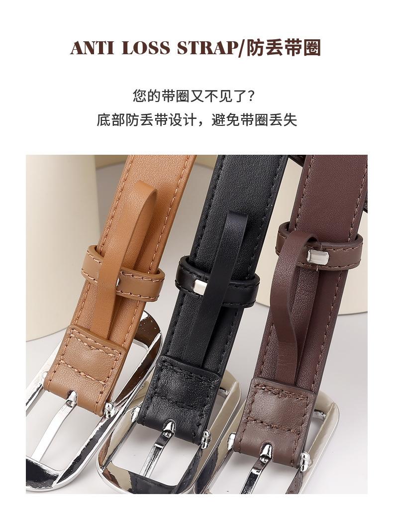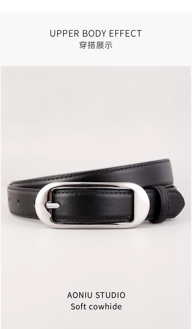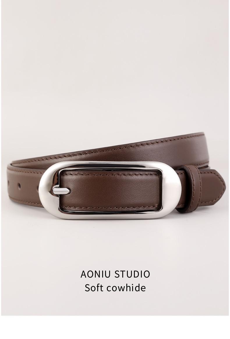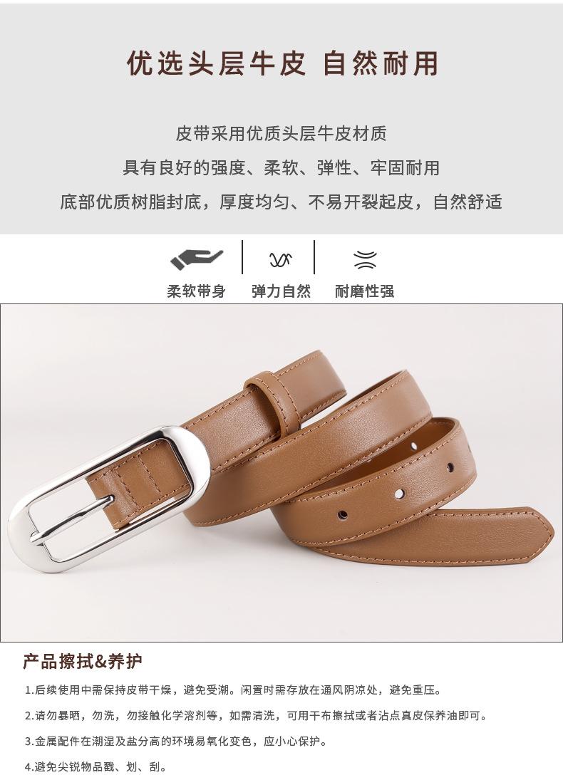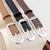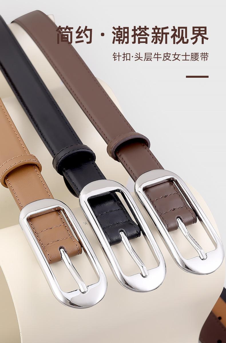Cinturón de piel de vaca de primera capa para mujer, versátil, con hebilla cuadrada decorativa y cinturón de jeans, disponible en fábrica.
